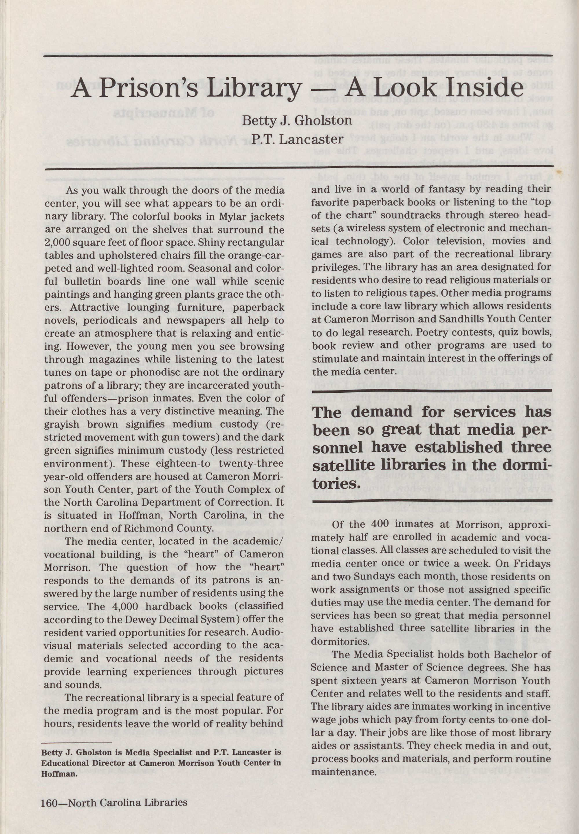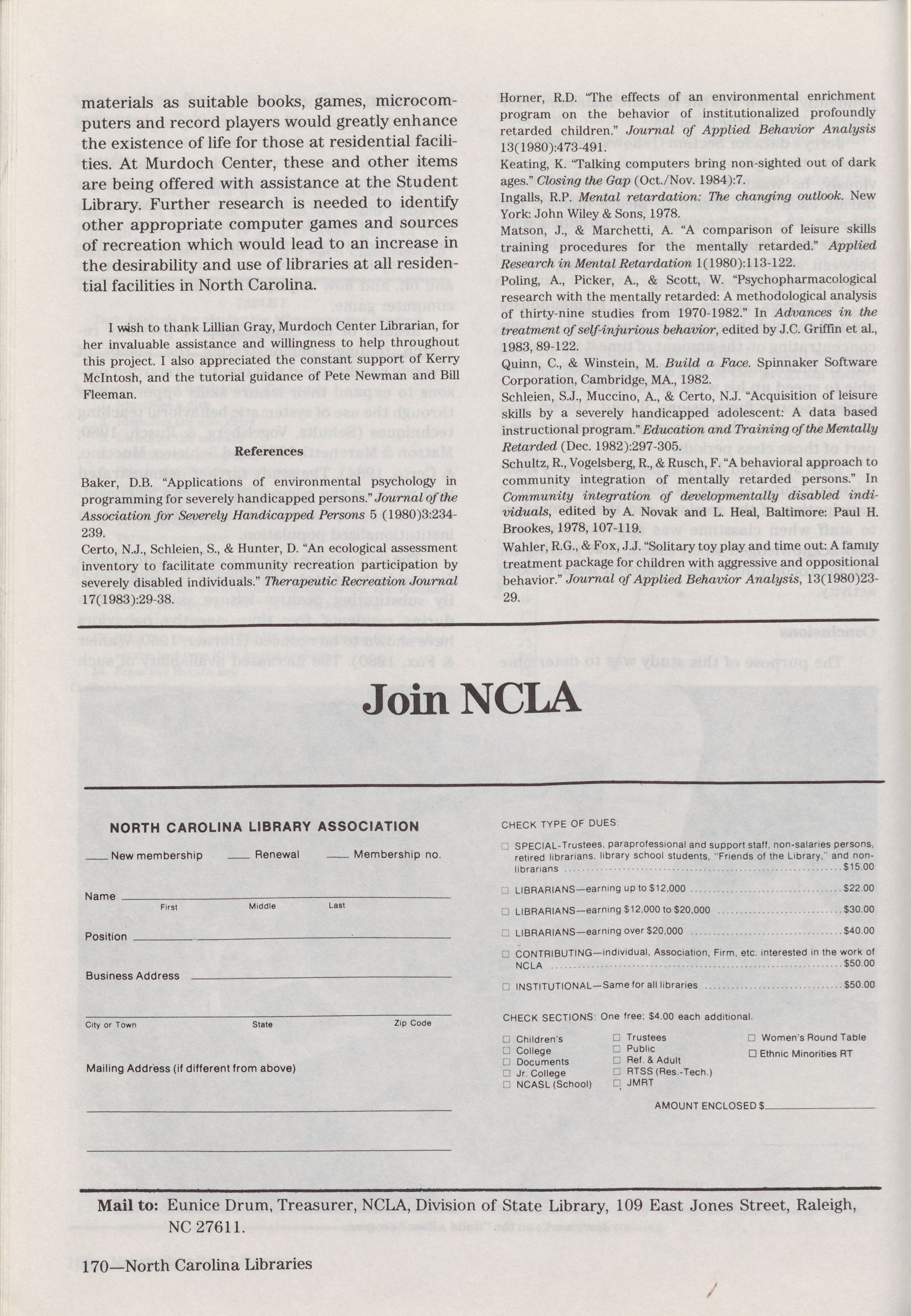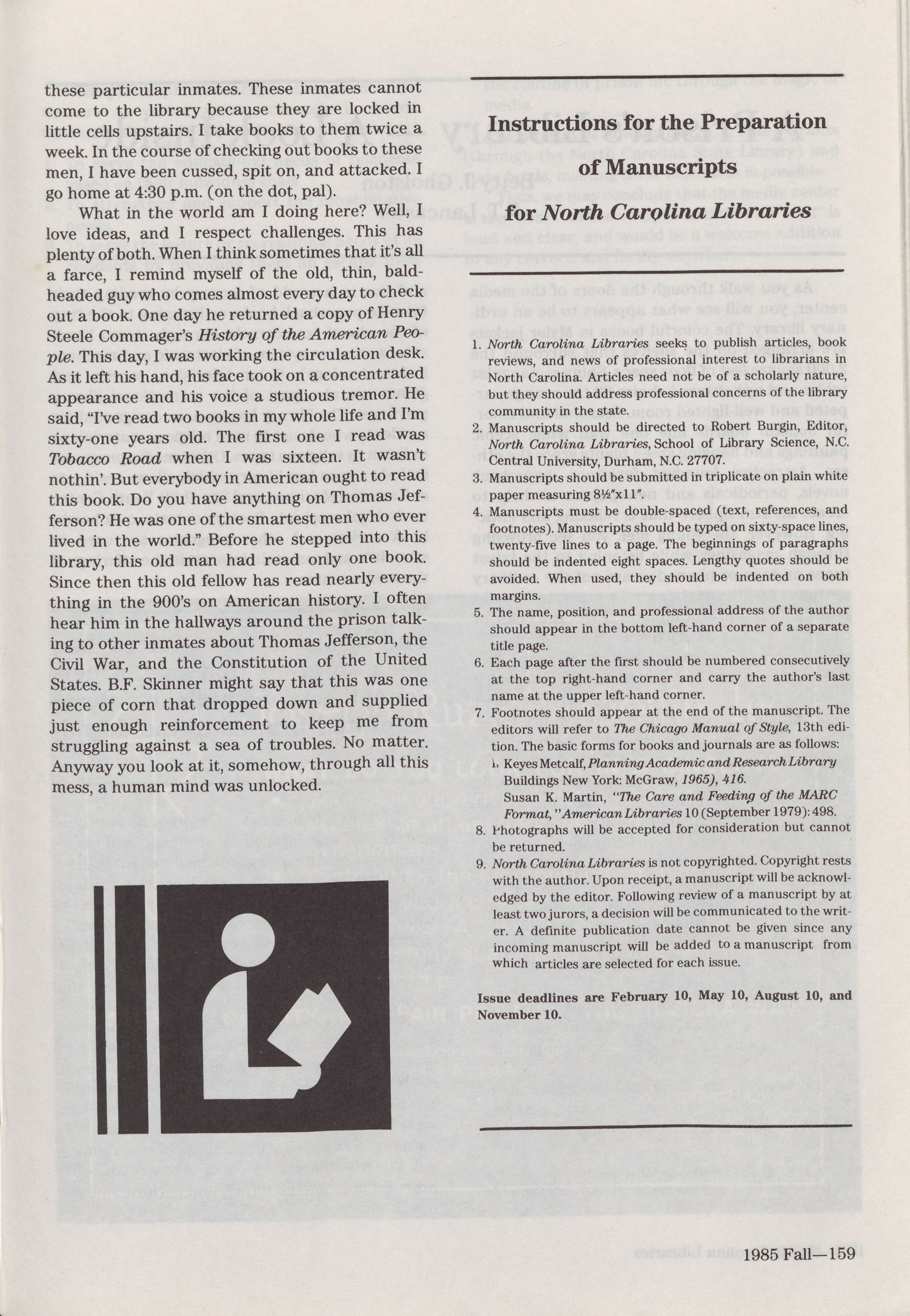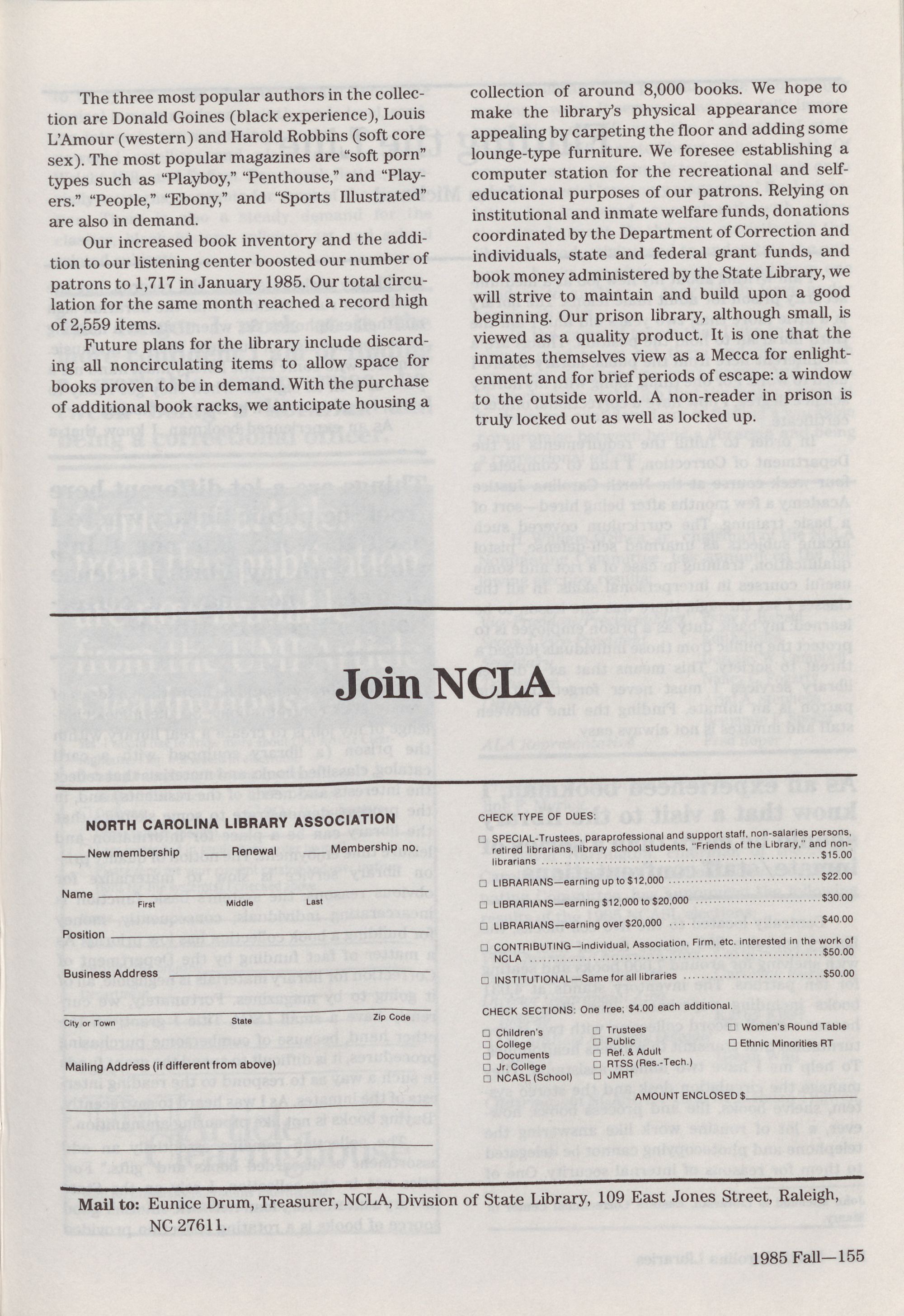 North Carolina Libraries, published four times a year, is the o