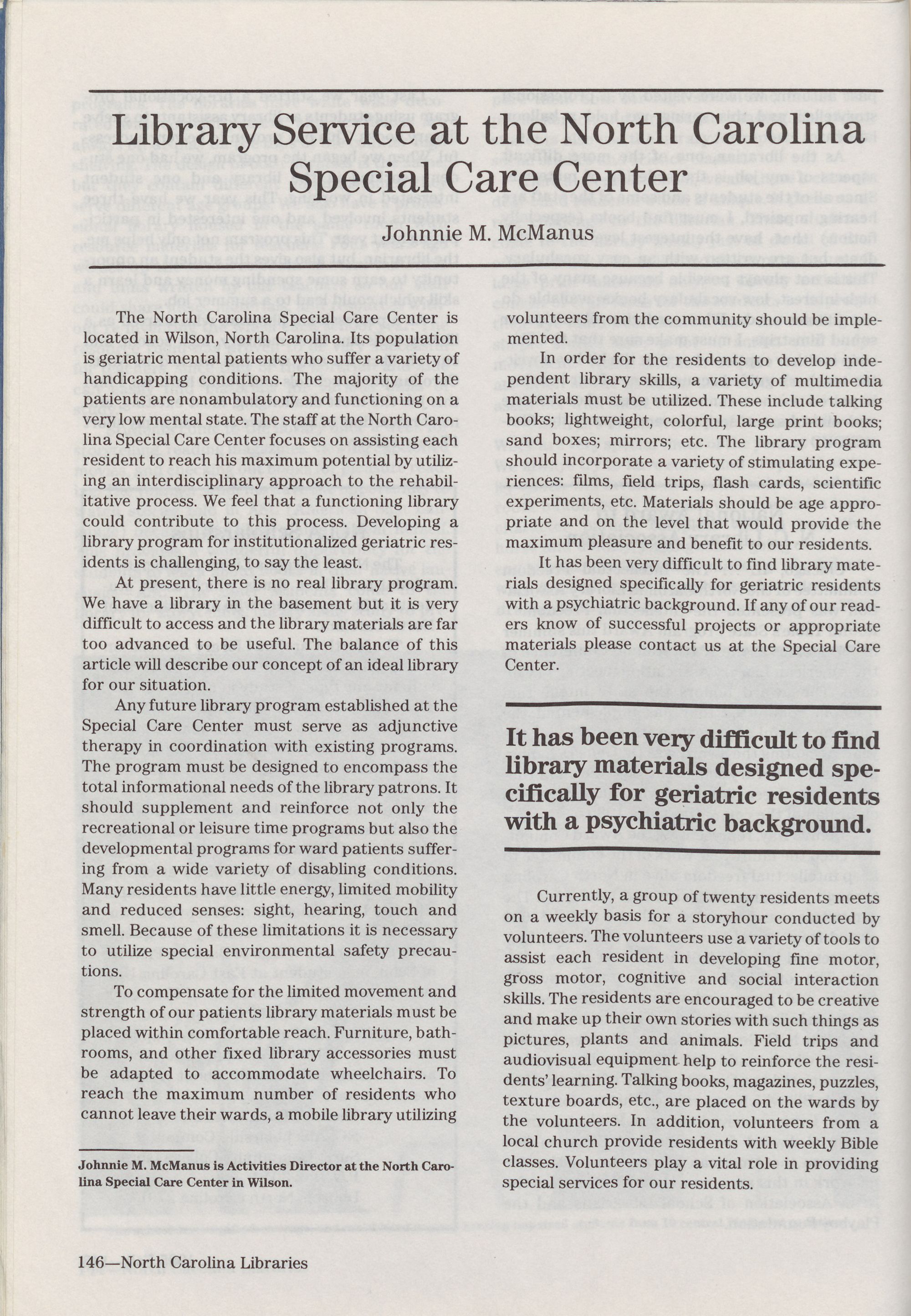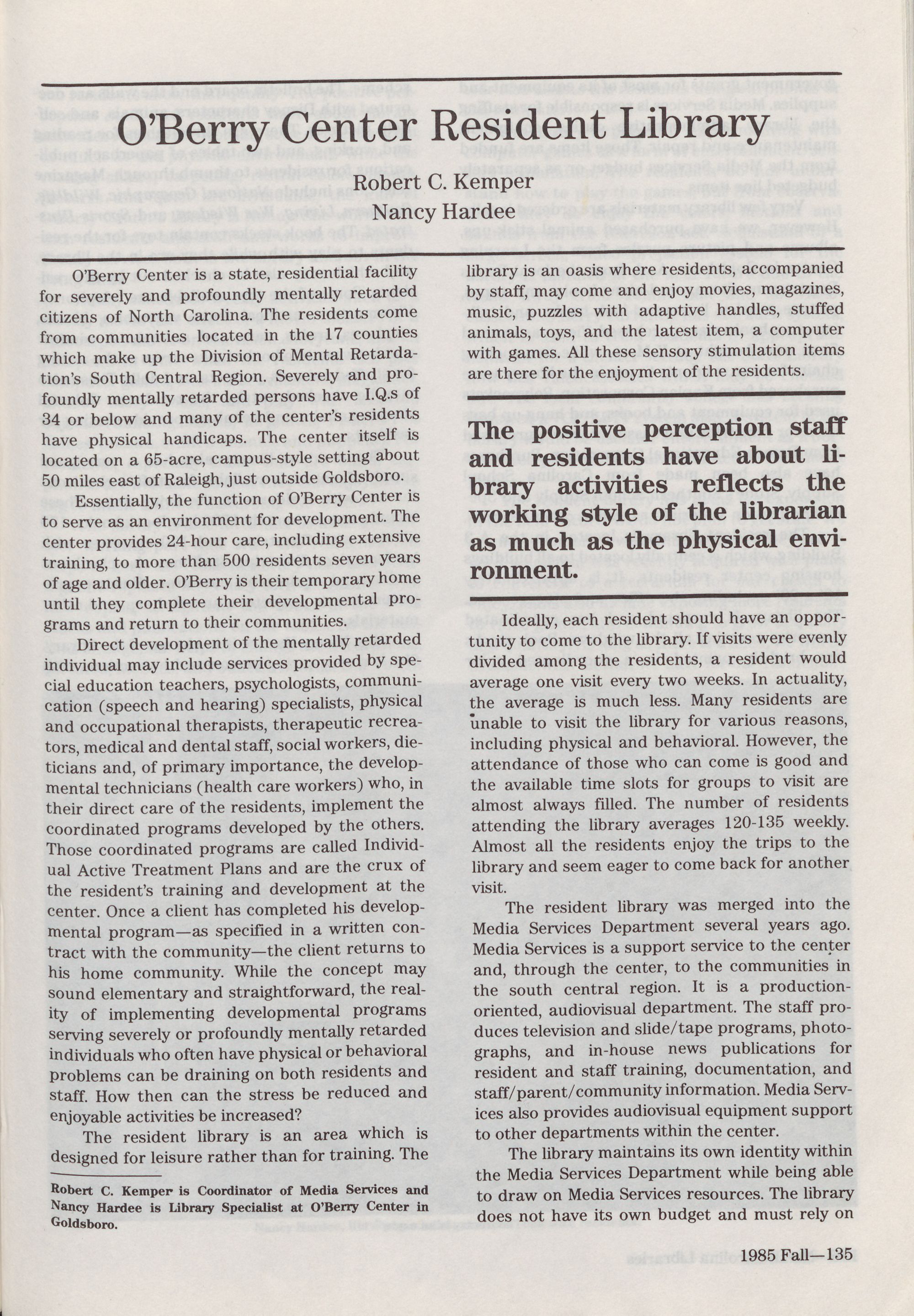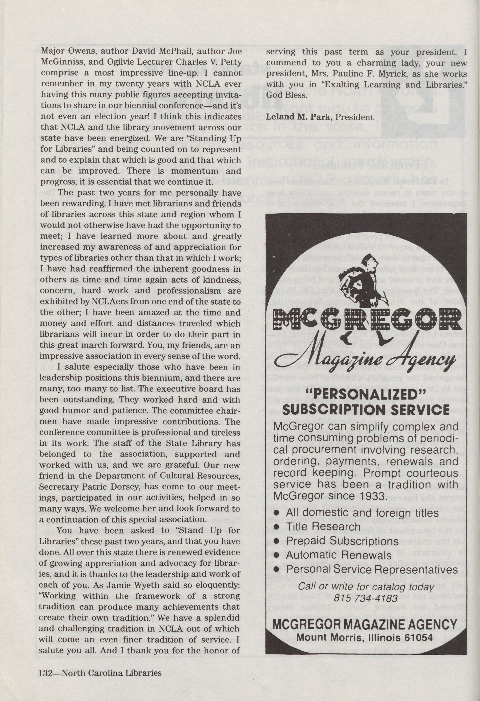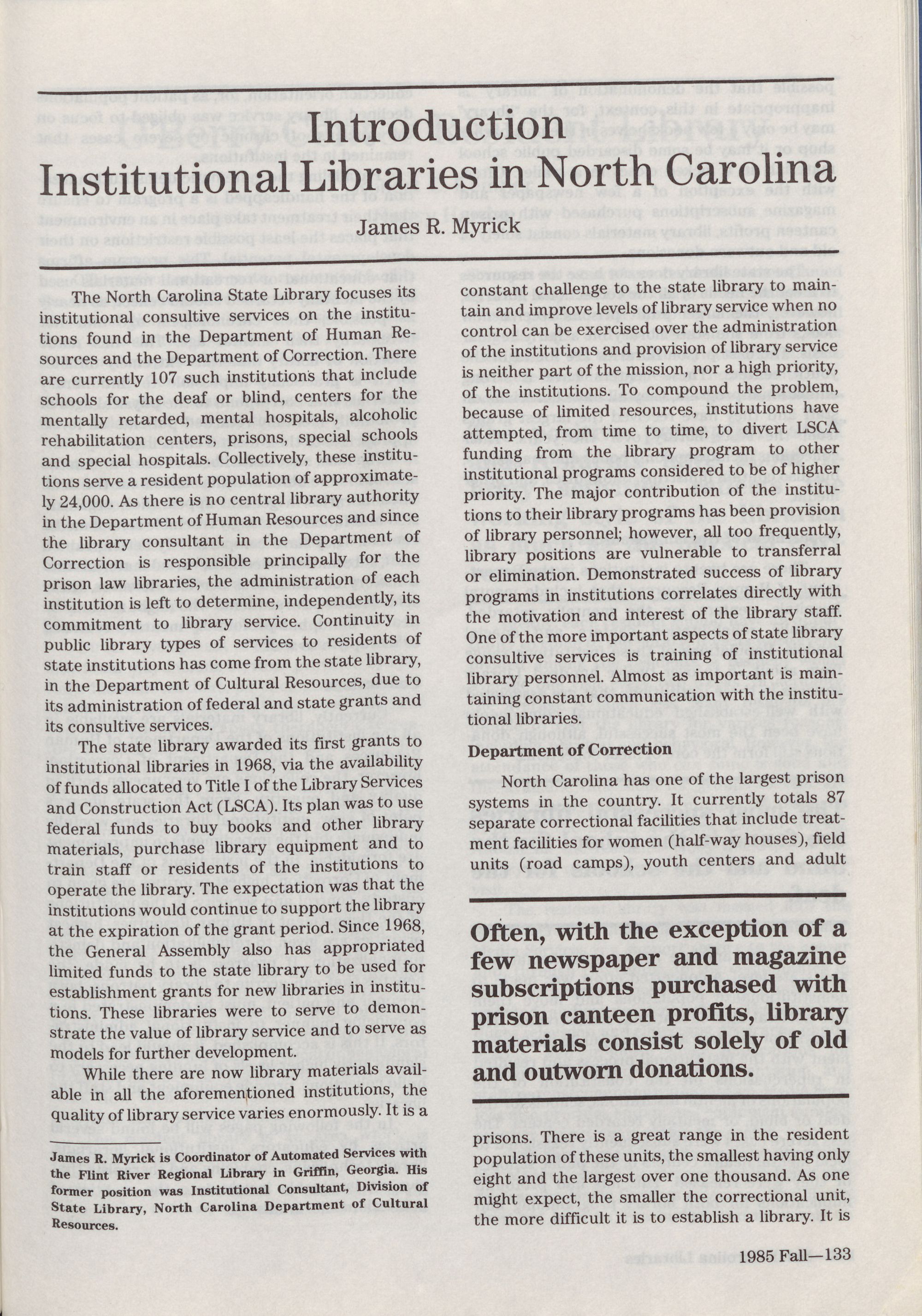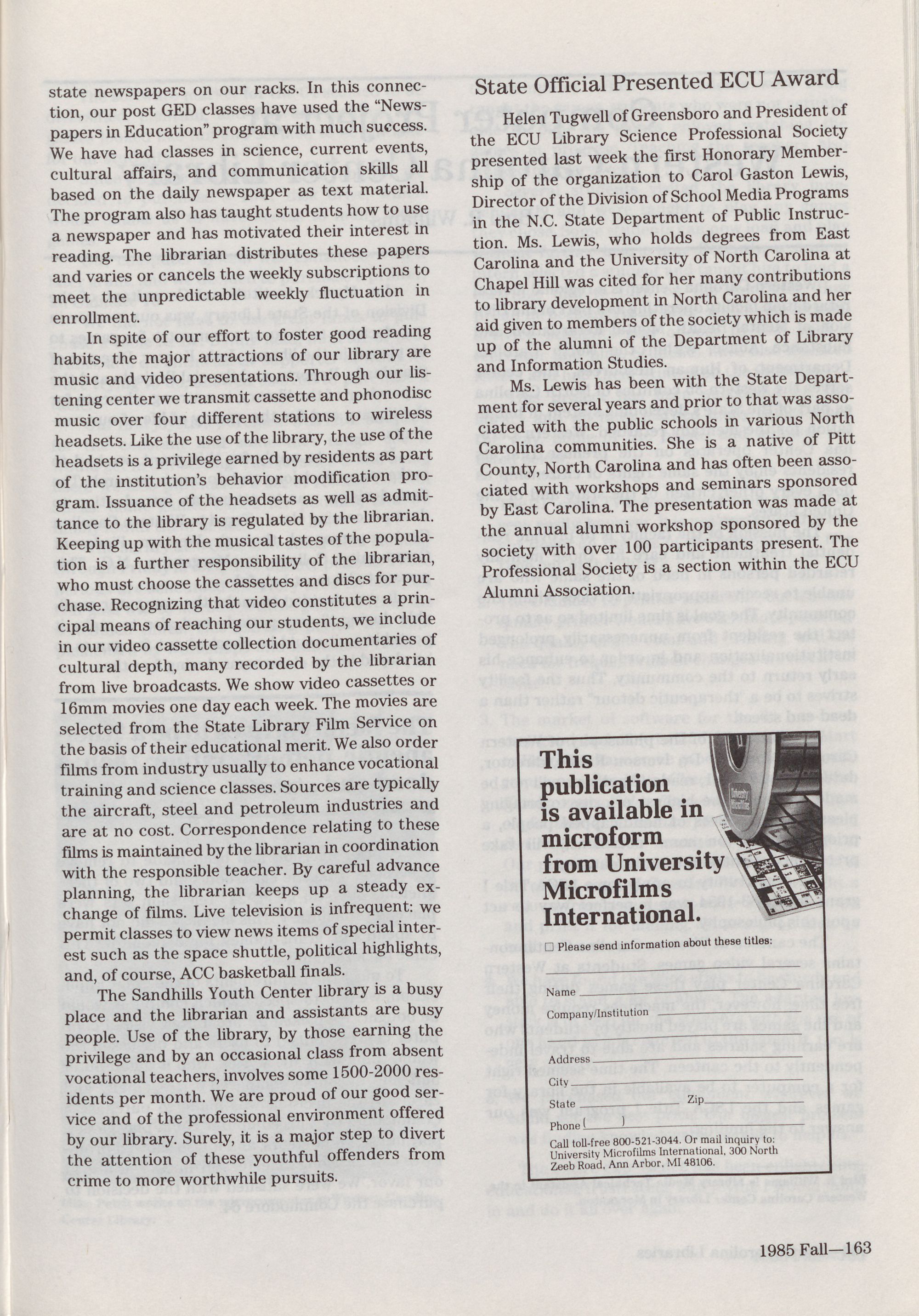 North Carolina Libraries, published four times a year, is the o