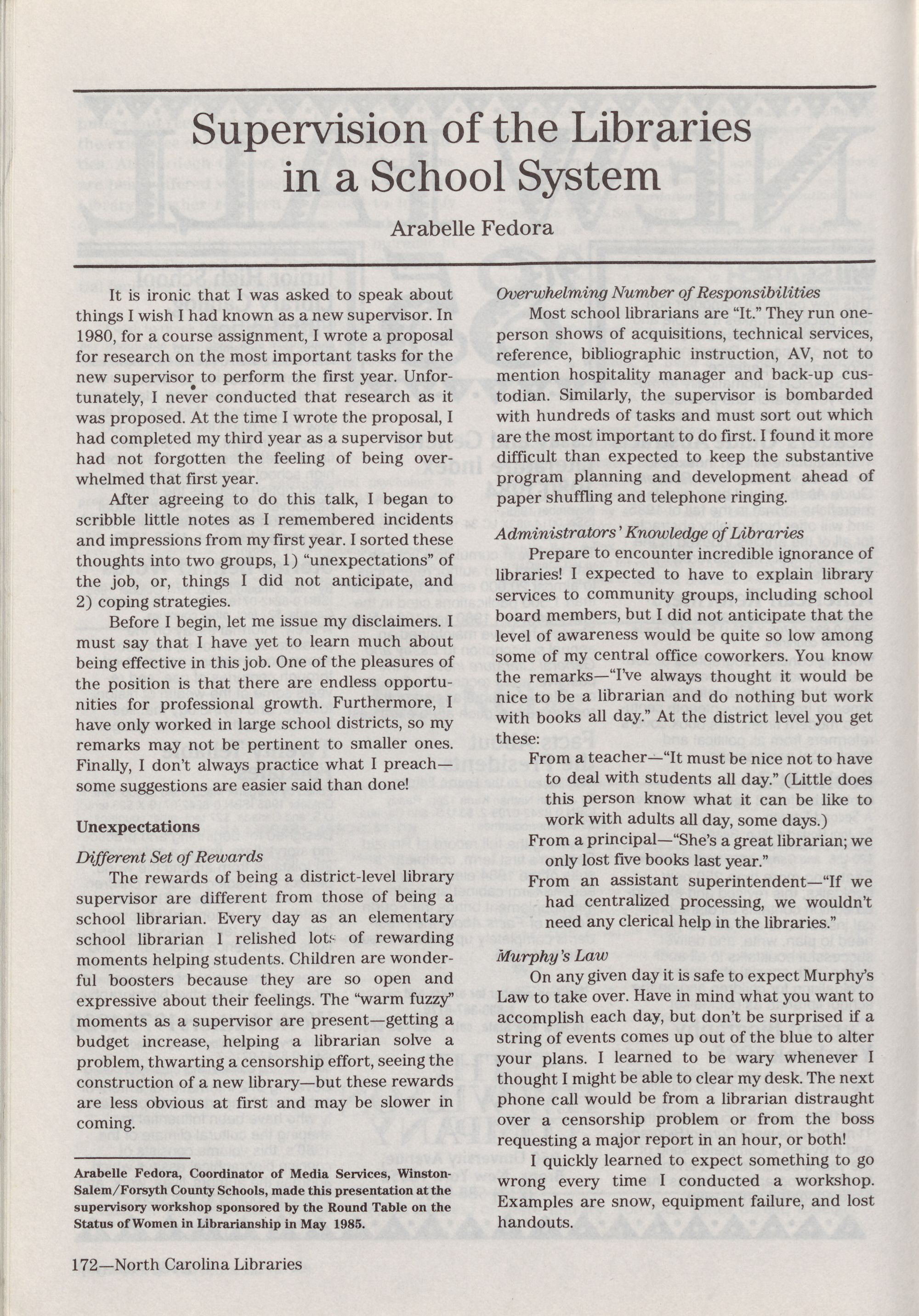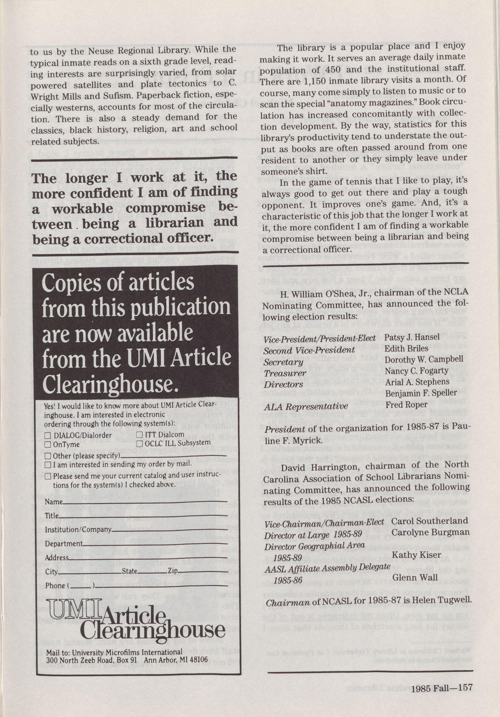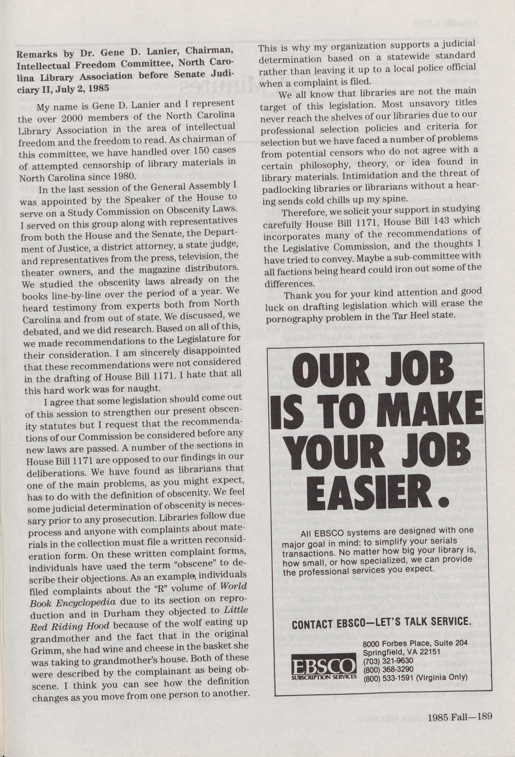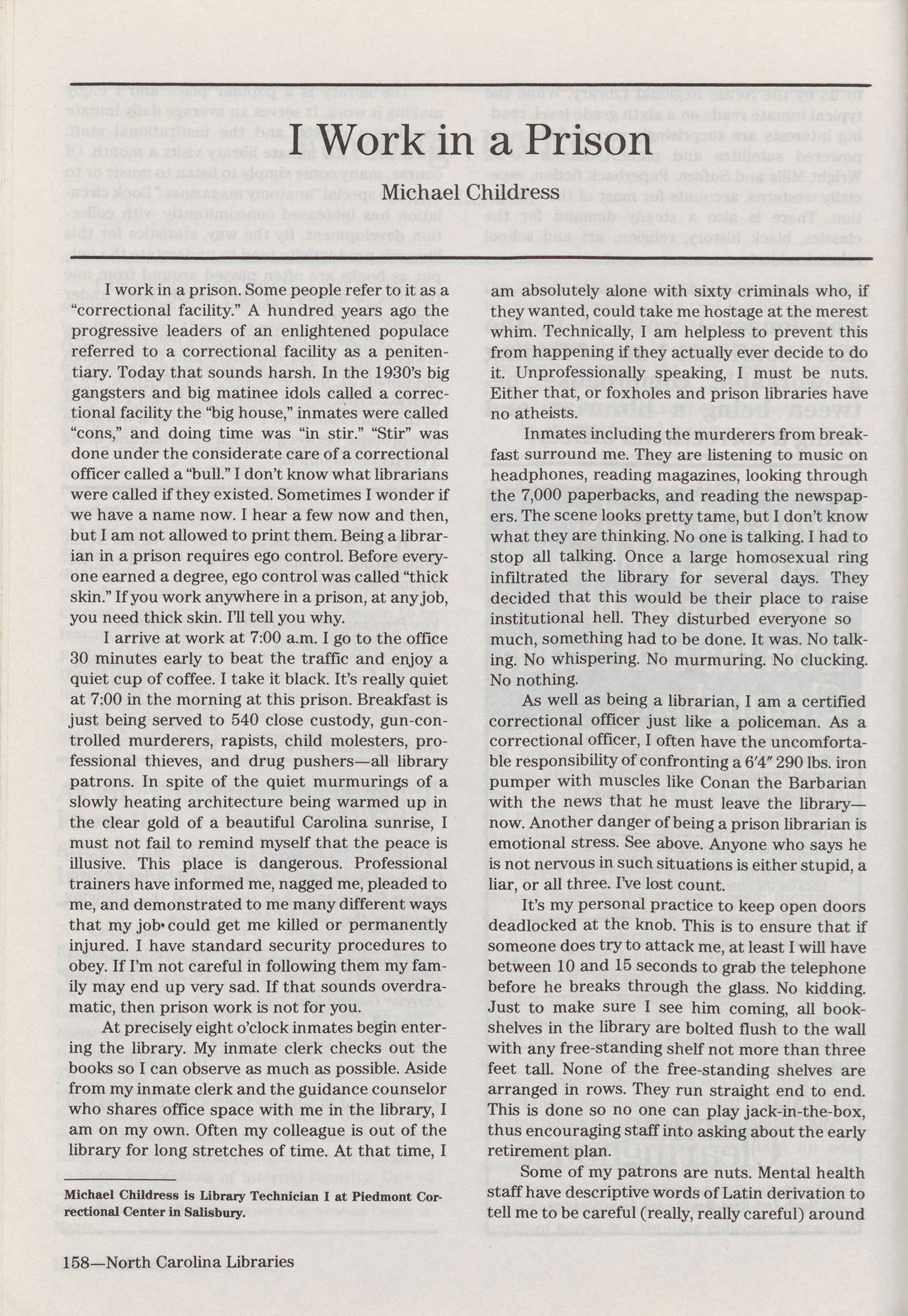 North Carolina Libraries, published four times a year, is the o