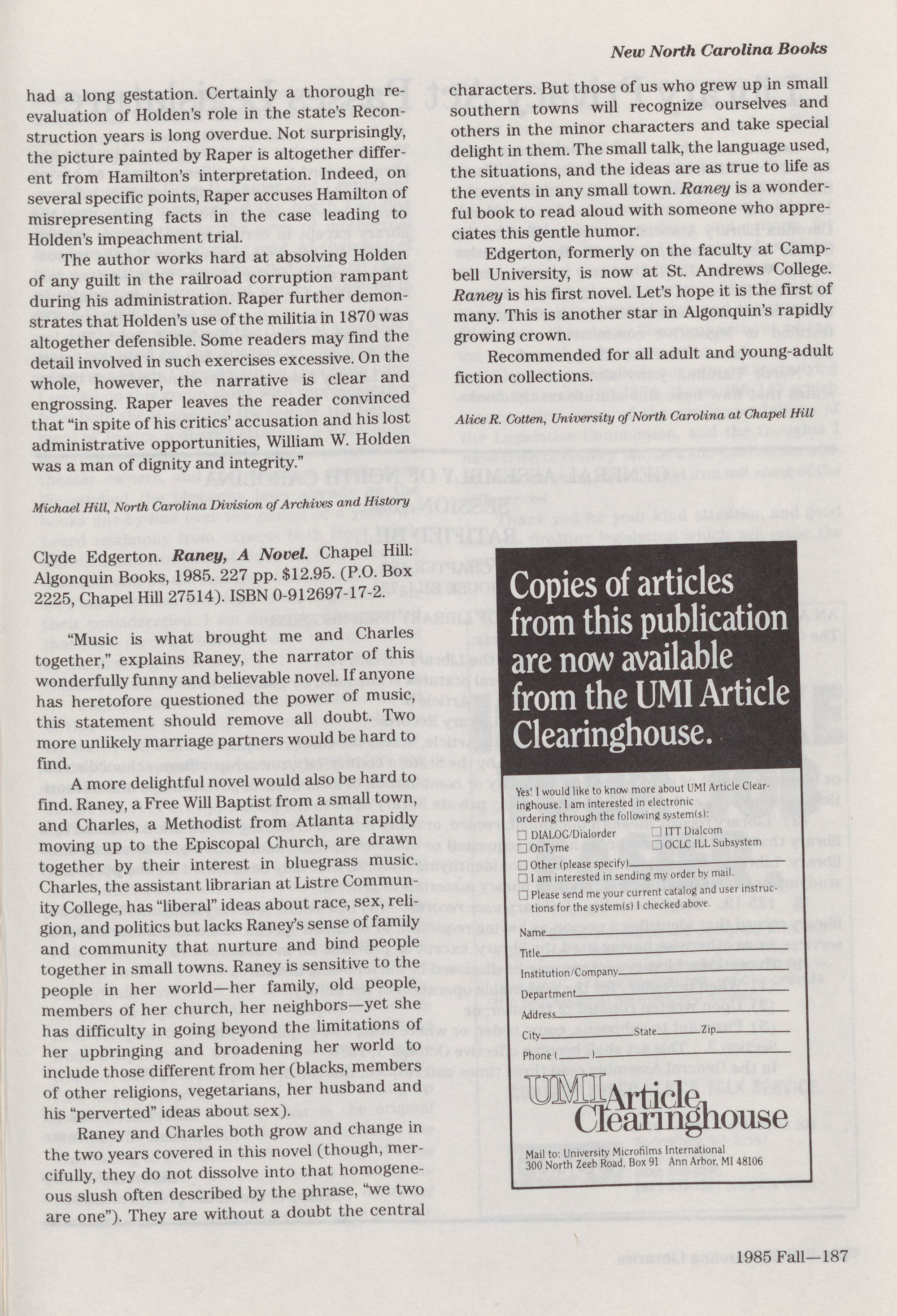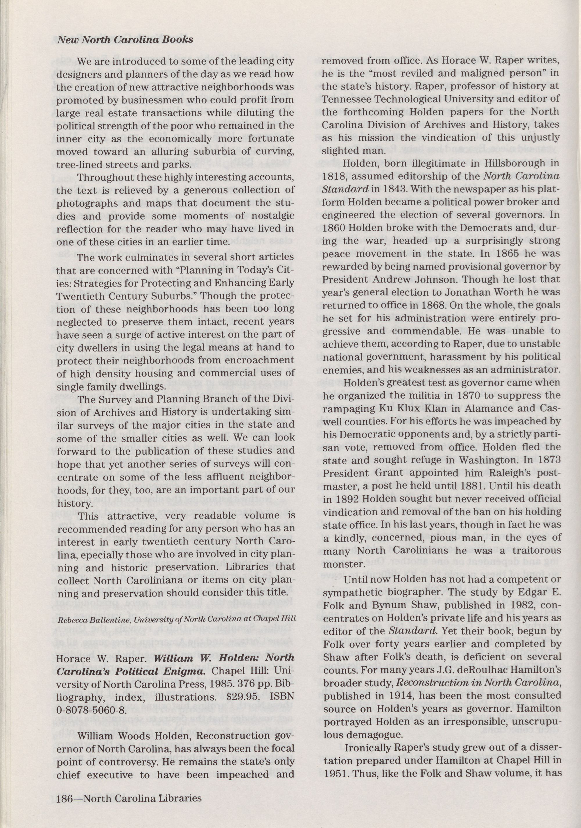 Editor, North Carolina