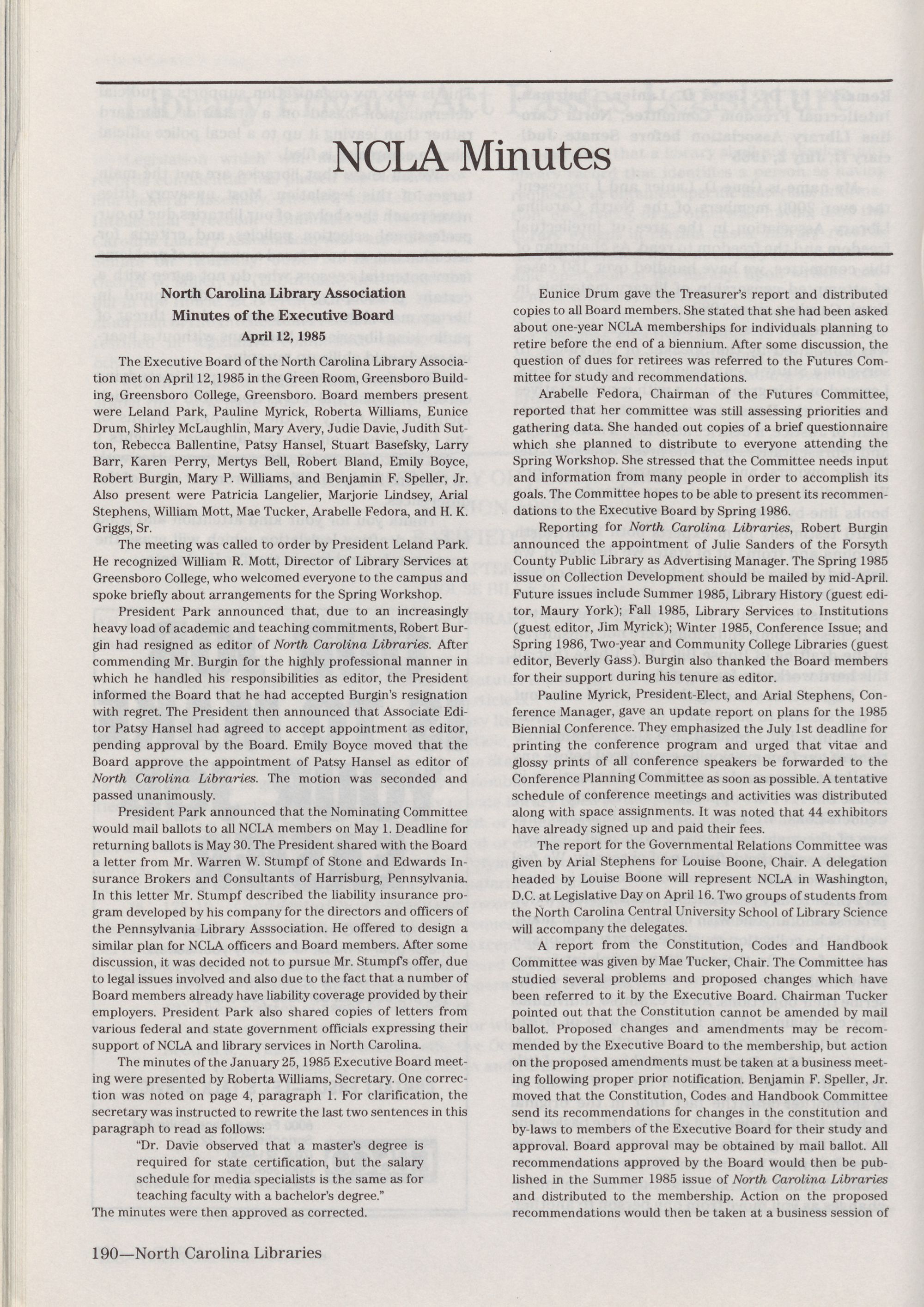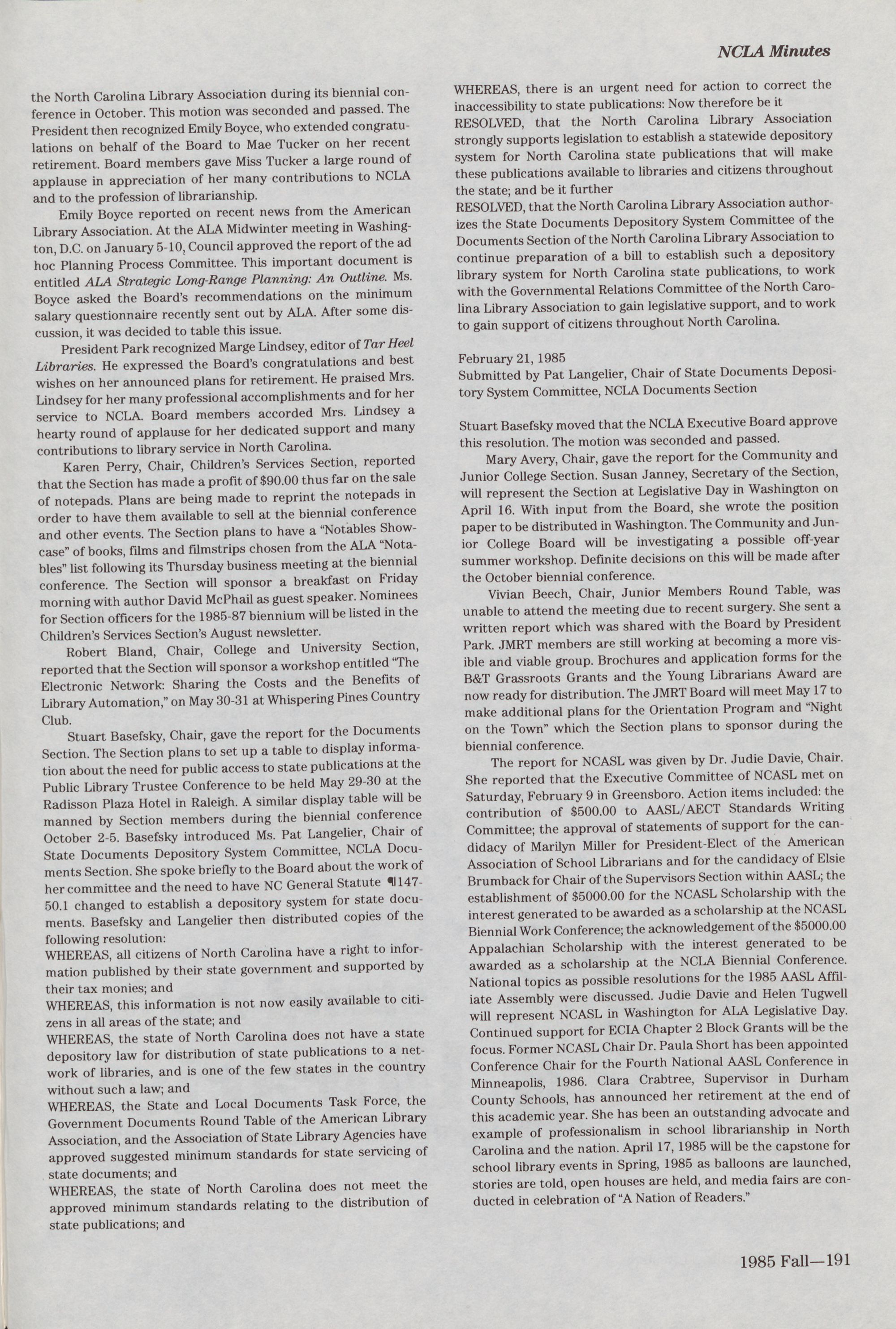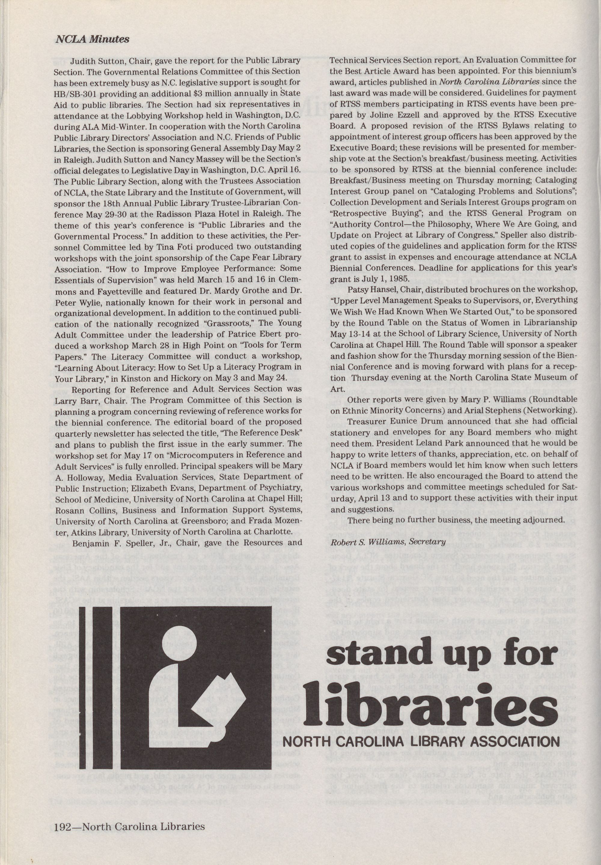 Other reports were given by Mary P. Williams (Roundtable