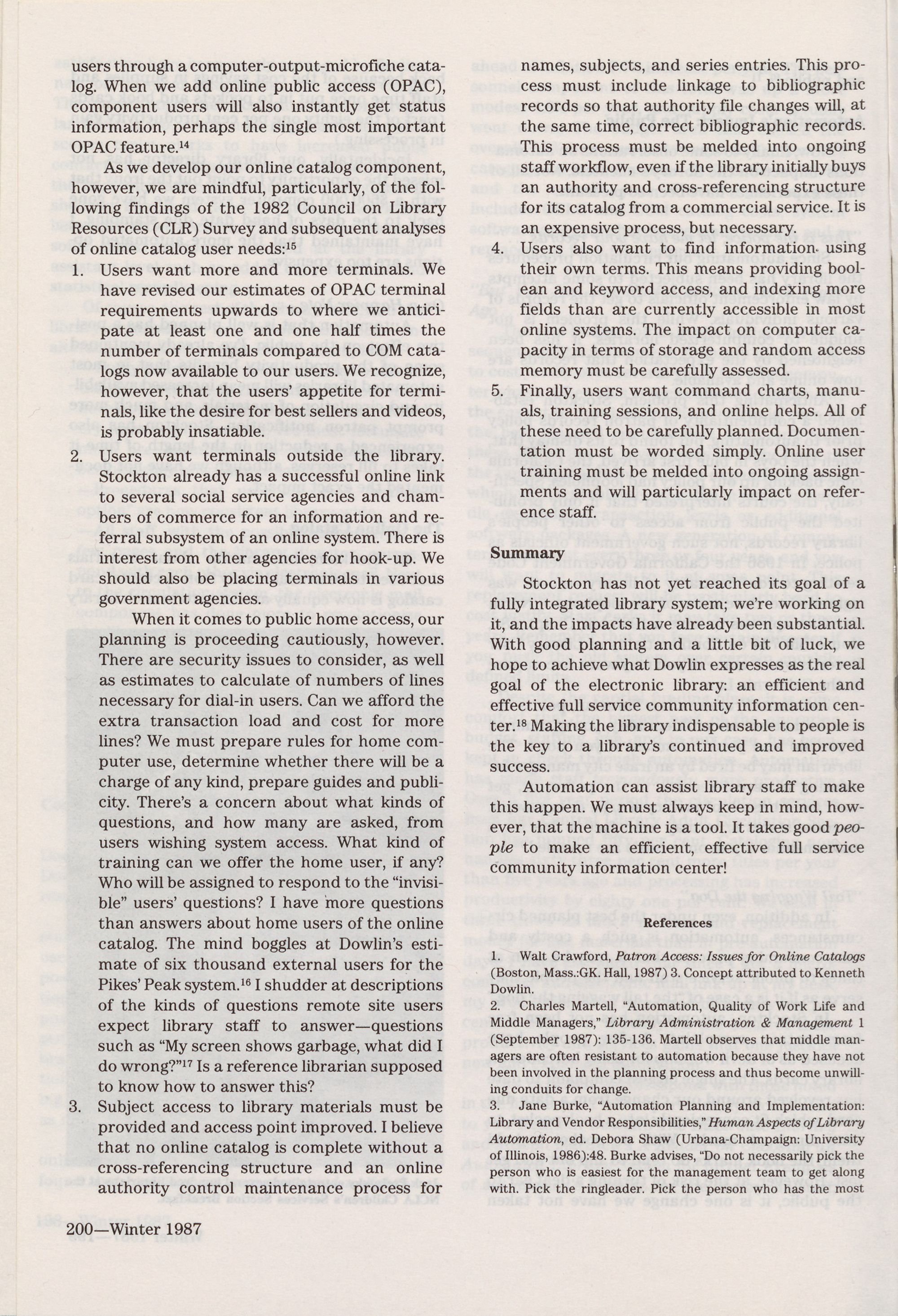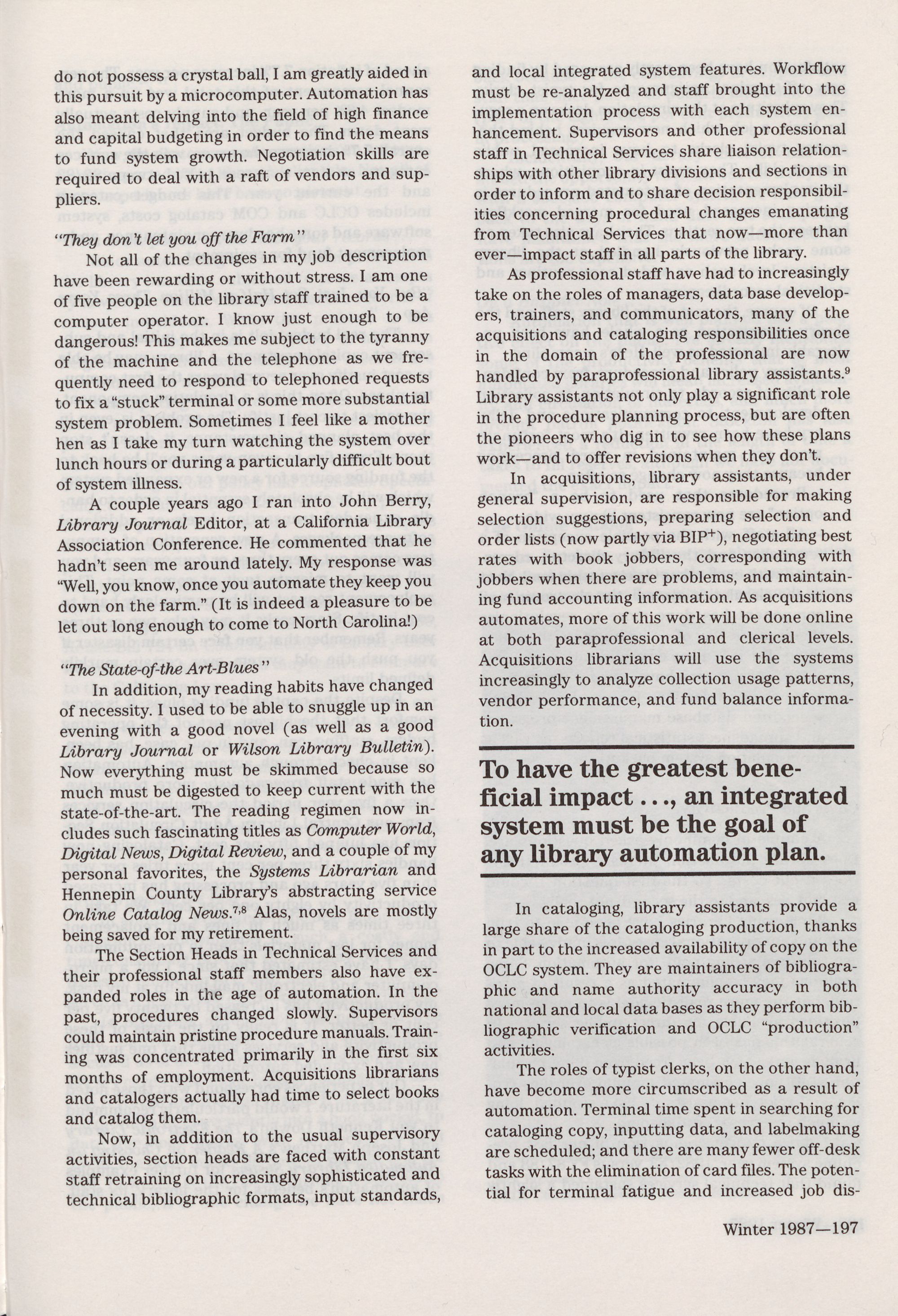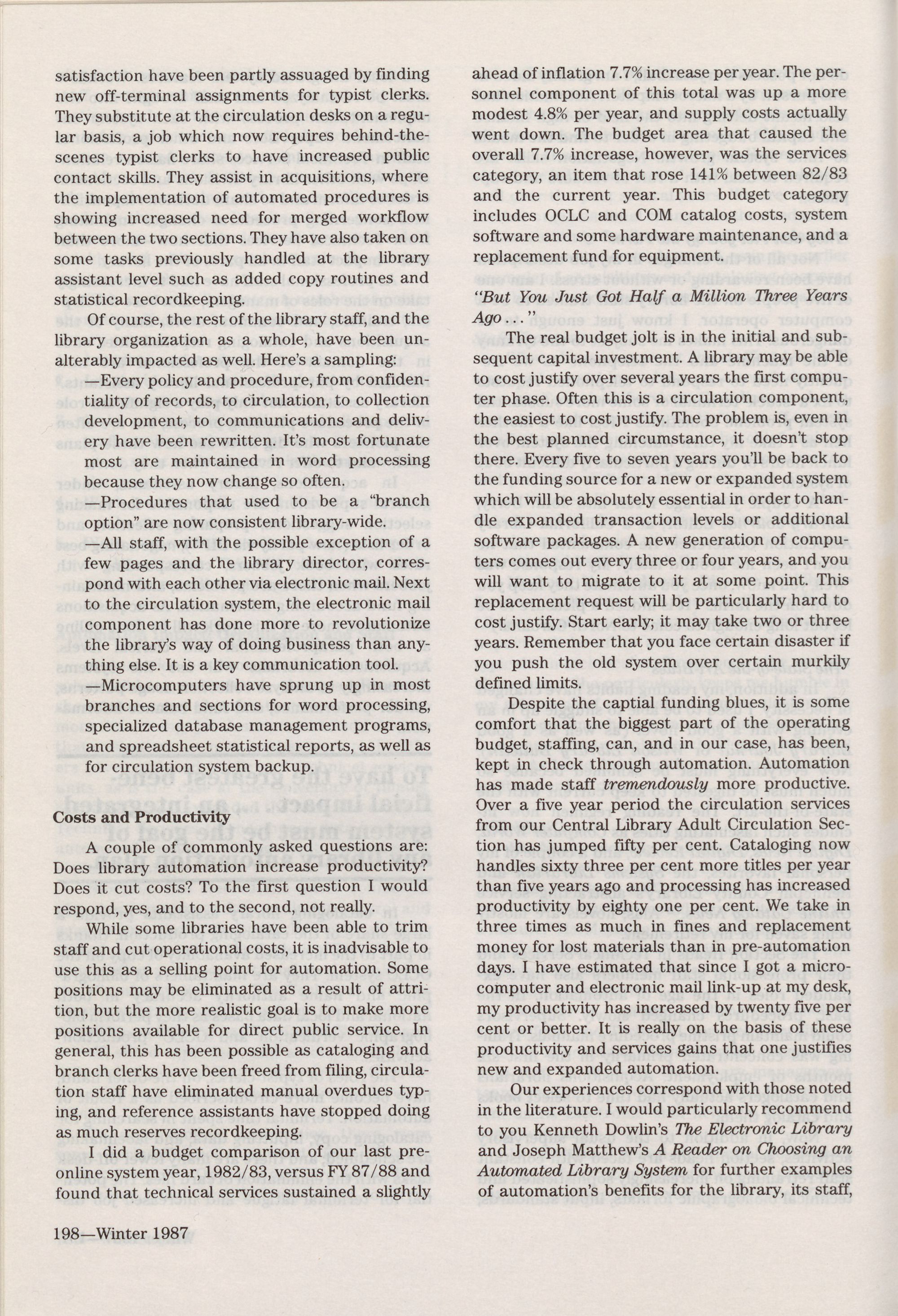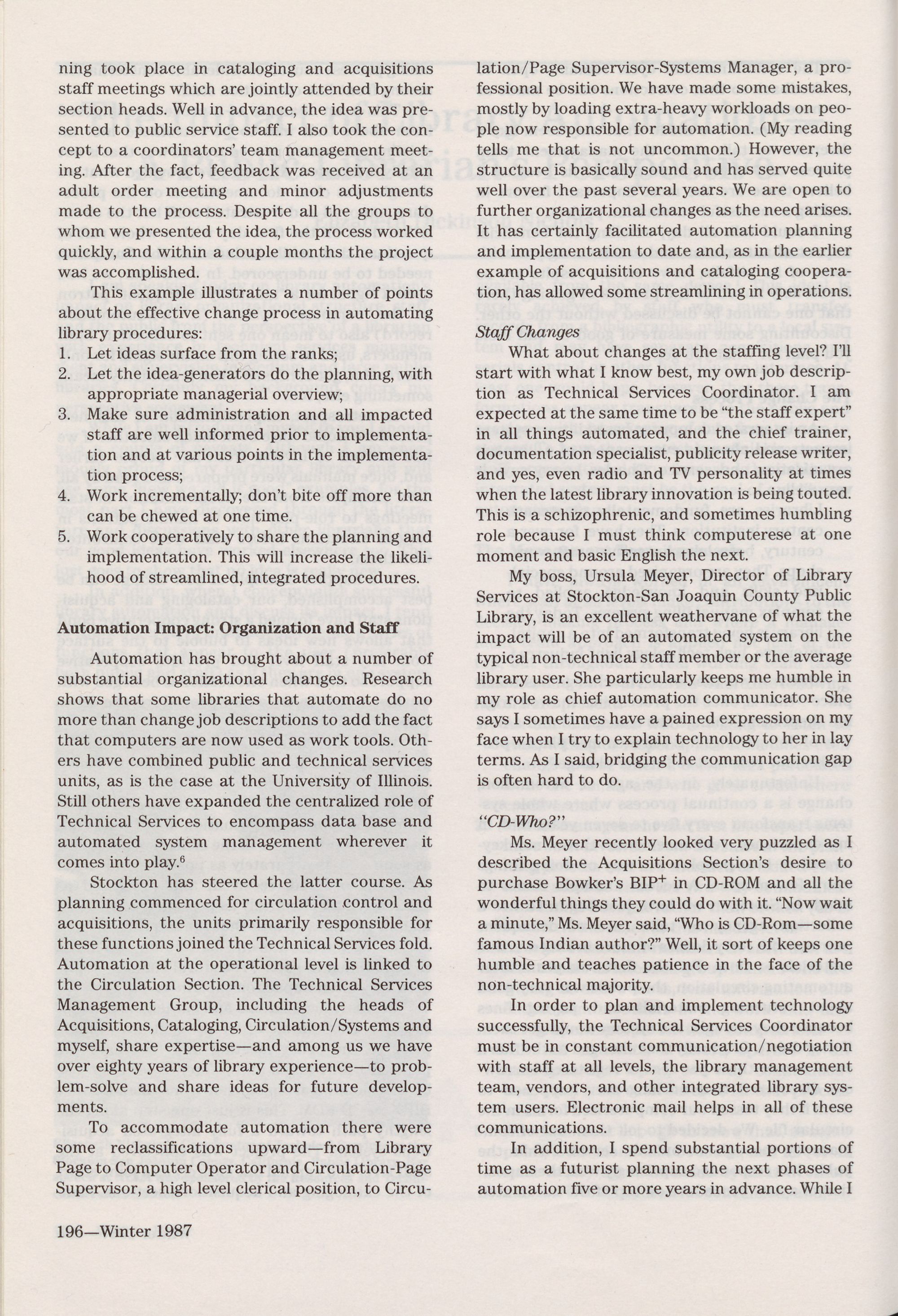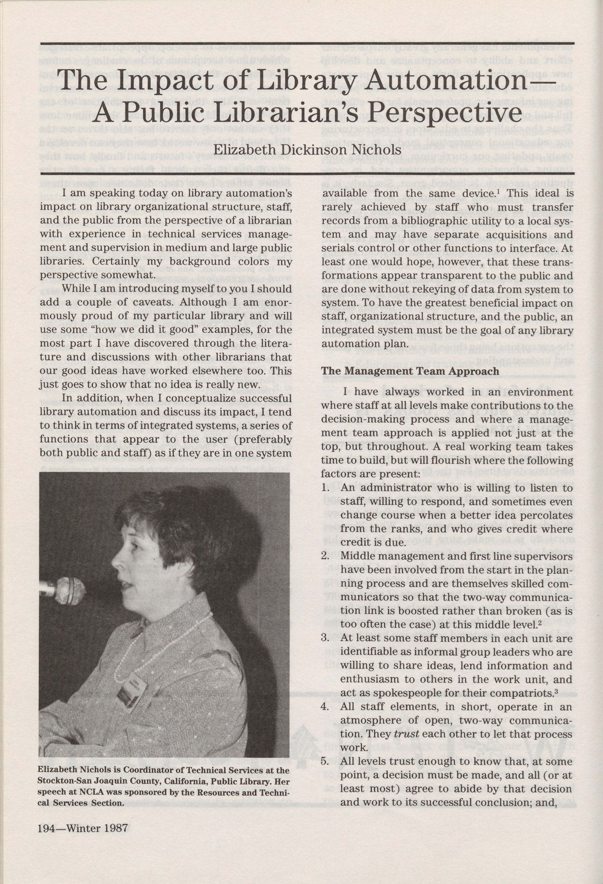 Automation - A Public LibrarianTs Perspective,� North Carolina Phiebig, 183.