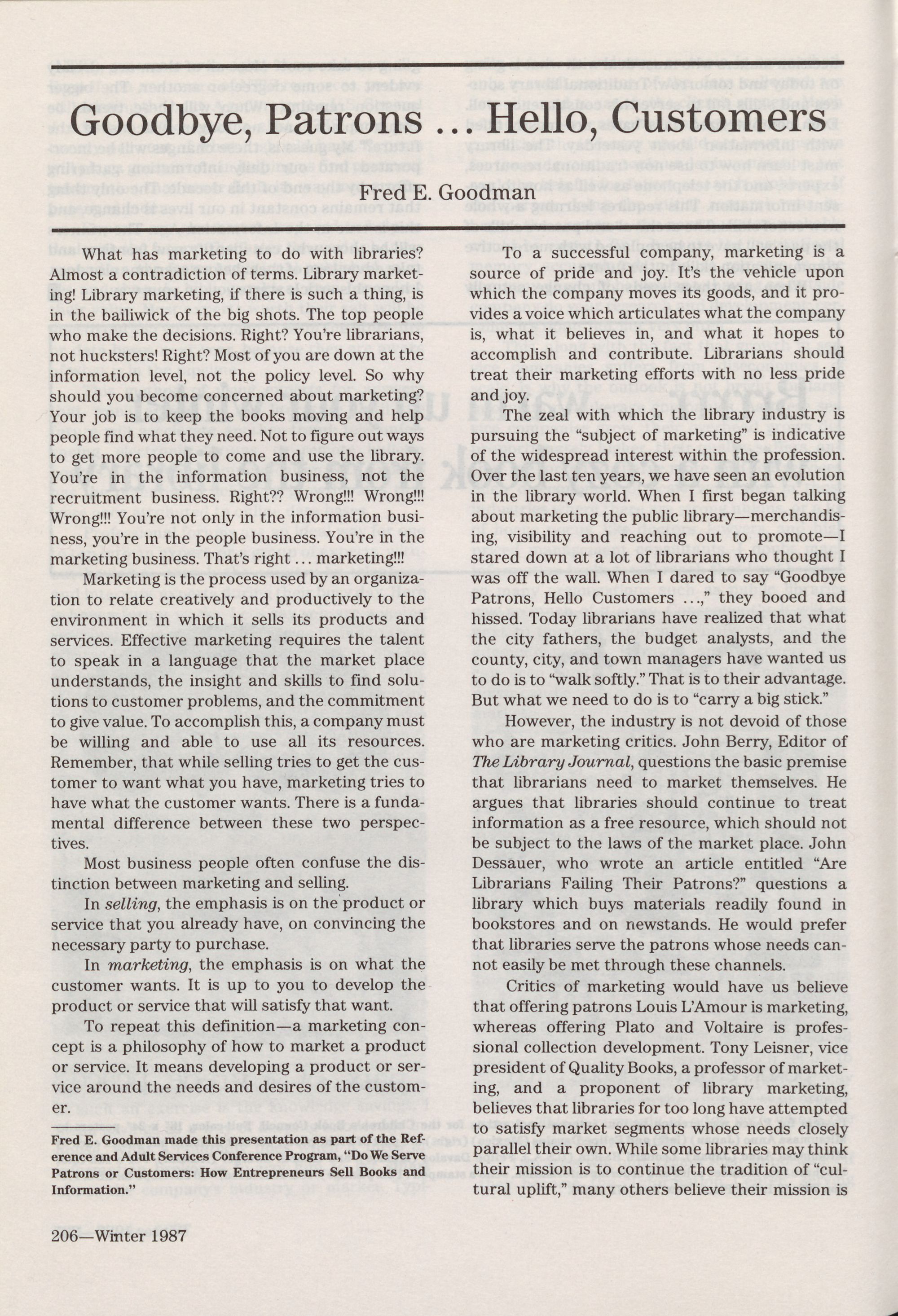 206 Goodbye, Patrons ... Hello, Customers, Fred E. Goodman