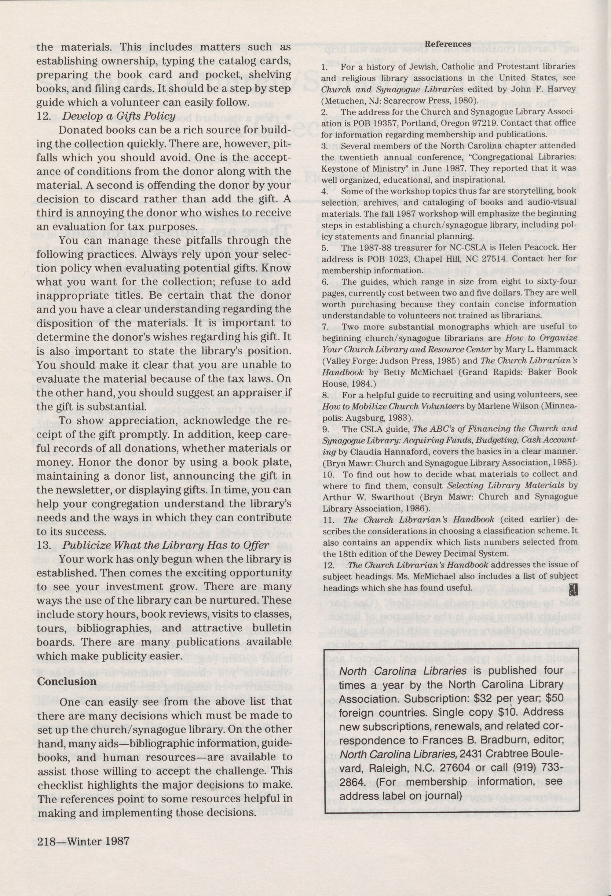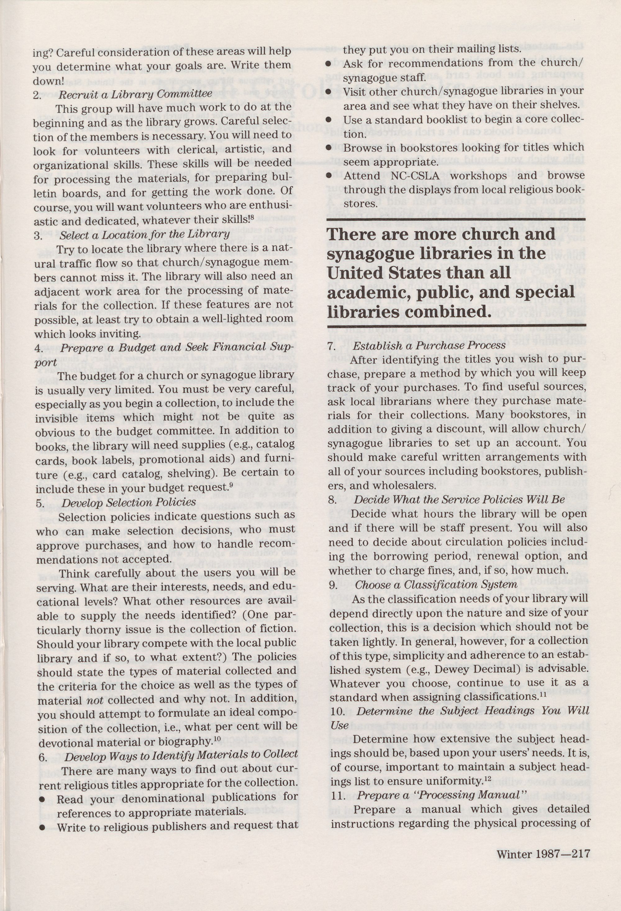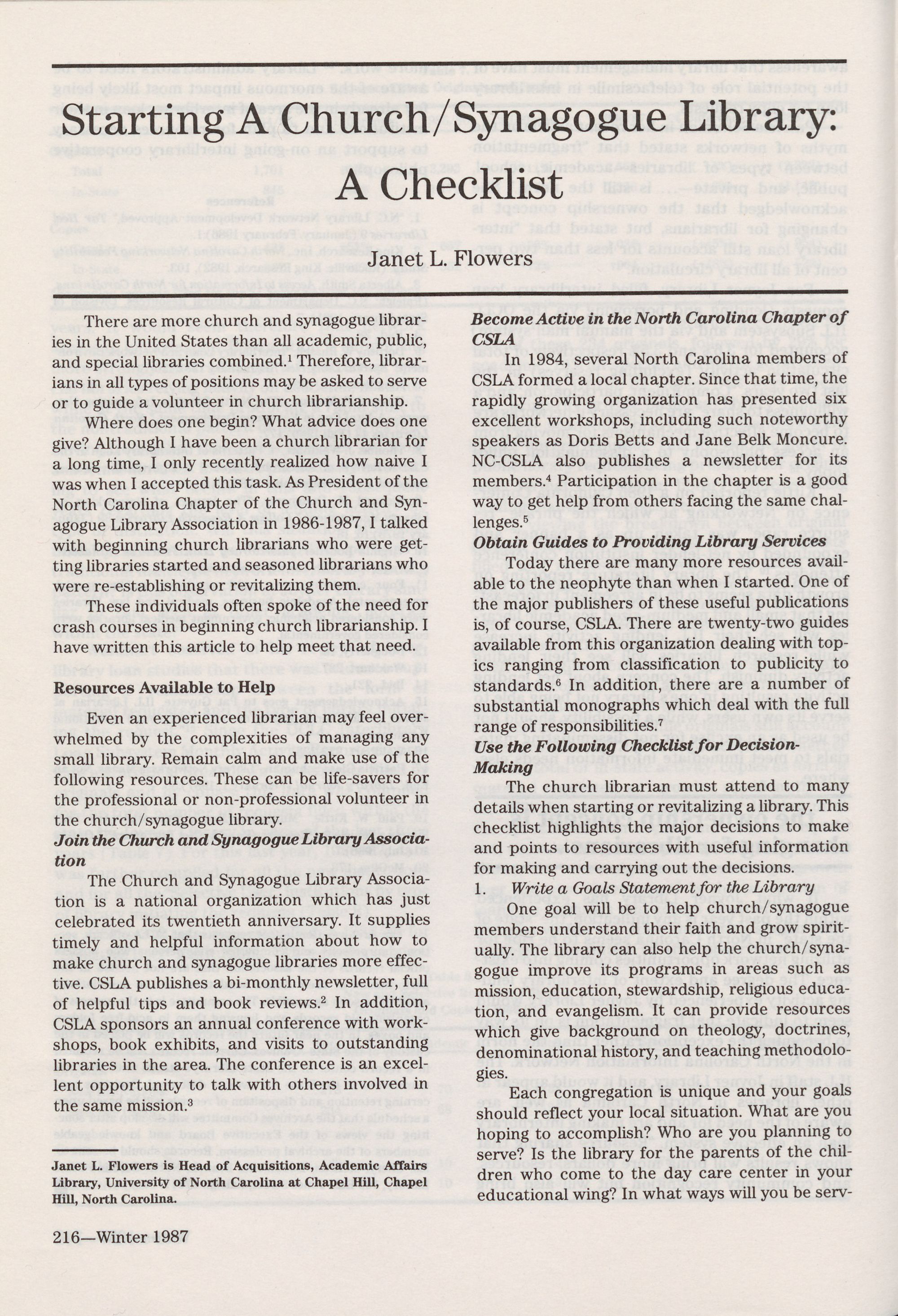 216 Starting a Church/Synagogue Library: A Checklist, Janet