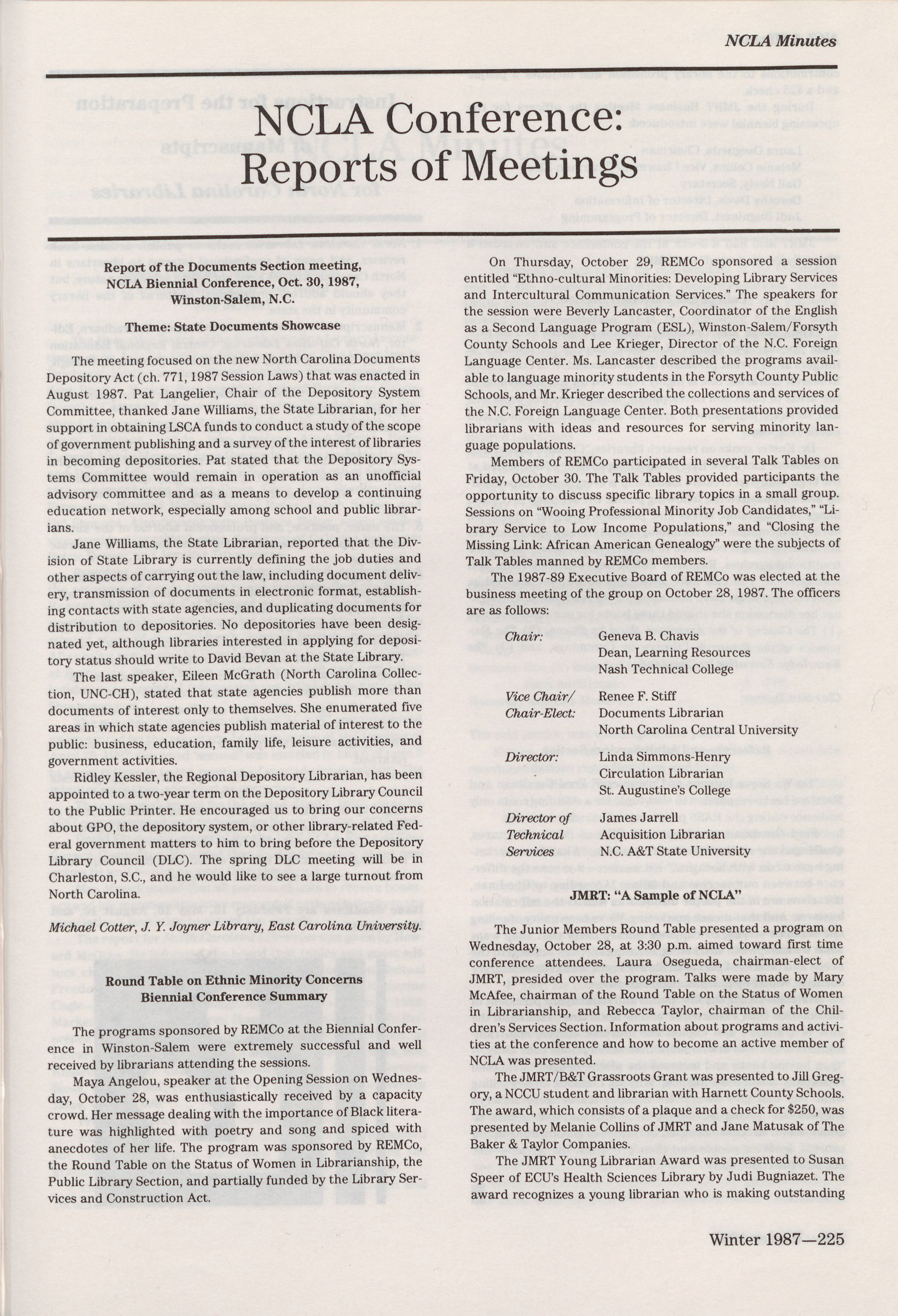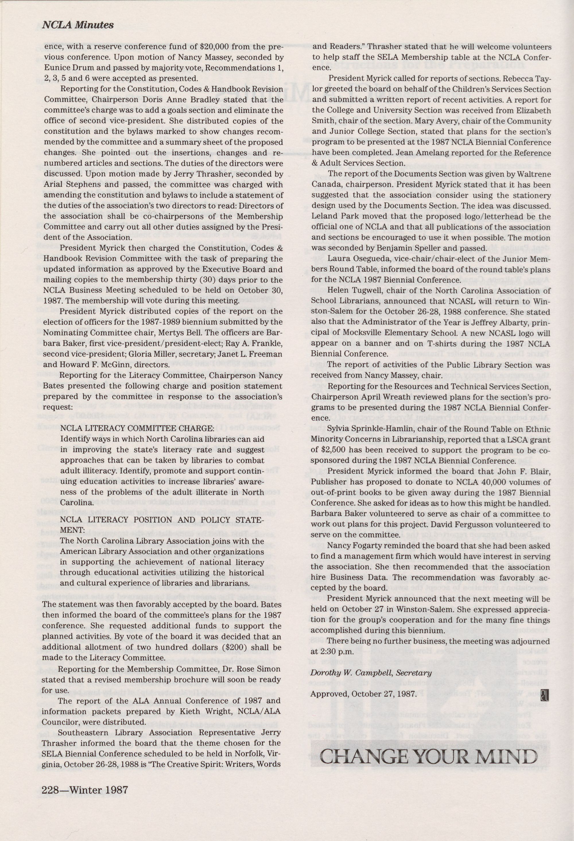 NORTH CAROLINA LIBRARY ASSOCIATION