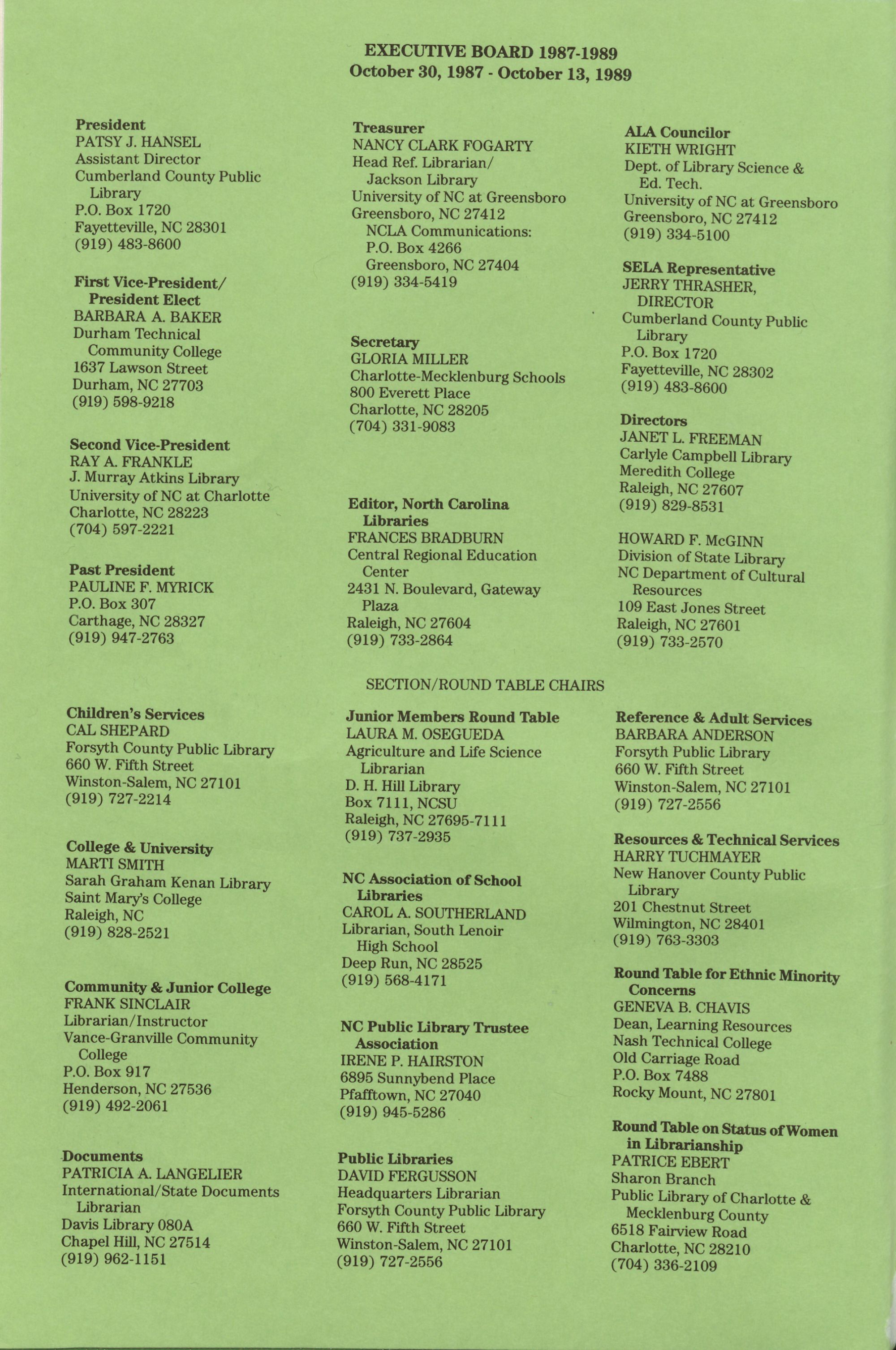 EXECUTIVE BOARD 1987-1989