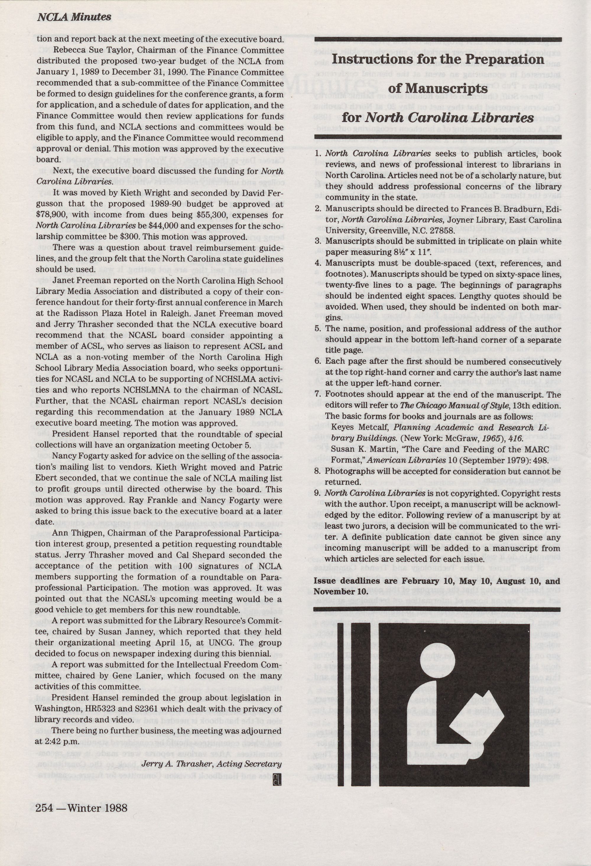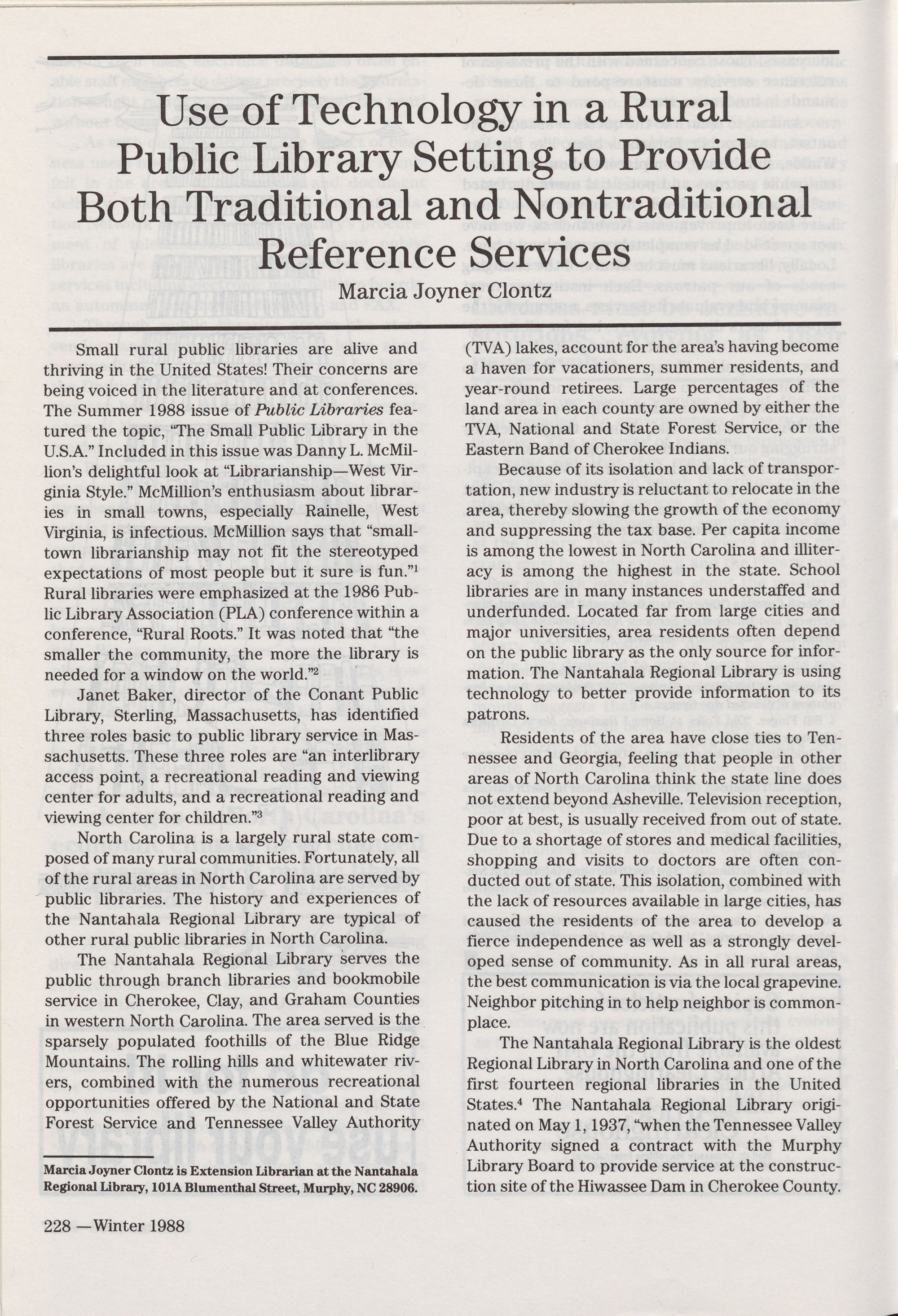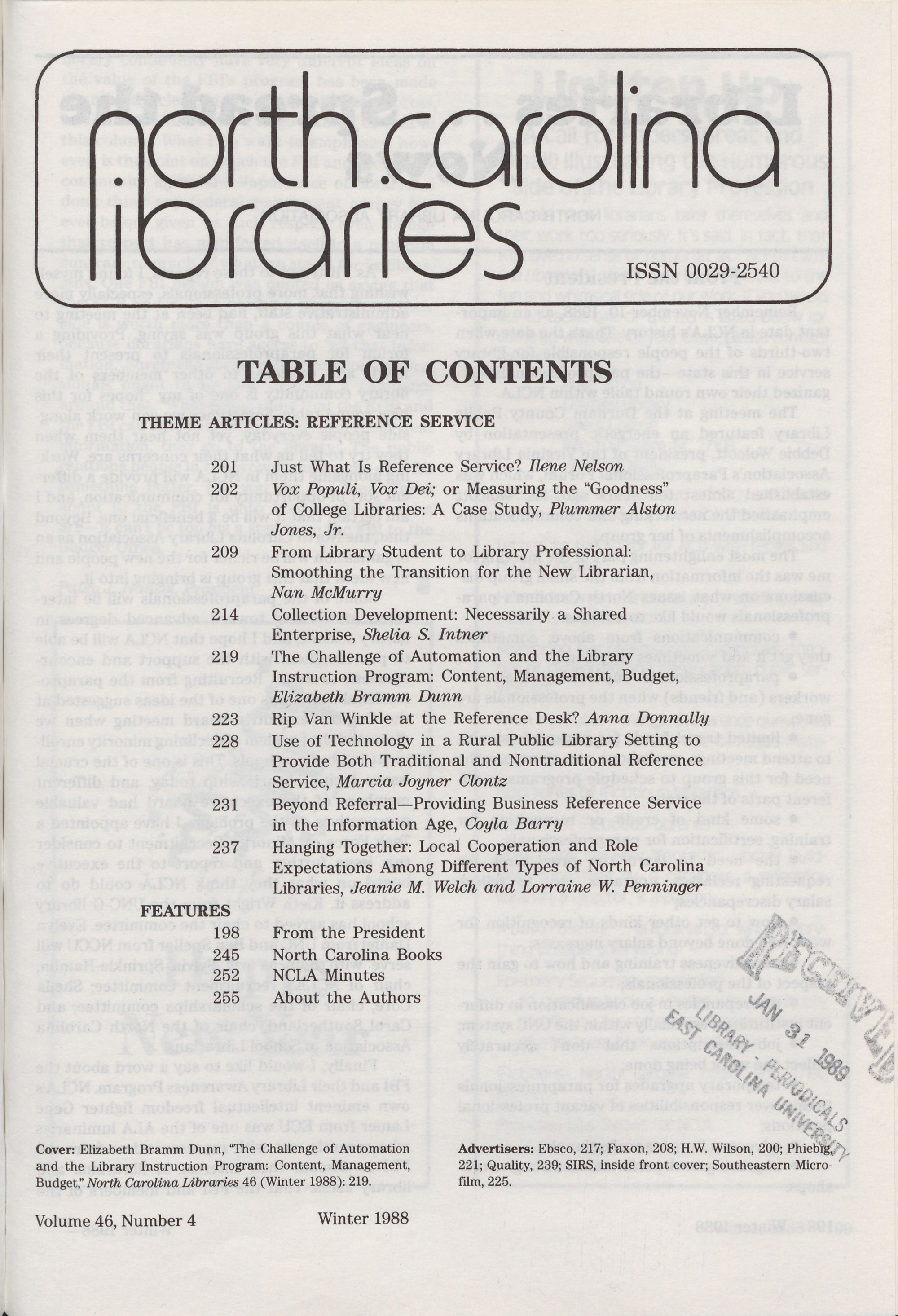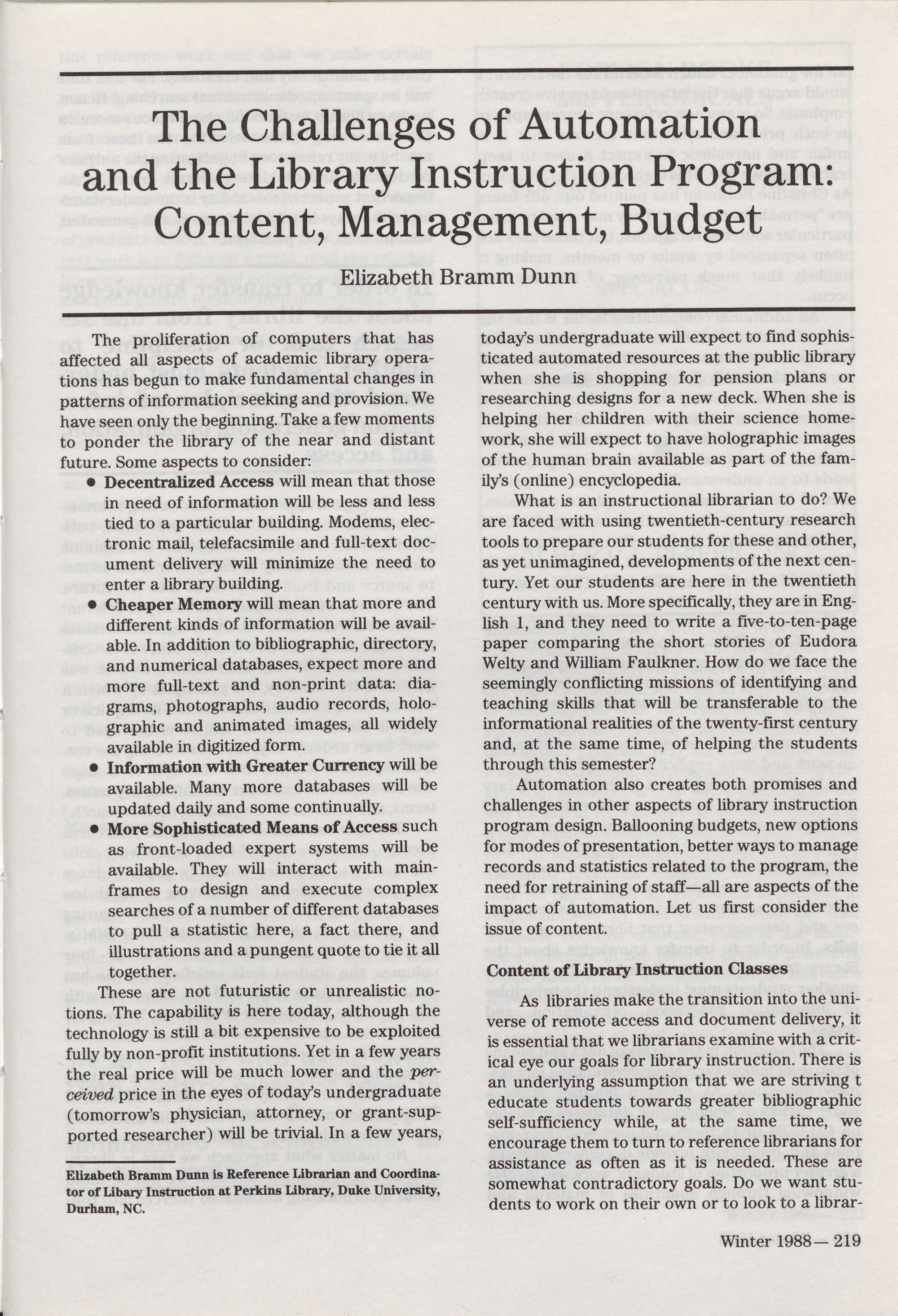 Budget,� North Carolina Libraries 46 (Winter 1988): 219. film, 225.