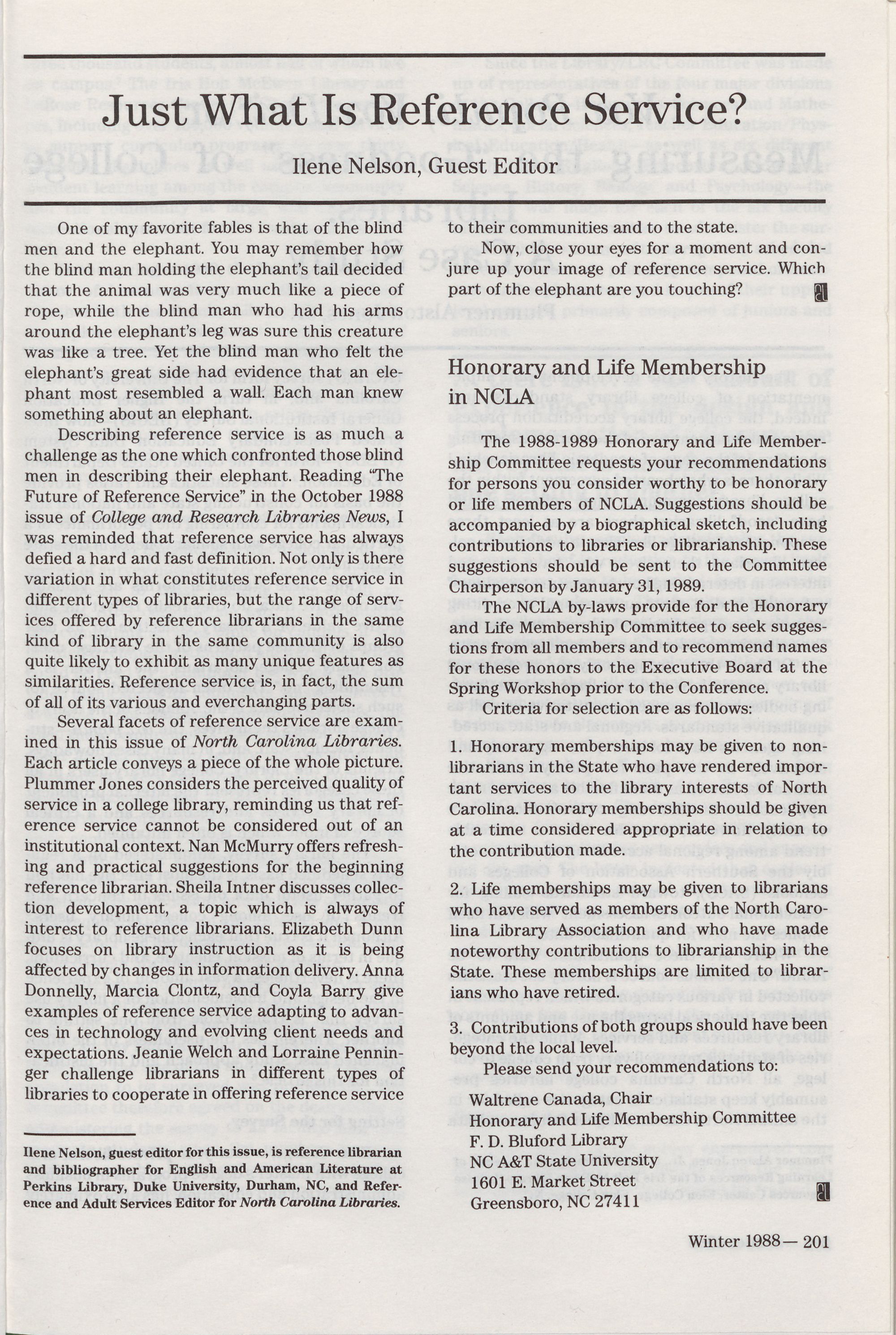201 Just What Is Reference Service? Ilene Nelson