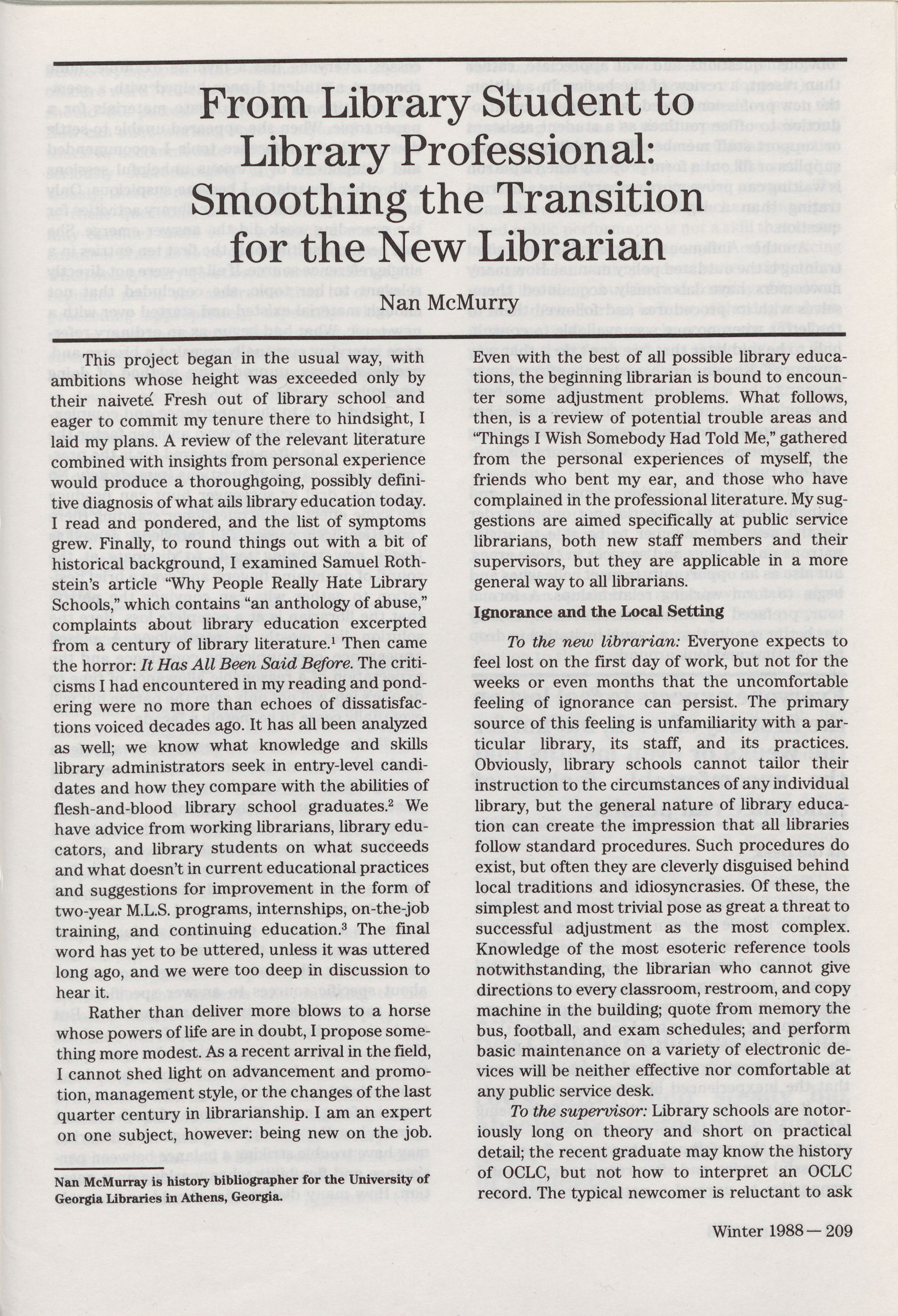209 From Library Student to Library Professional: