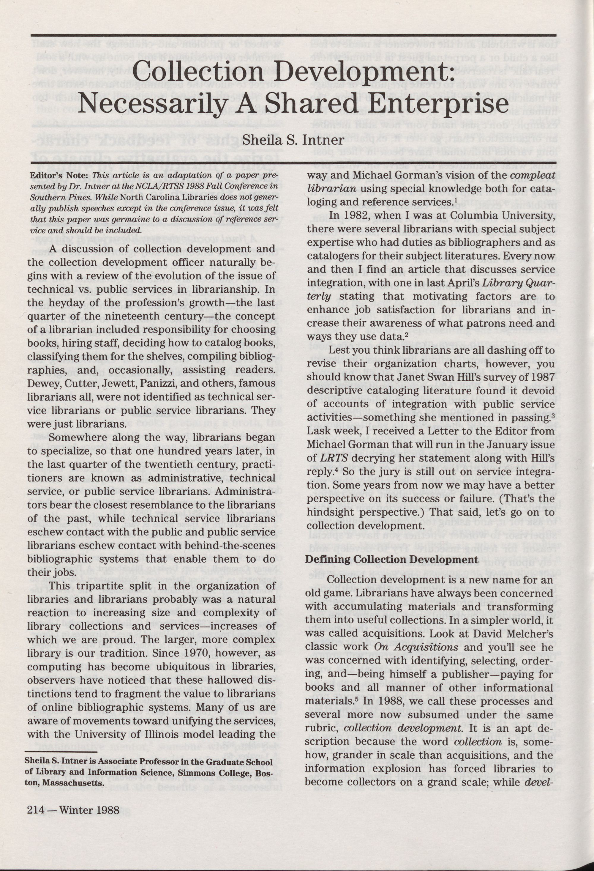 214 Collection Development: Necessarily.a Shared