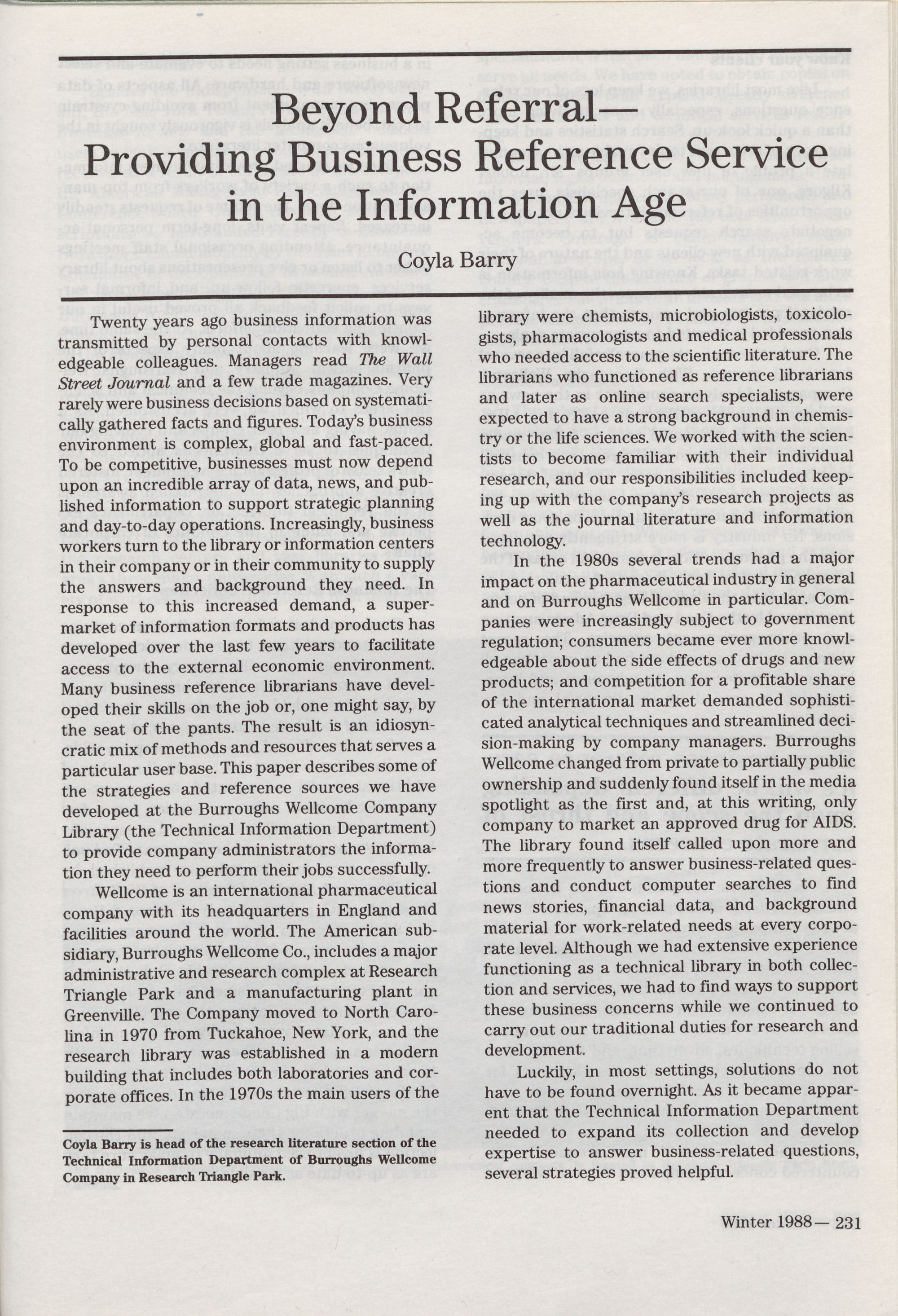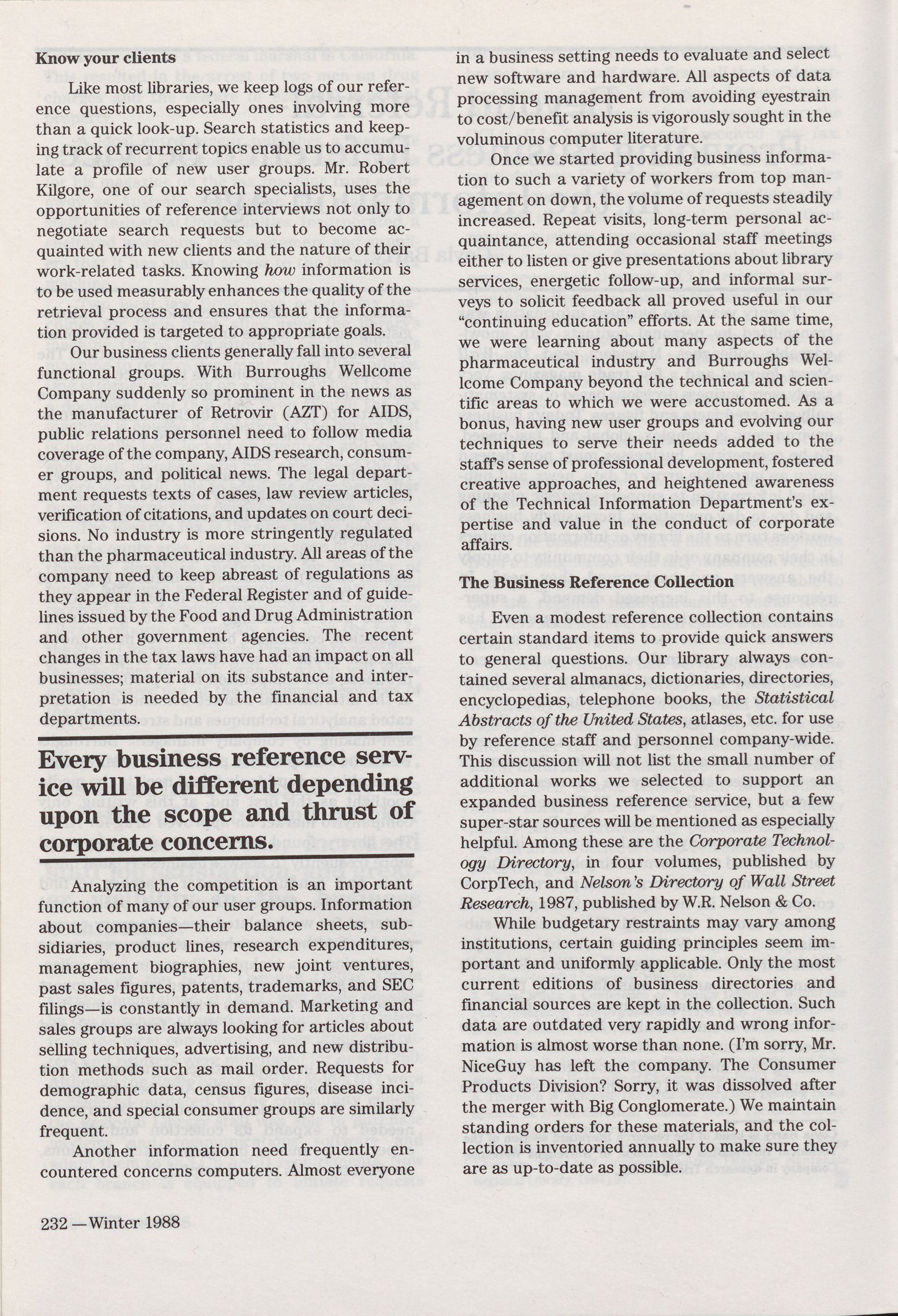 198 " Winter 1988