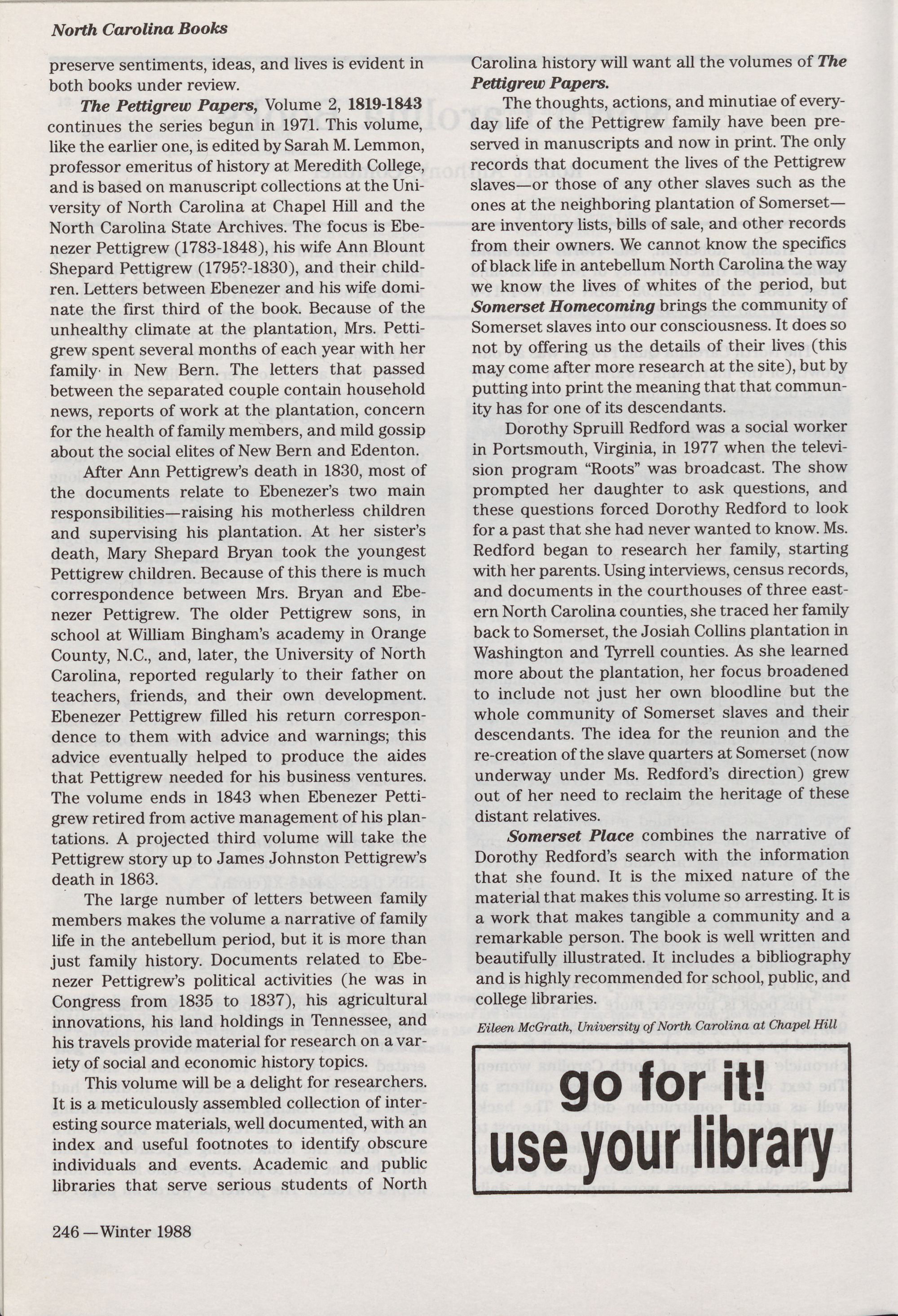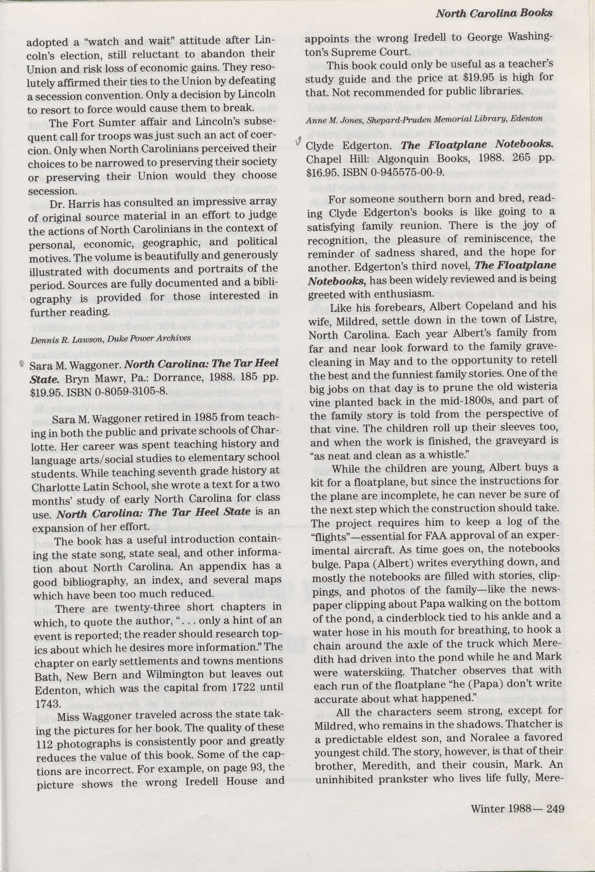 crofilms. North Carolina Libraries is indexed by Library