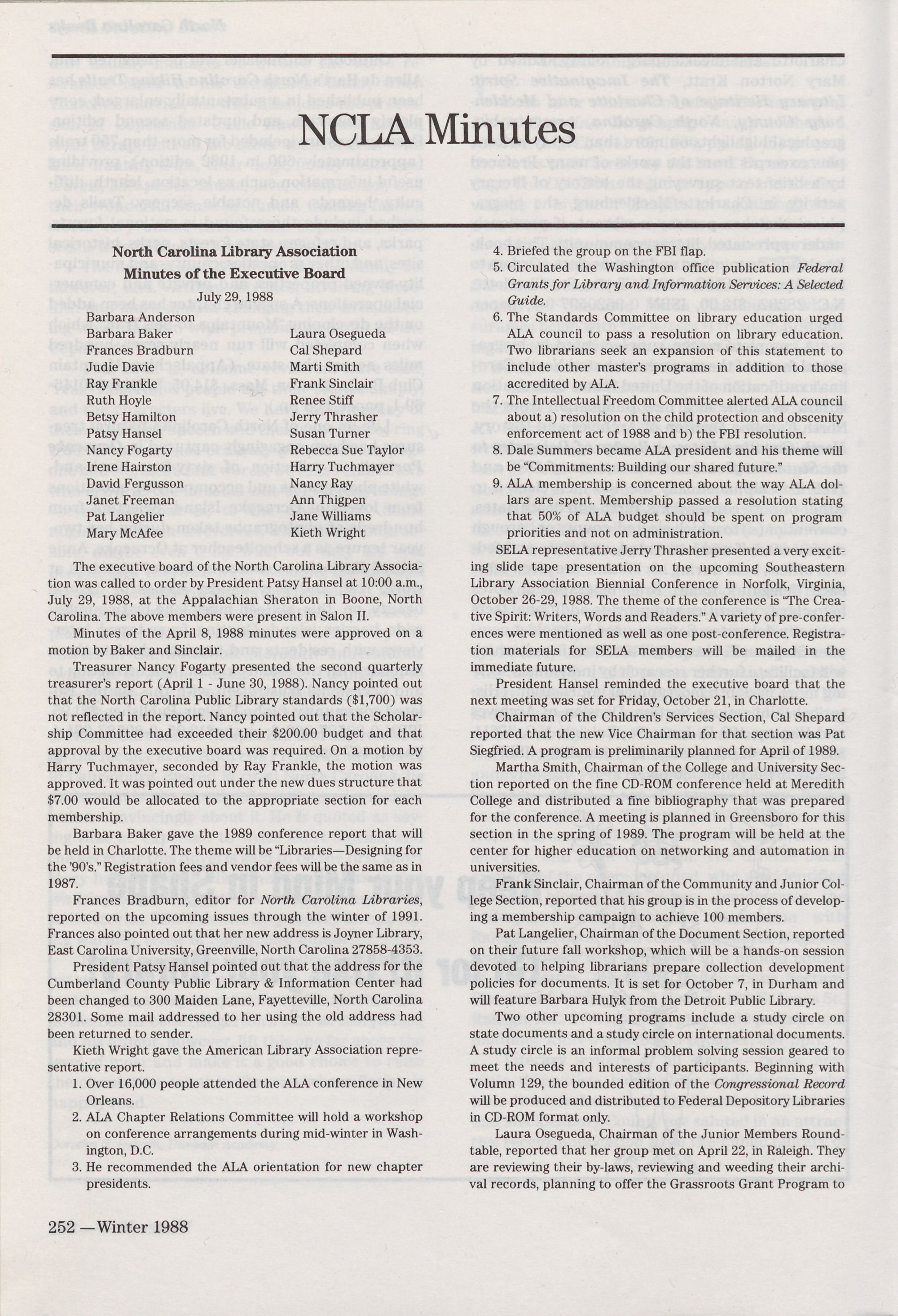 252 NCLA Minutes