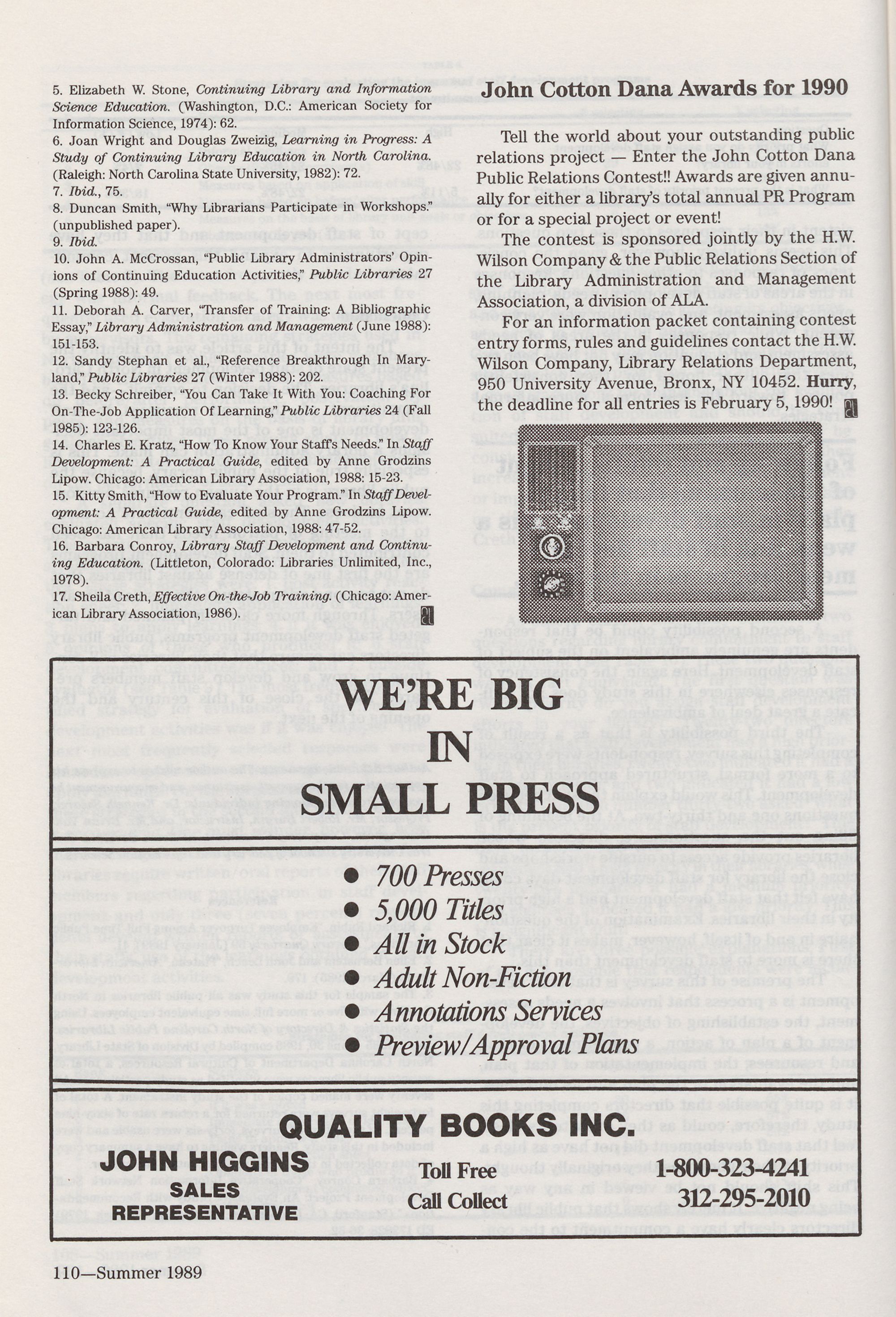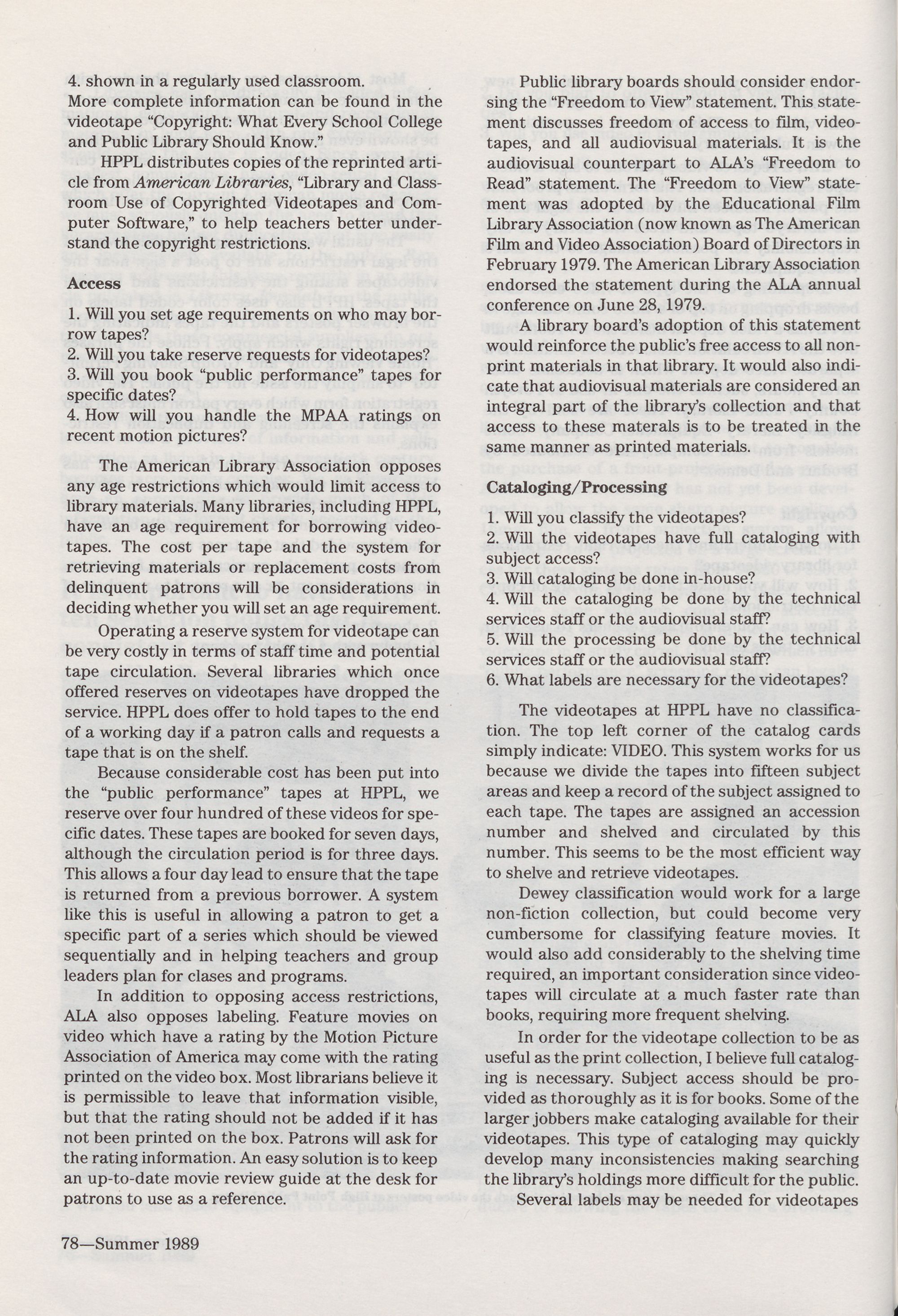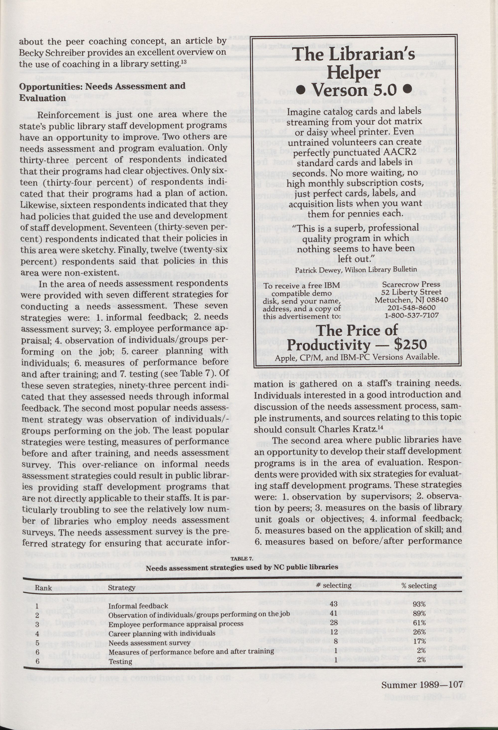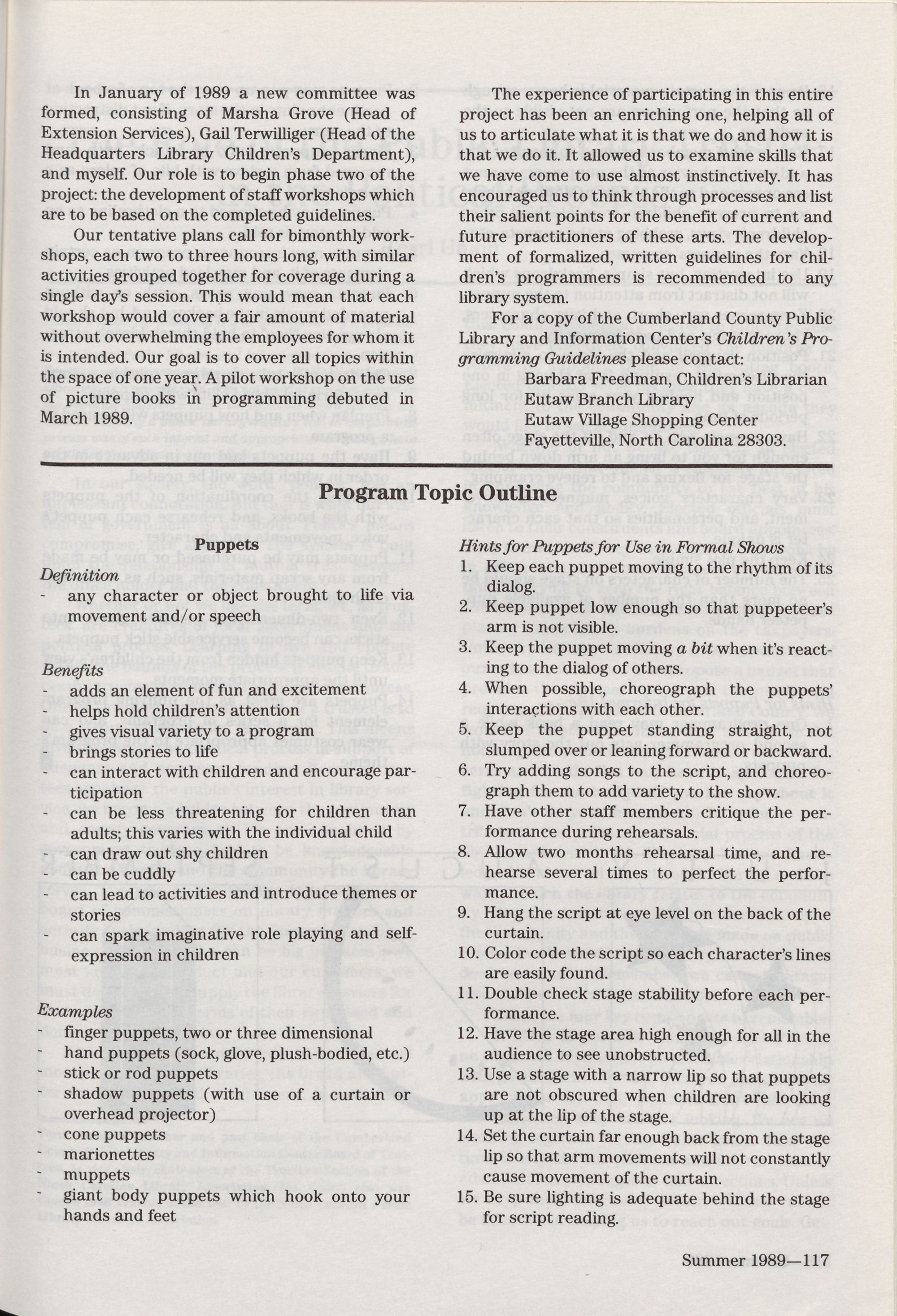 Cover: Catherine Moore, oVideo at High Point Public Library: A Advertisers: BroadfootTs, 97; Ebsco, 101; Faxon, 81; H.W. Wilson,