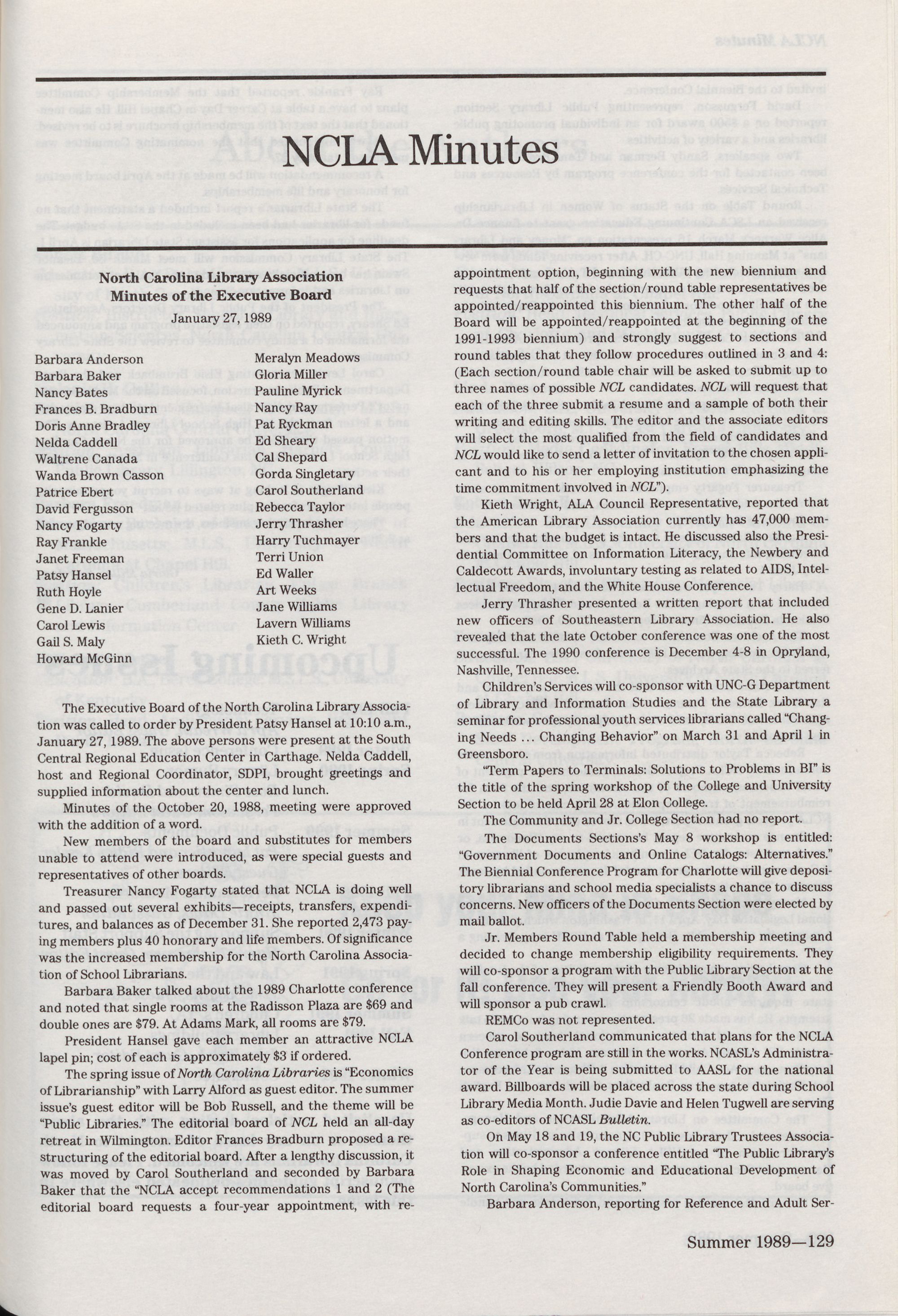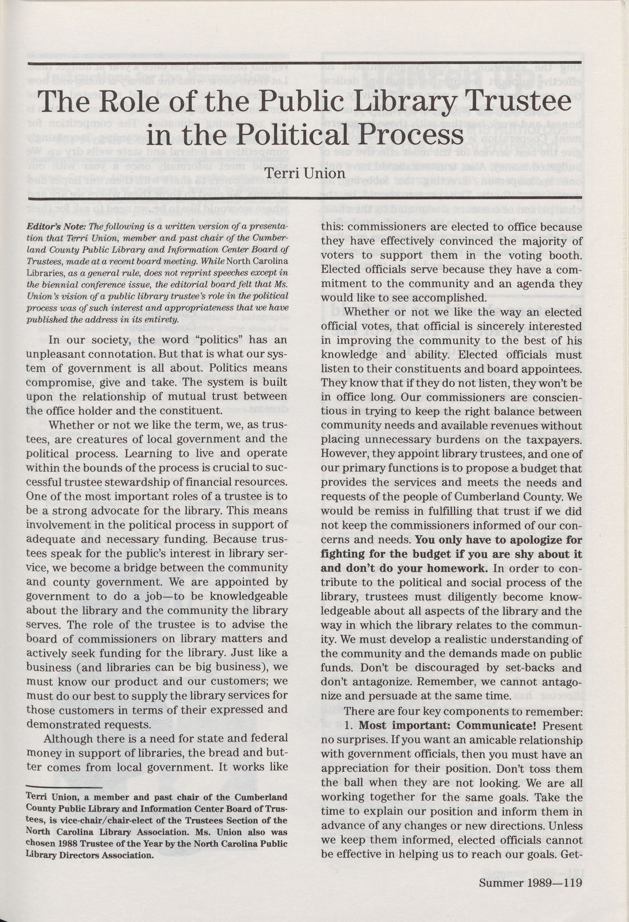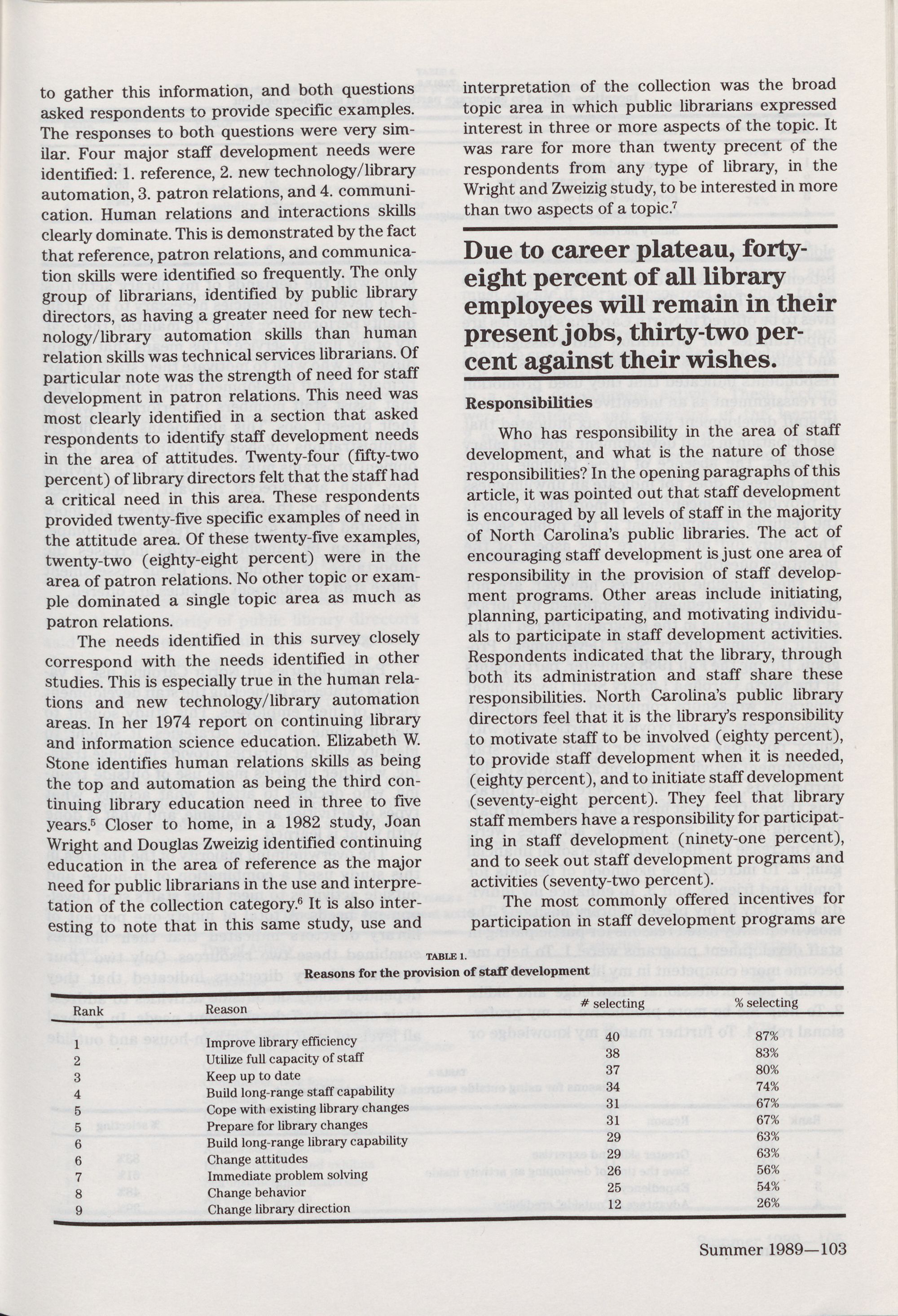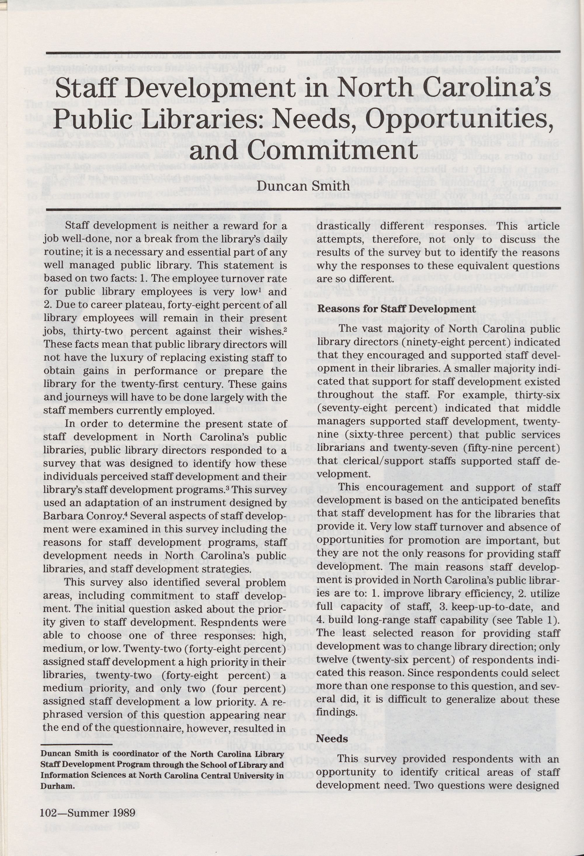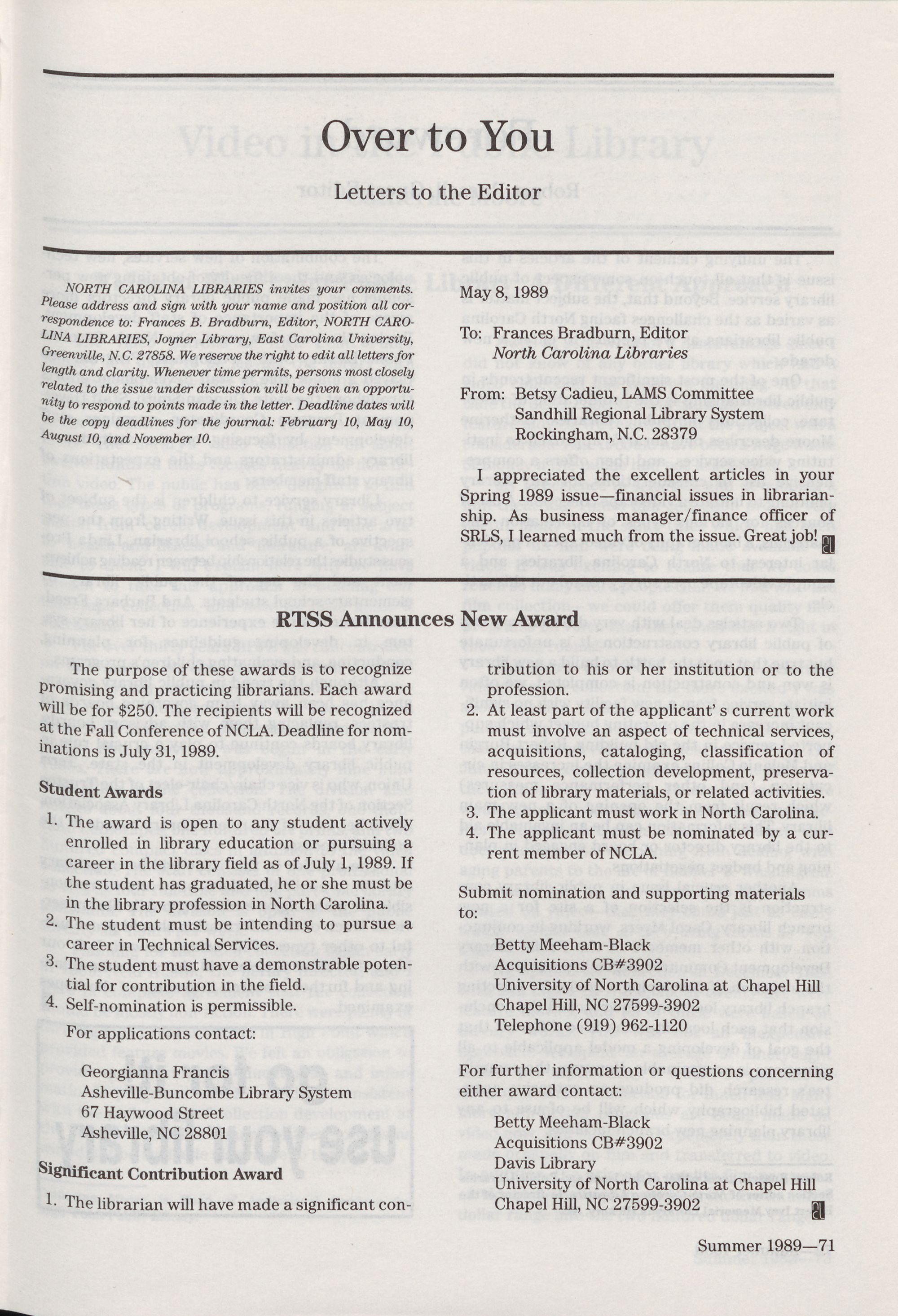 North Carolina Libraries, published four times a year, is the official publication of the North Carolina