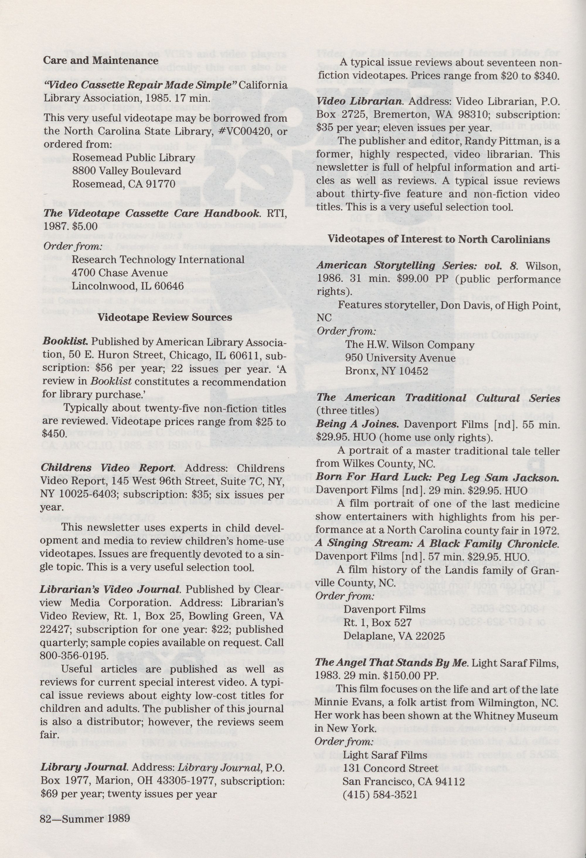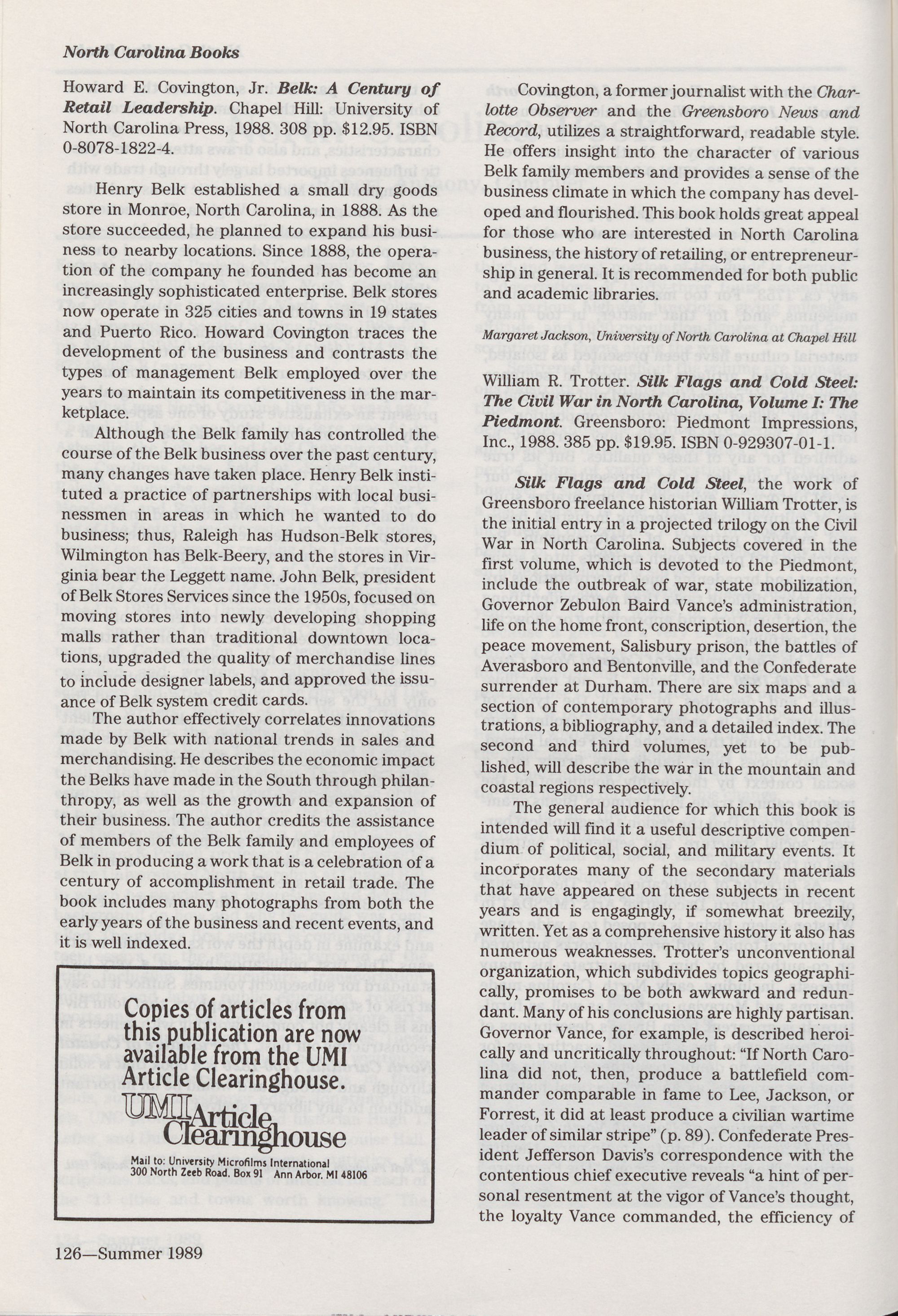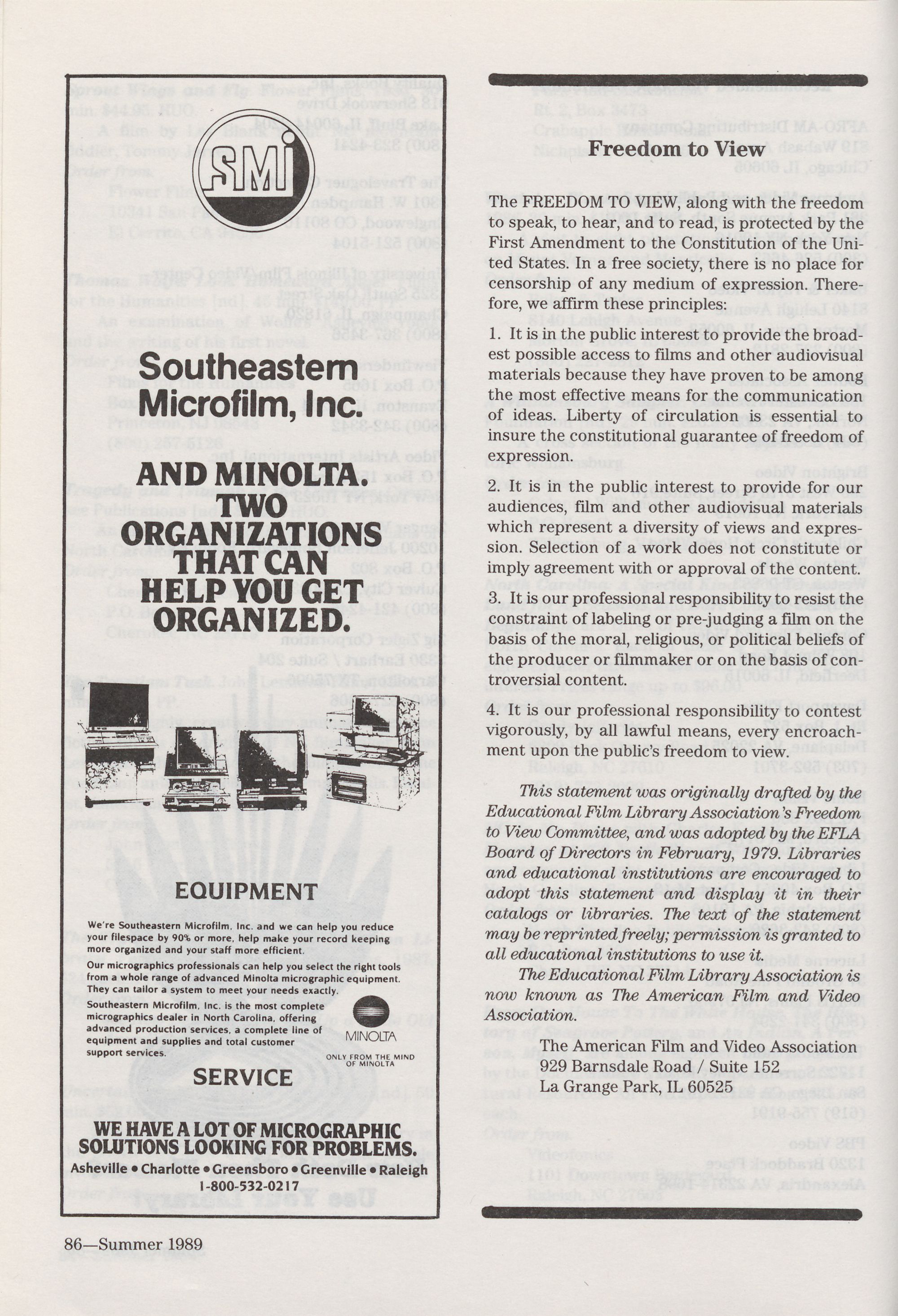 lection,� North Carolina Libraries 47 (Summer 1989): 73. inside front cover; Southeastern Microfilm, 86.