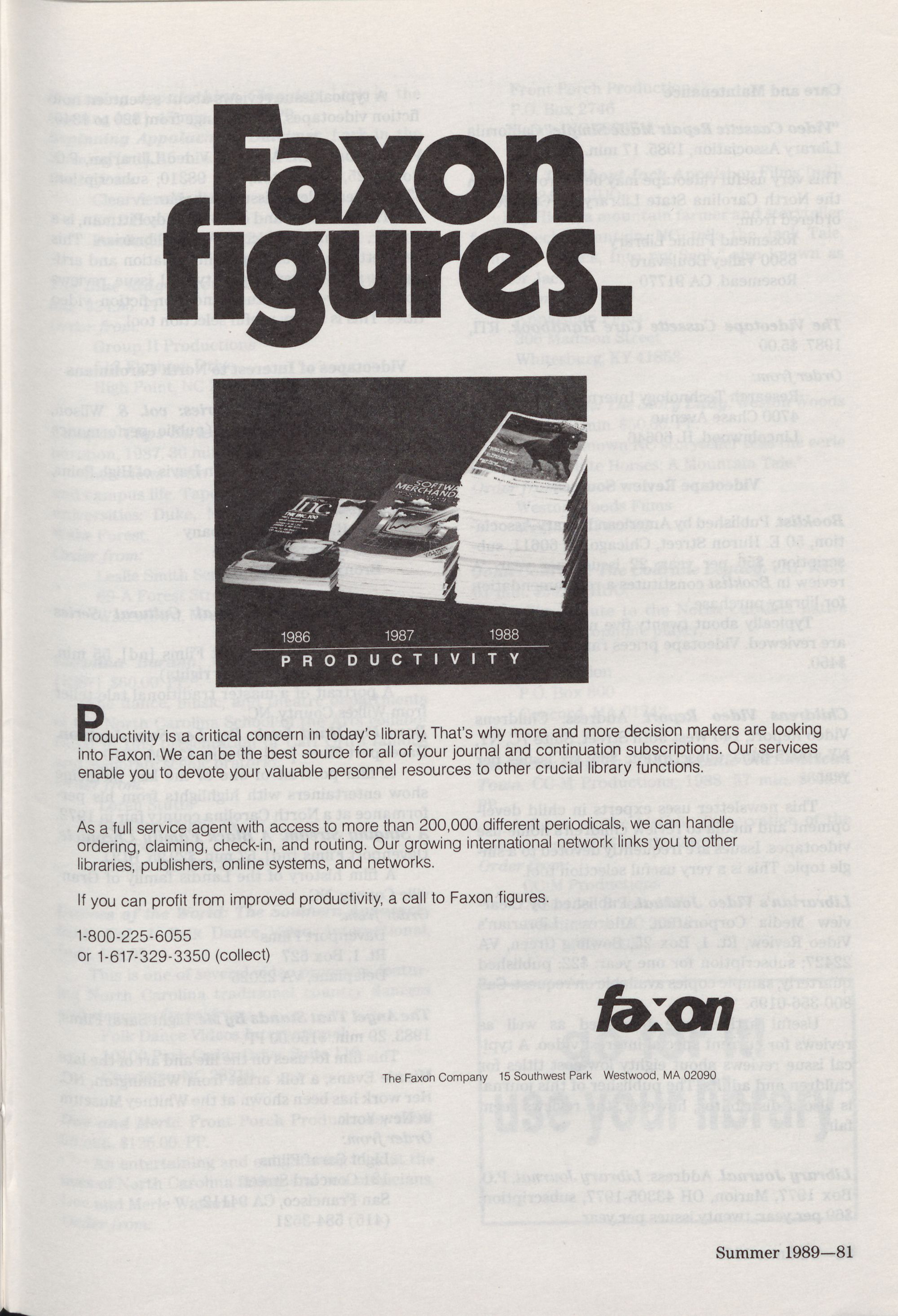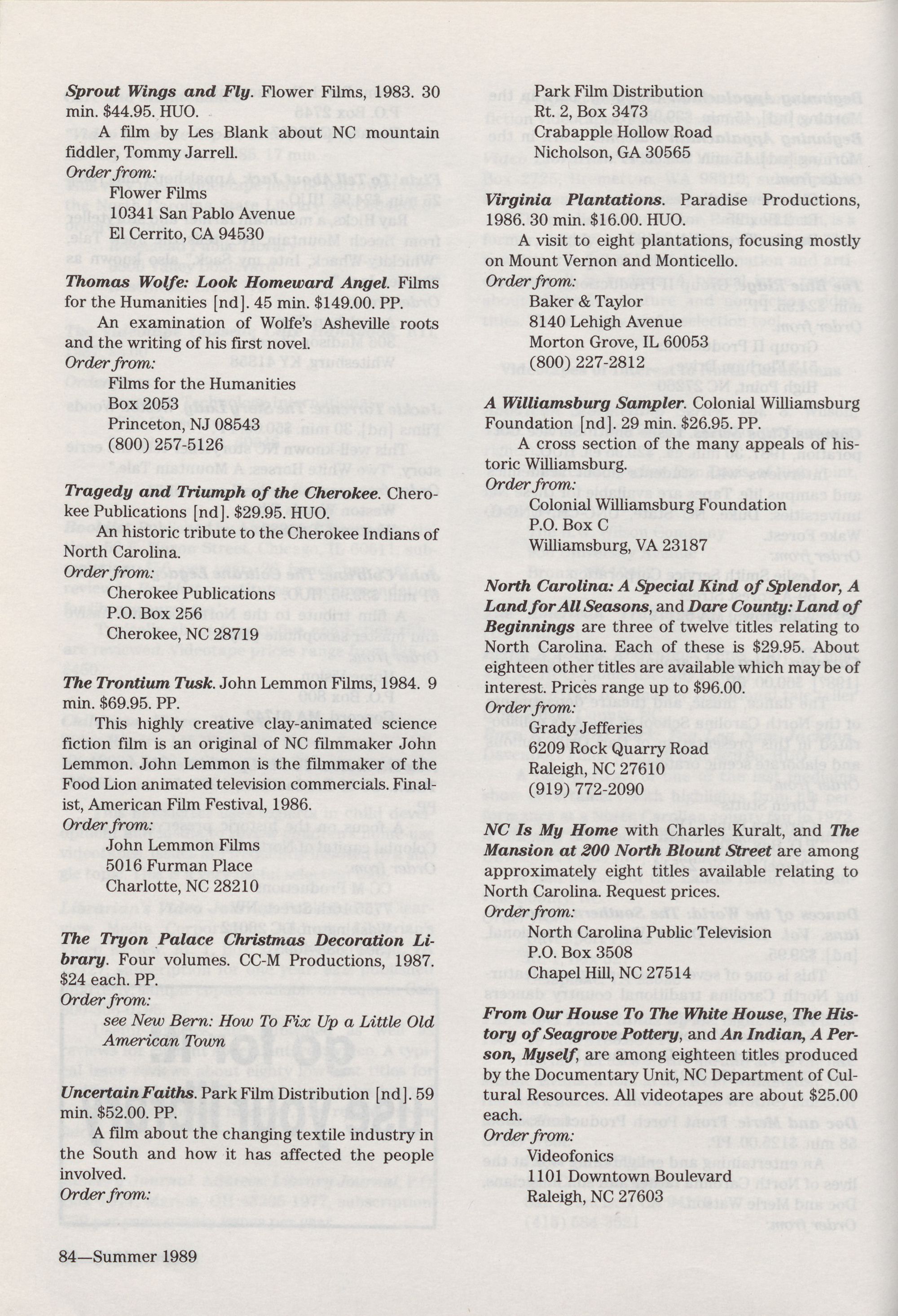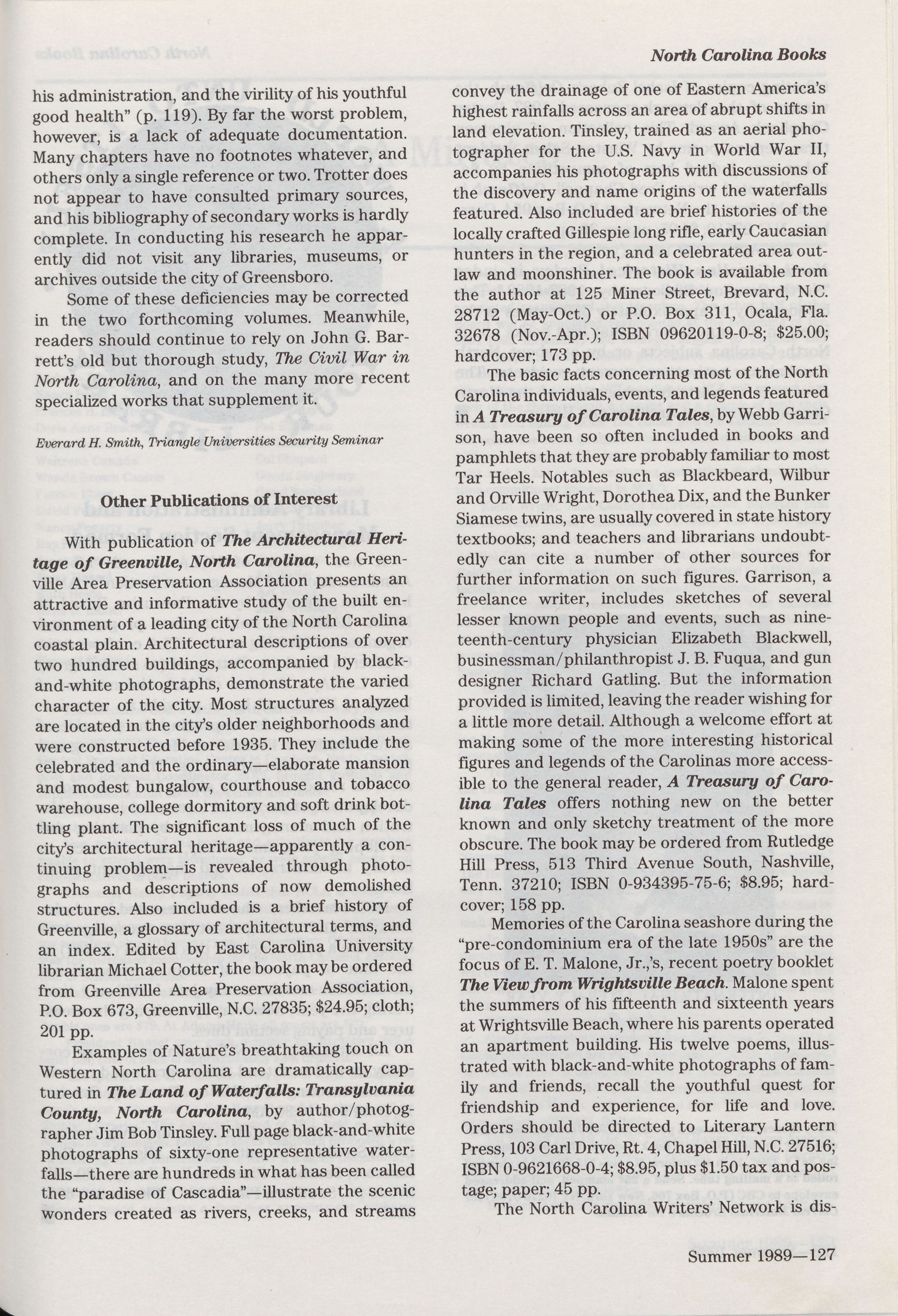 lection,� North Carolina Libraries 47 (Summer 1989): 73. inside front cover; Southeastern Microfilm, 86.