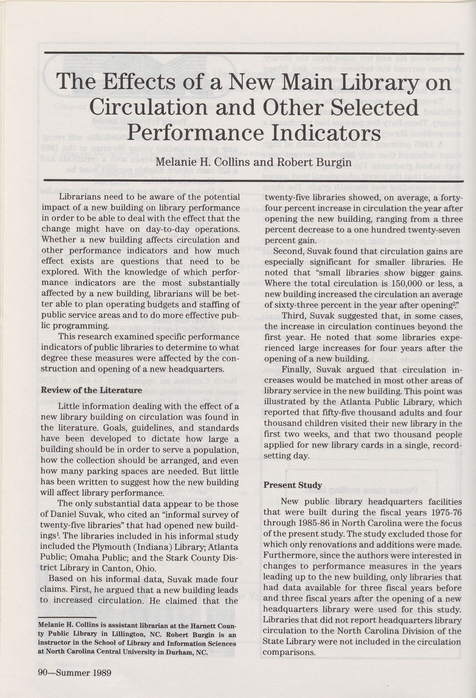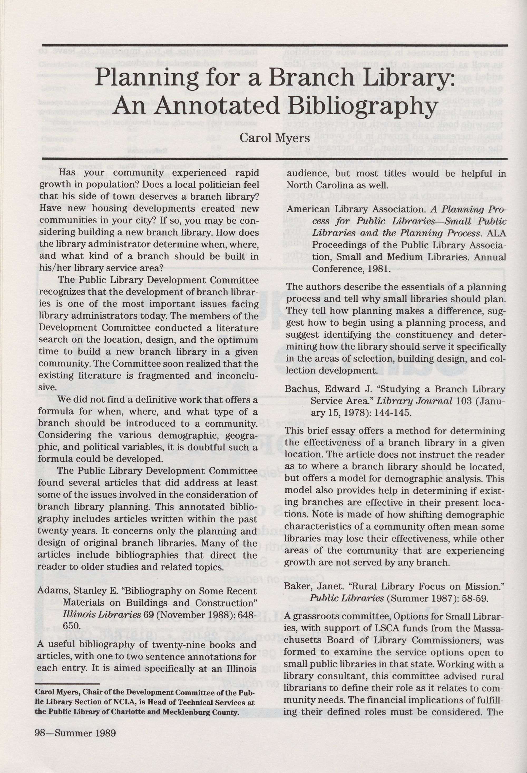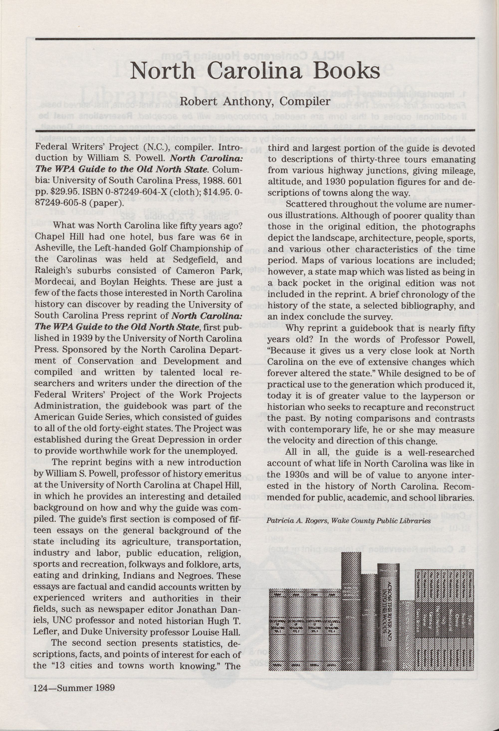 copies are available through University Microfilms. North Carolina Libraries is indexed by Library