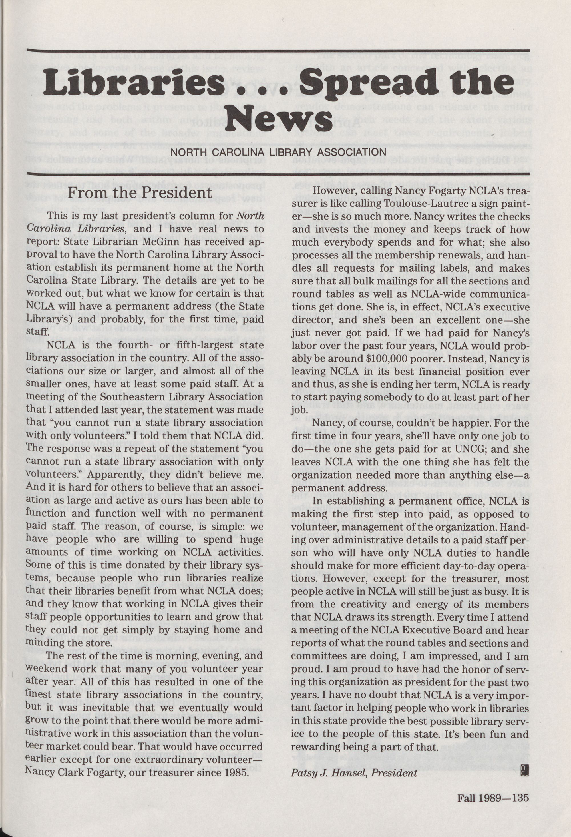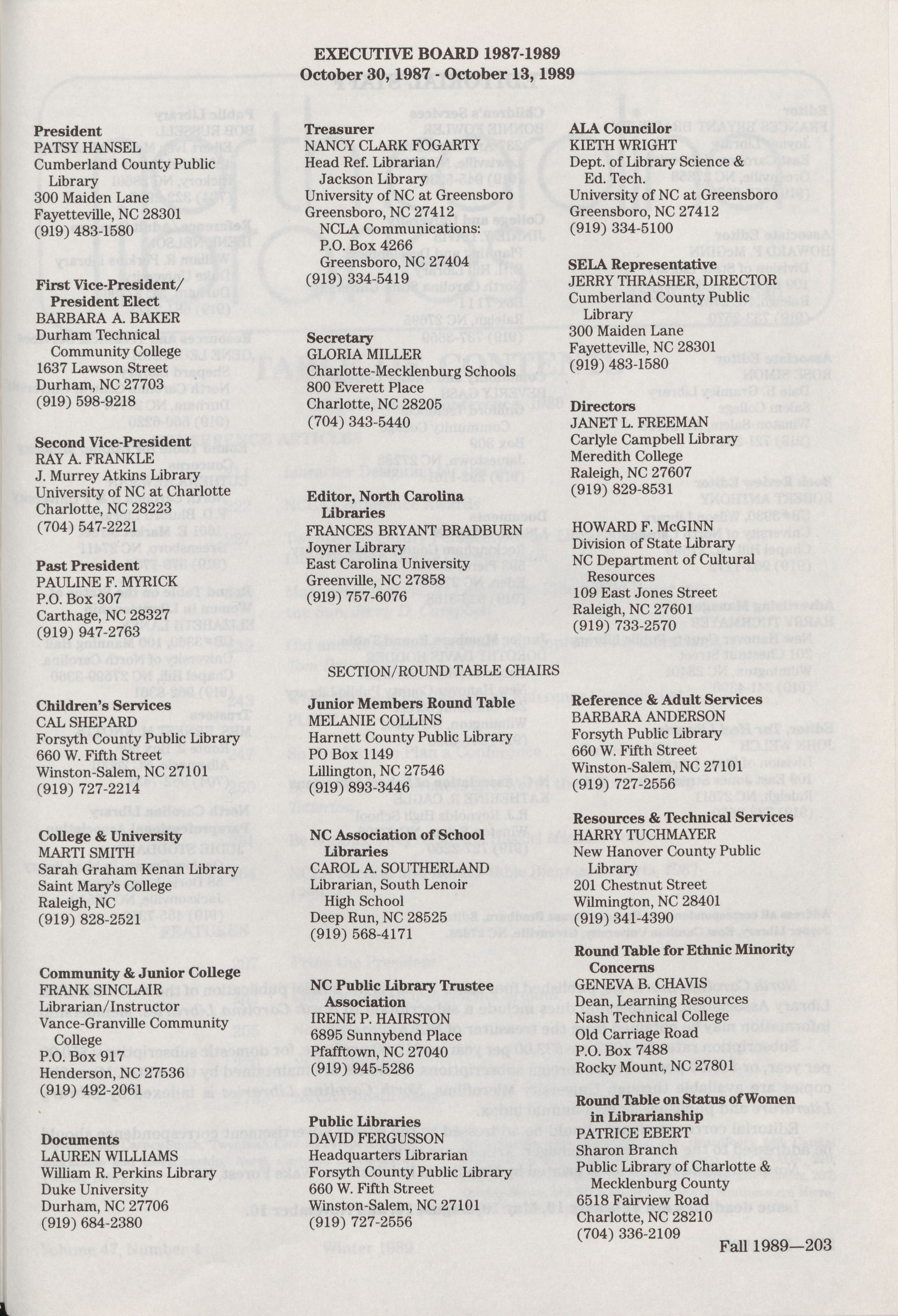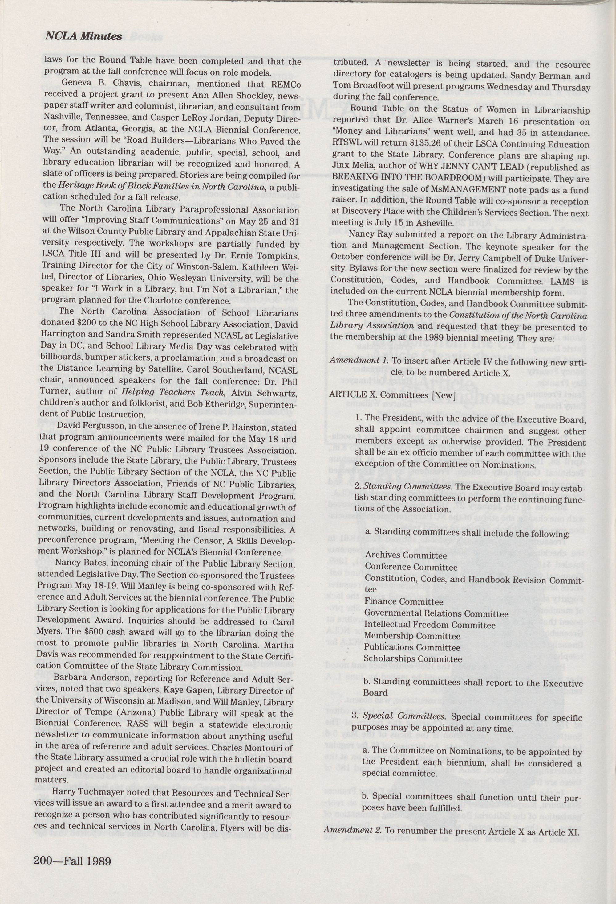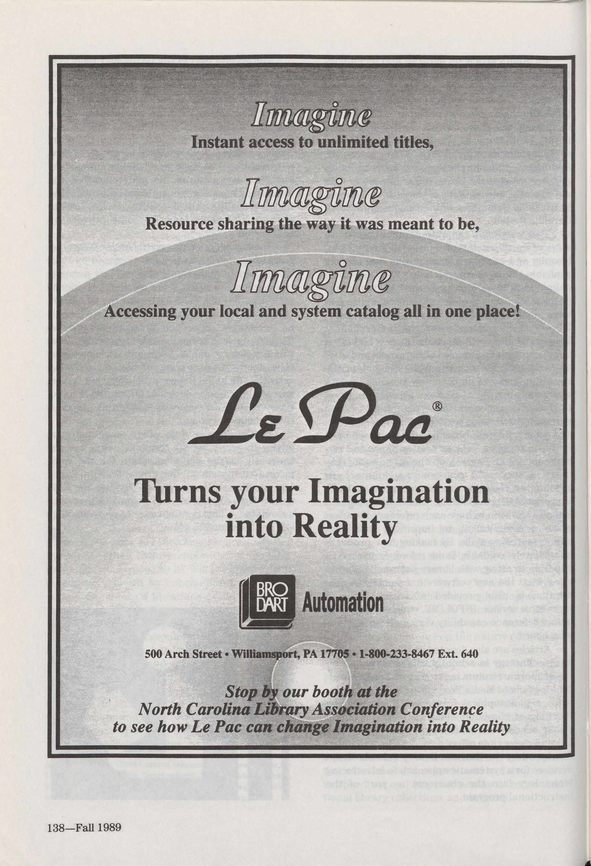 North Carolina Libraries, published four times a year, is the official publication of the North Carolina