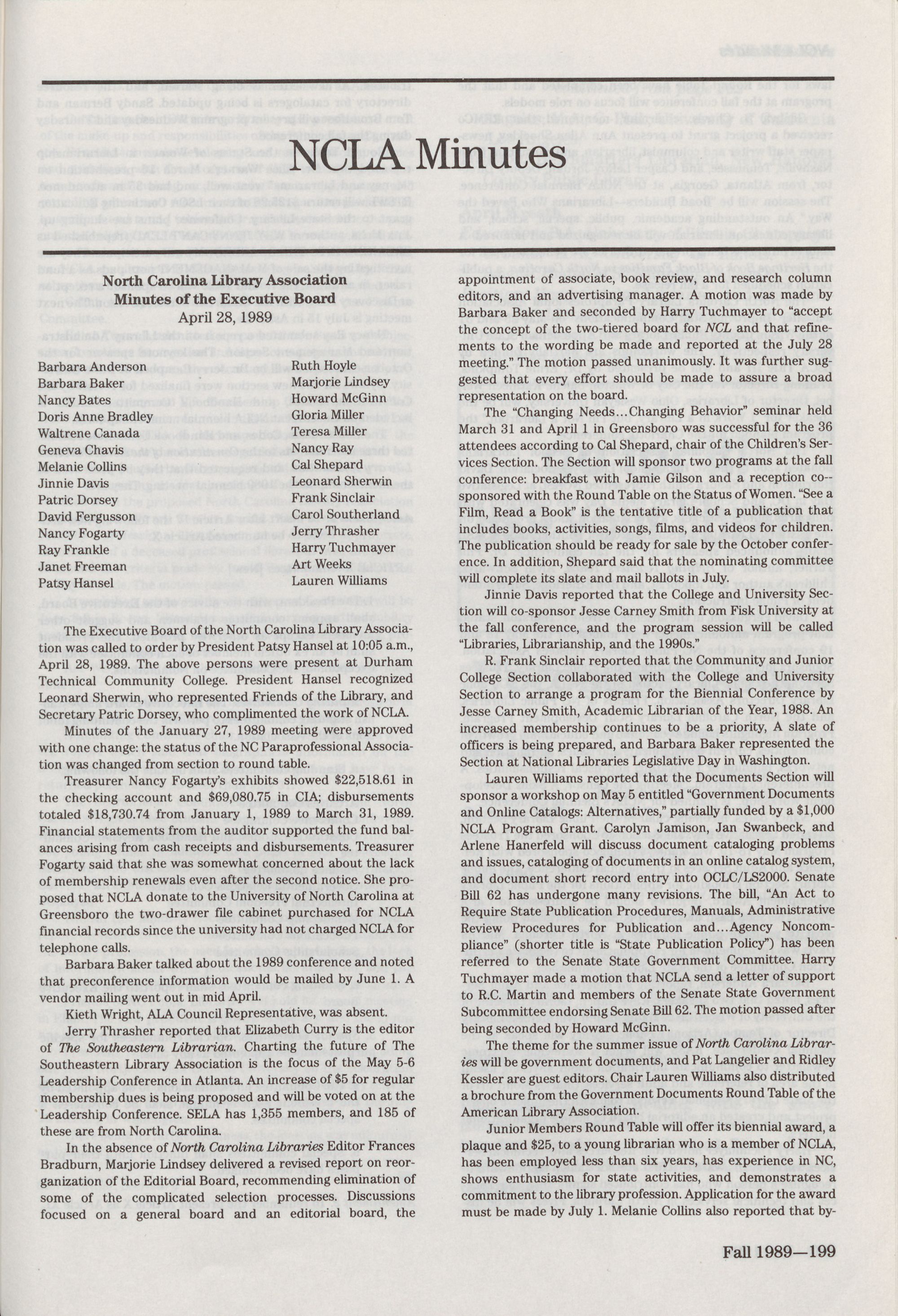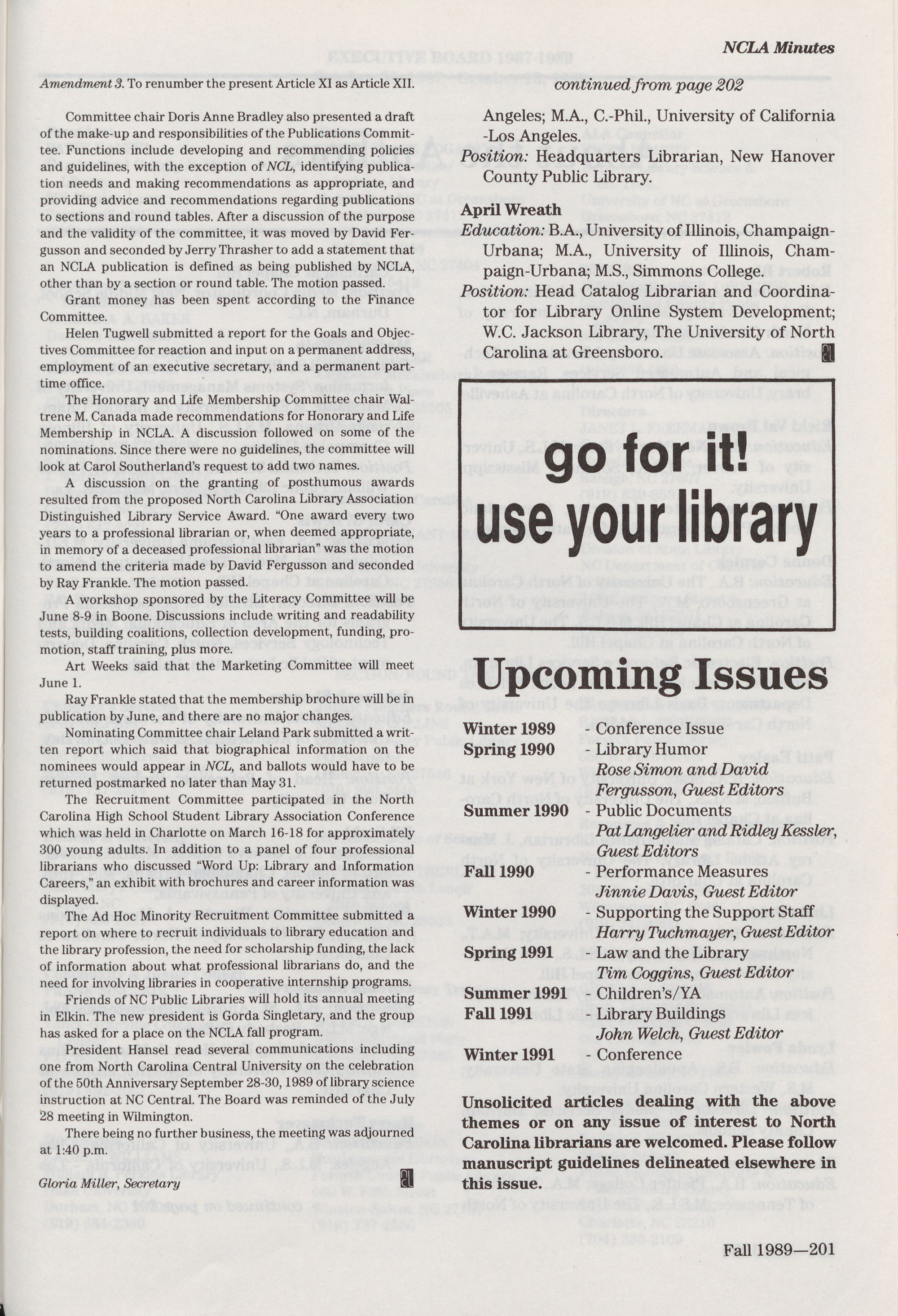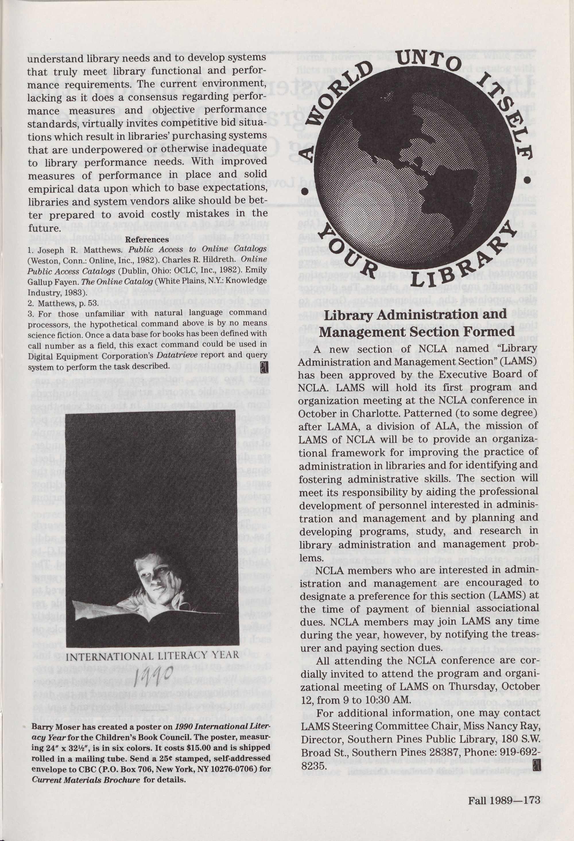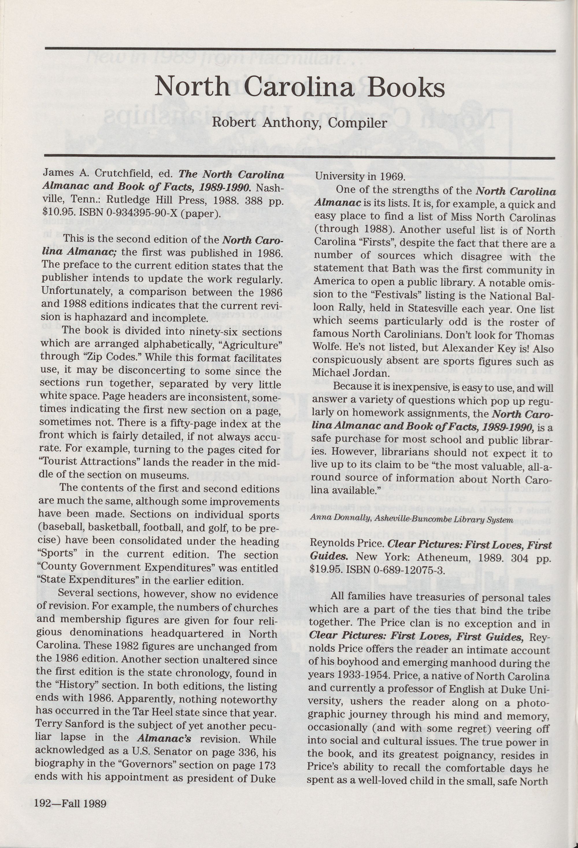 North Carolina Libraries, published four times a year, is the official publication of the North Carolina