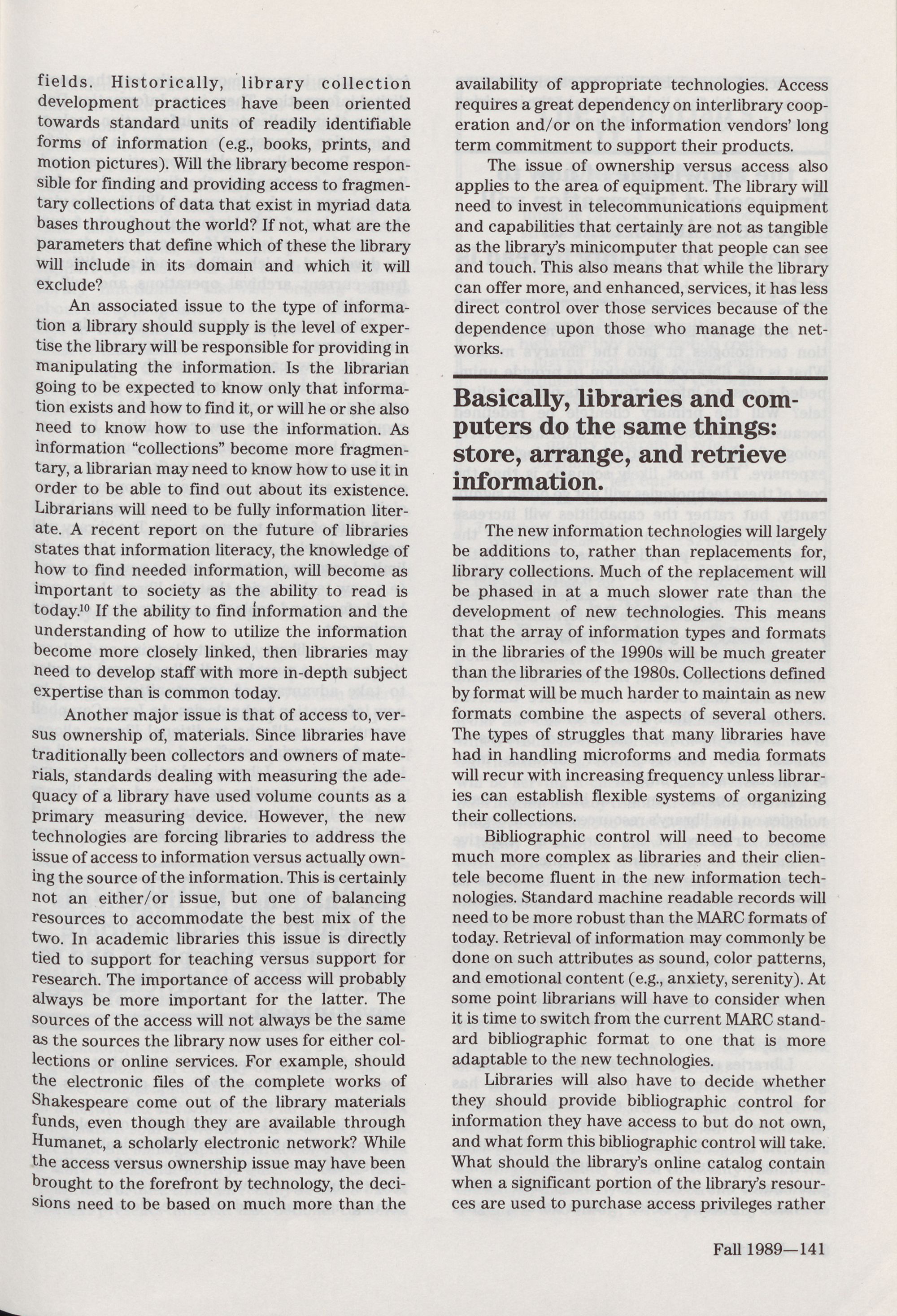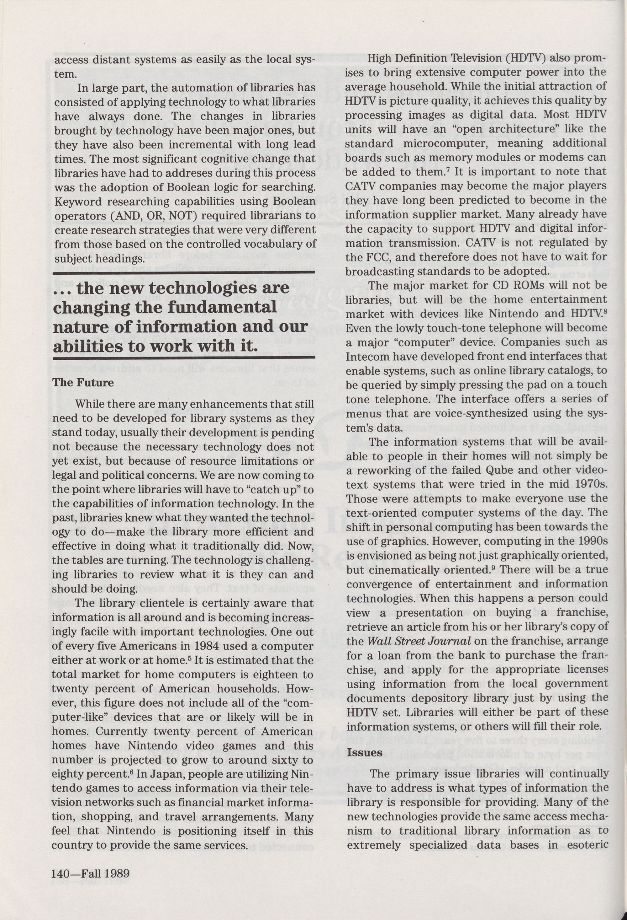 139 Libraries and Technology: Forging New Frontiers or Lost y