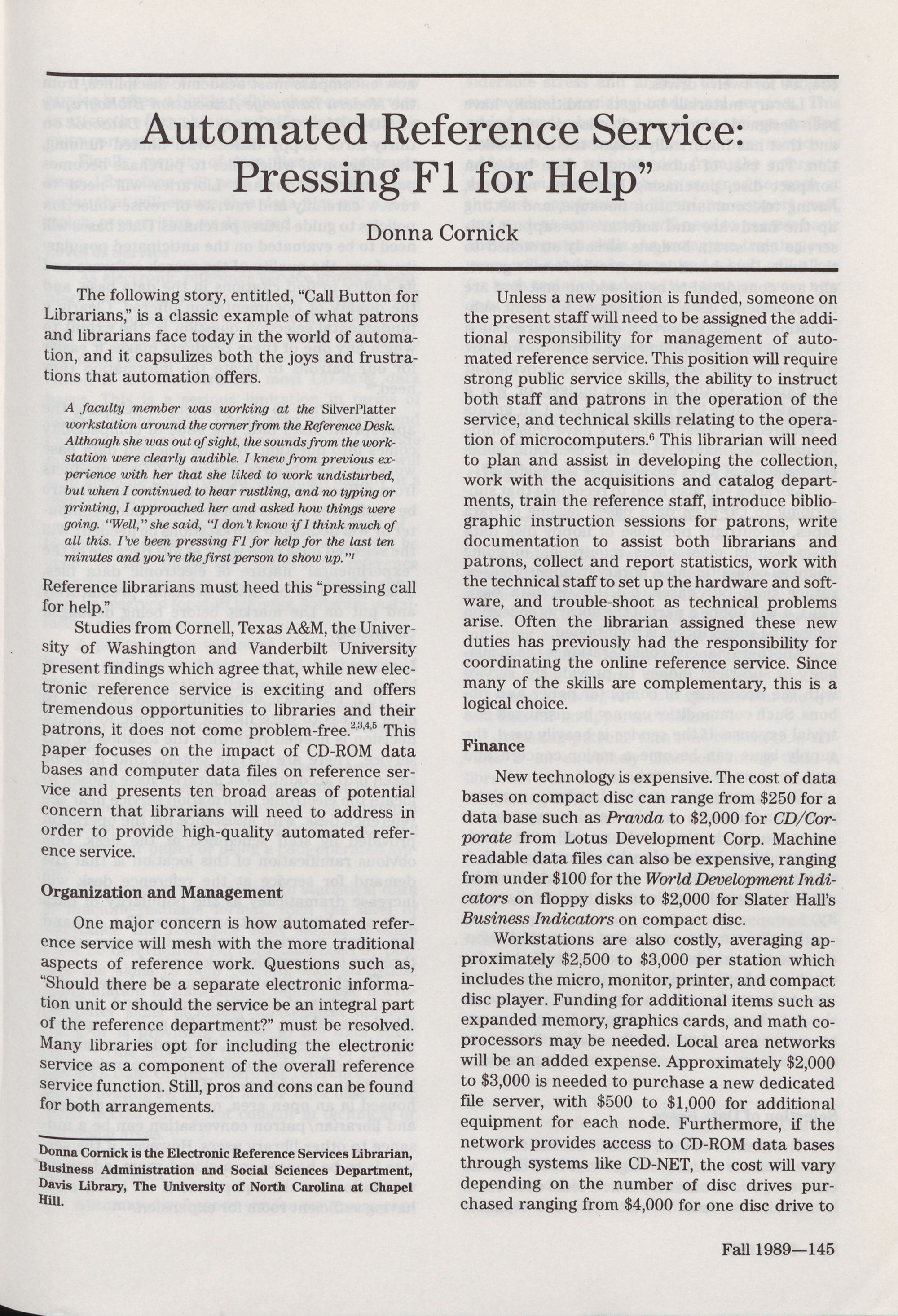 145 Automated Reference Service: oPressing F1 for Helps. YY, ,