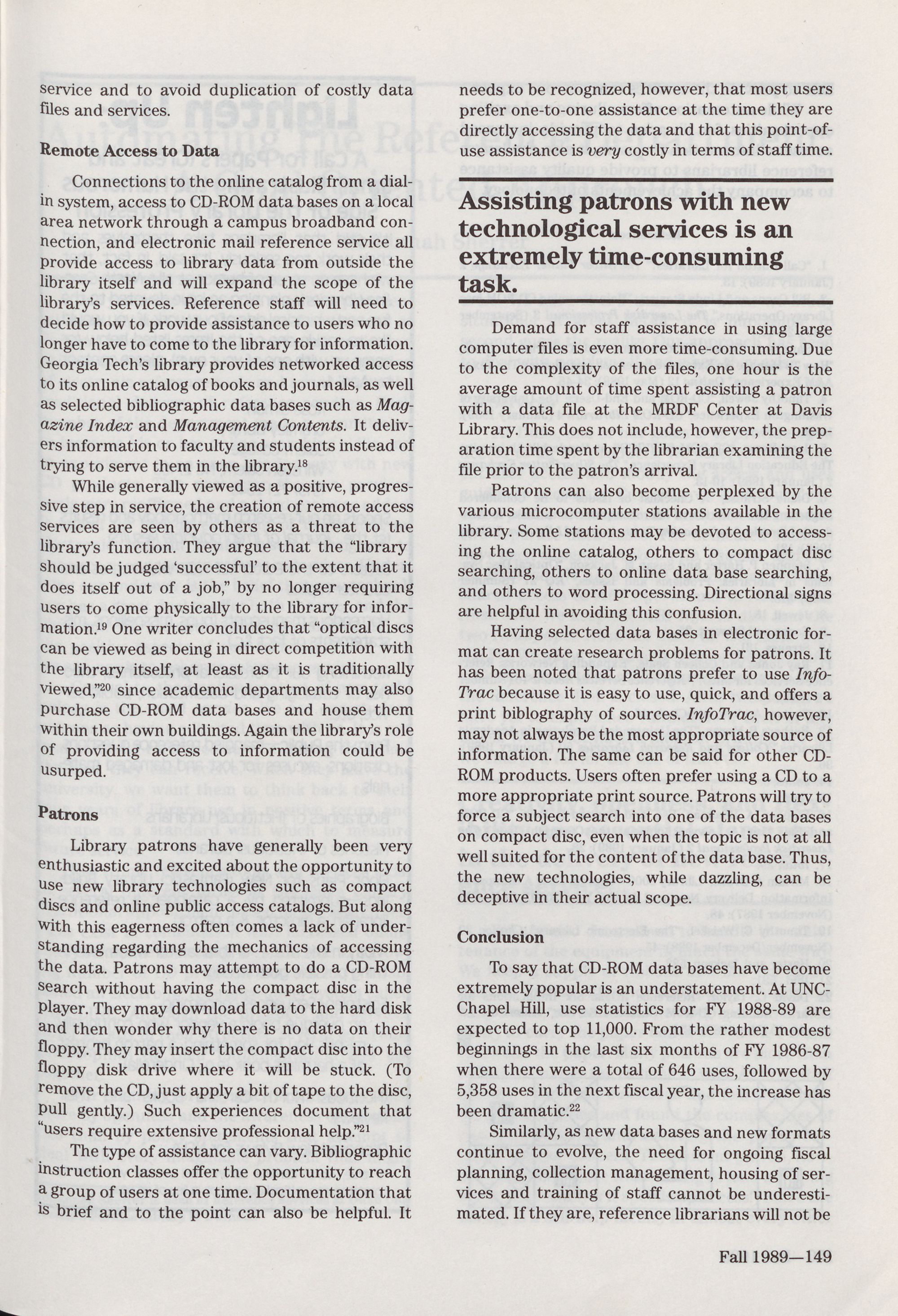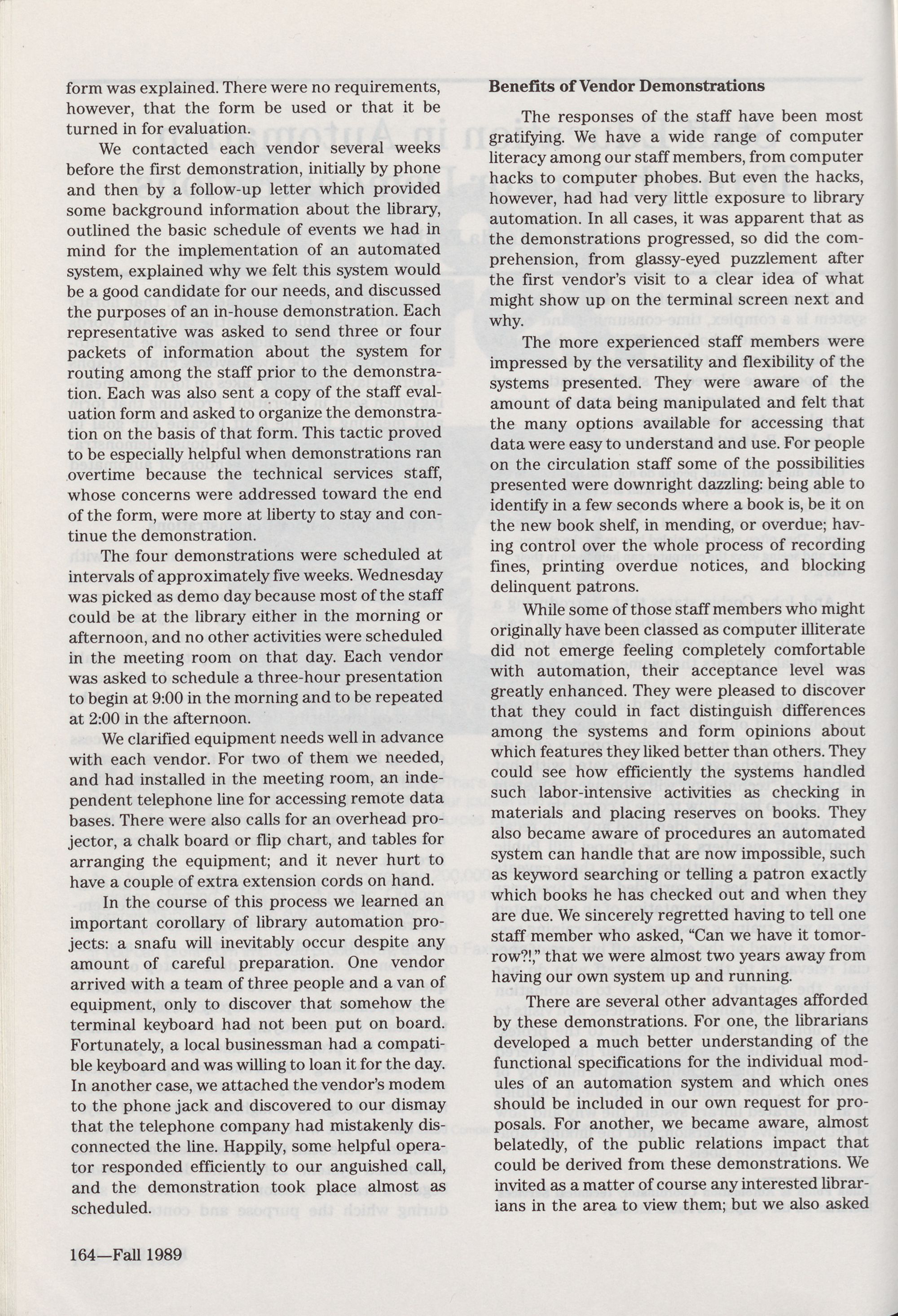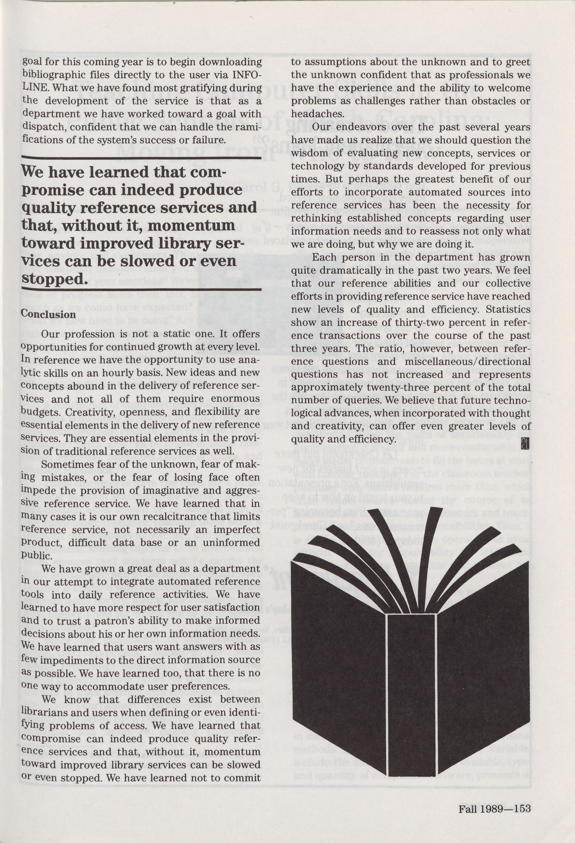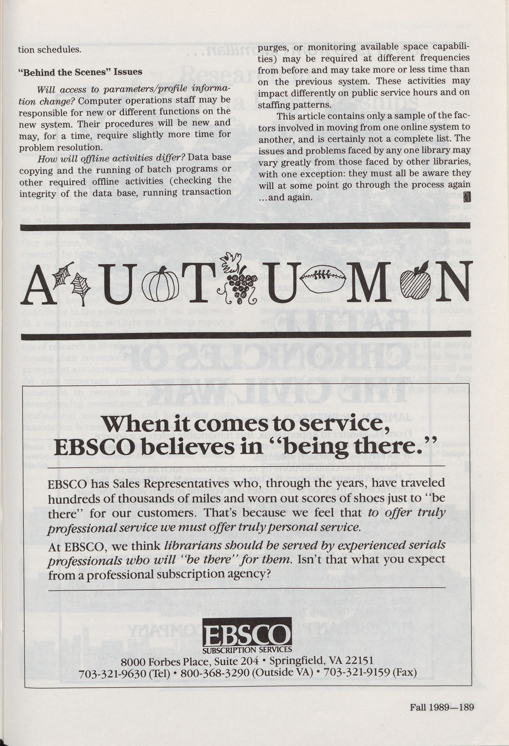 Cover: Johannah Sherrer, oAutomating the Reference Depart- Advertisers: BroadfootTs, 167; Brodart, 138; Checkpoint, 154;