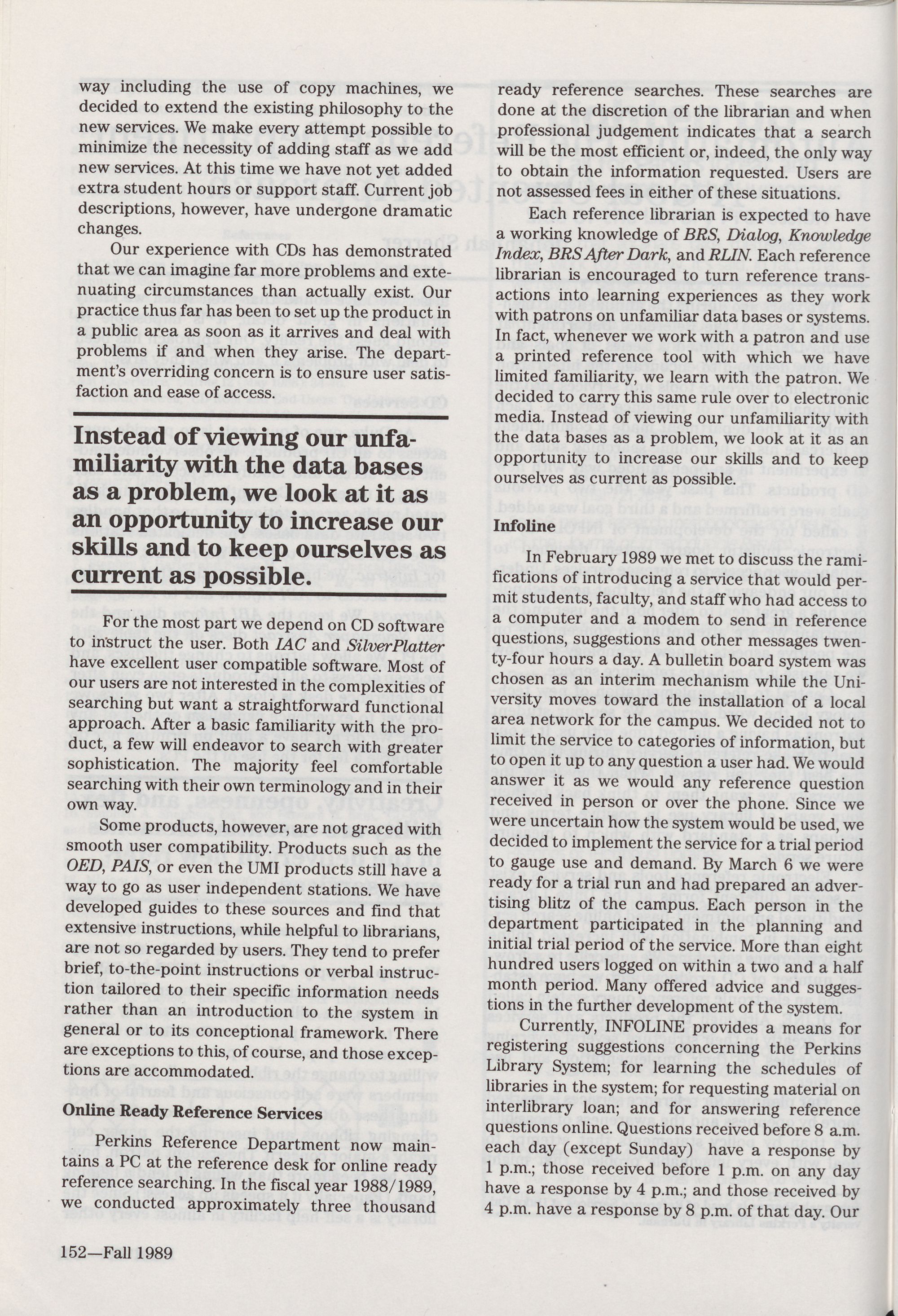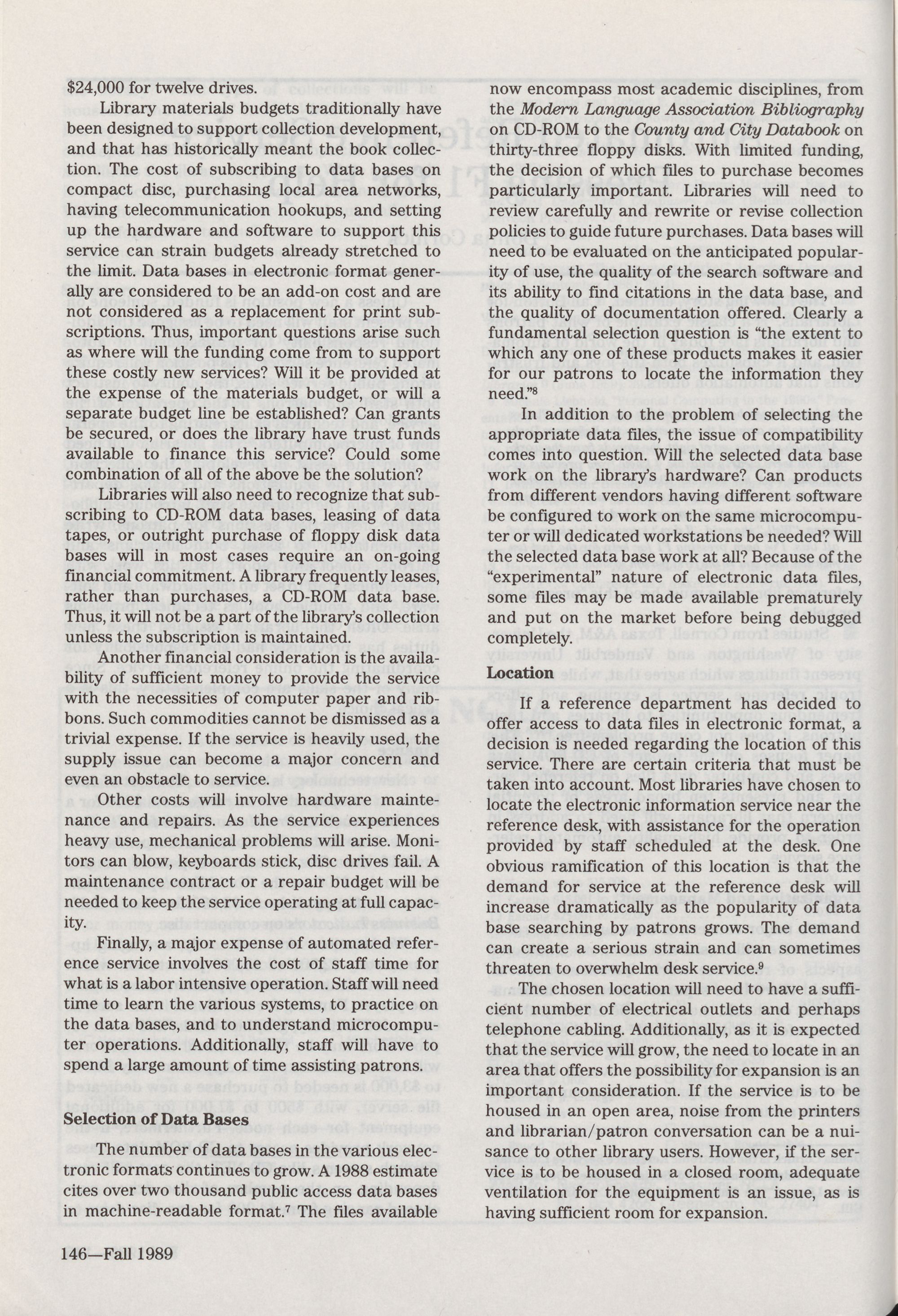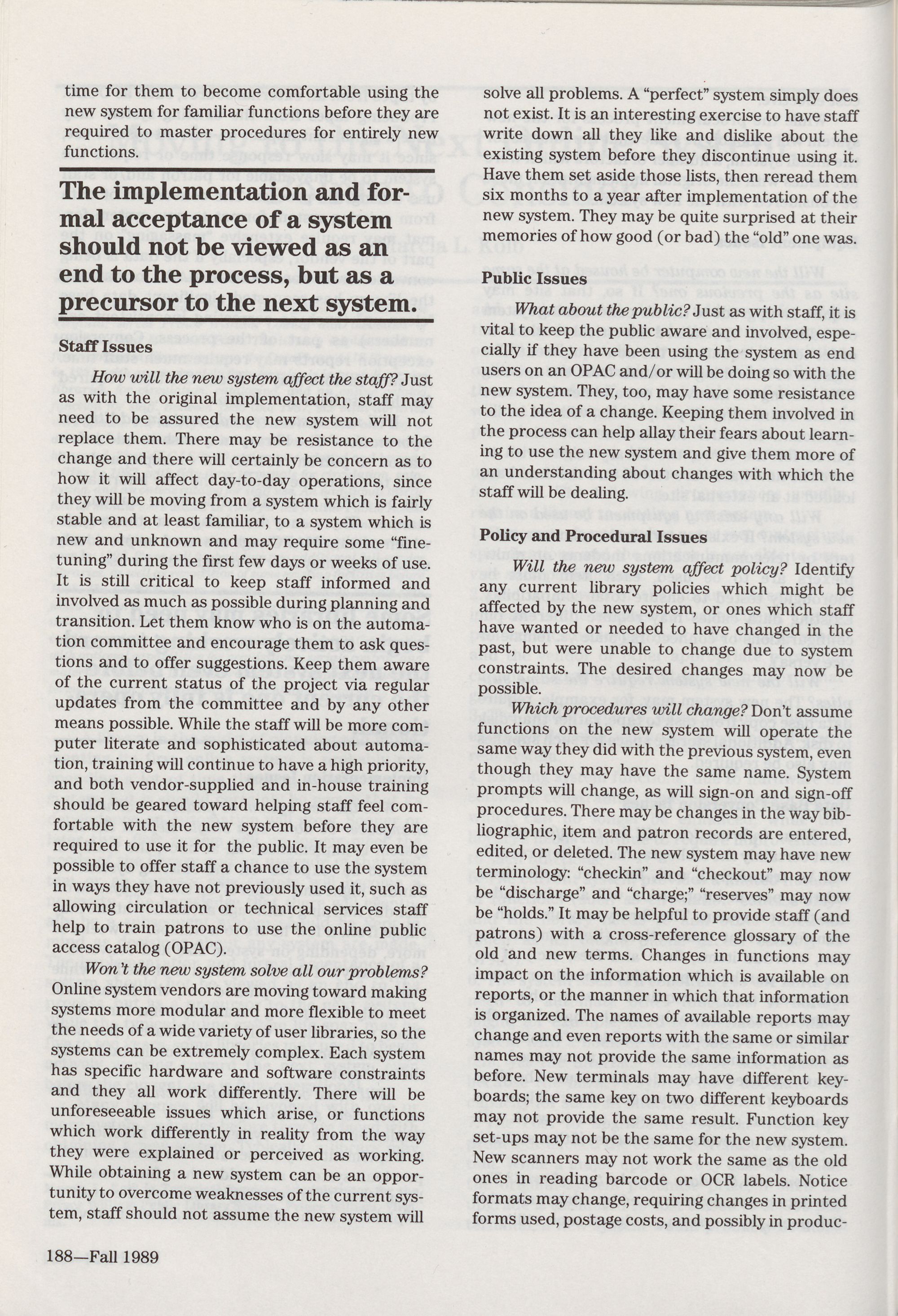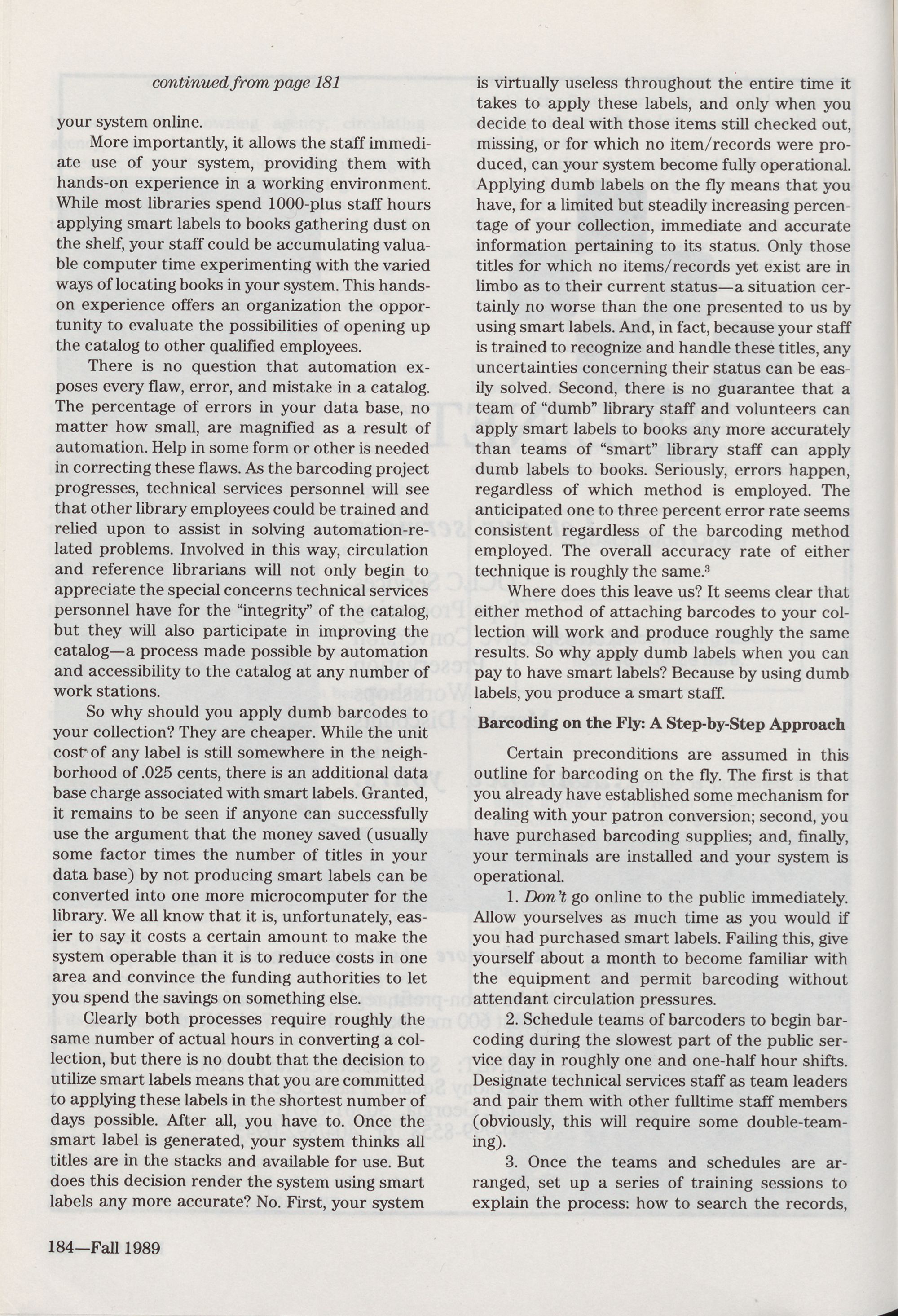 Cover: Johannah Sherrer, oAutomating the Reference Depart- Advertisers: BroadfootTs, 167; Brodart, 138; Checkpoint, 154;