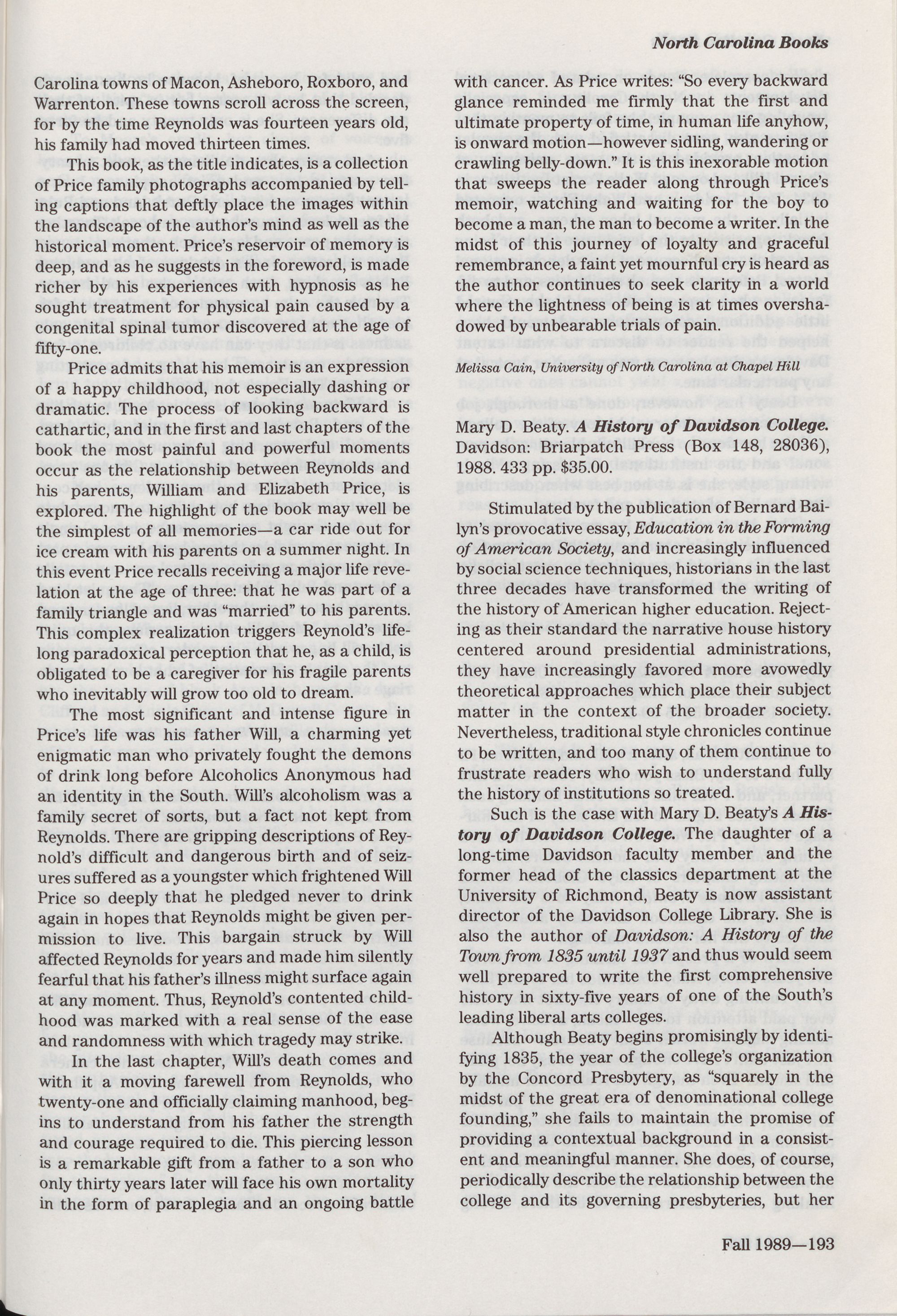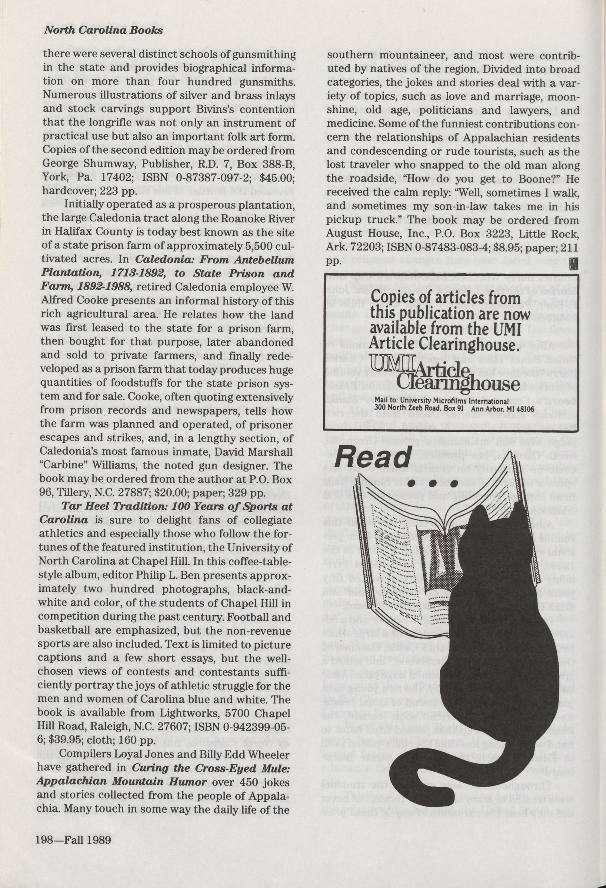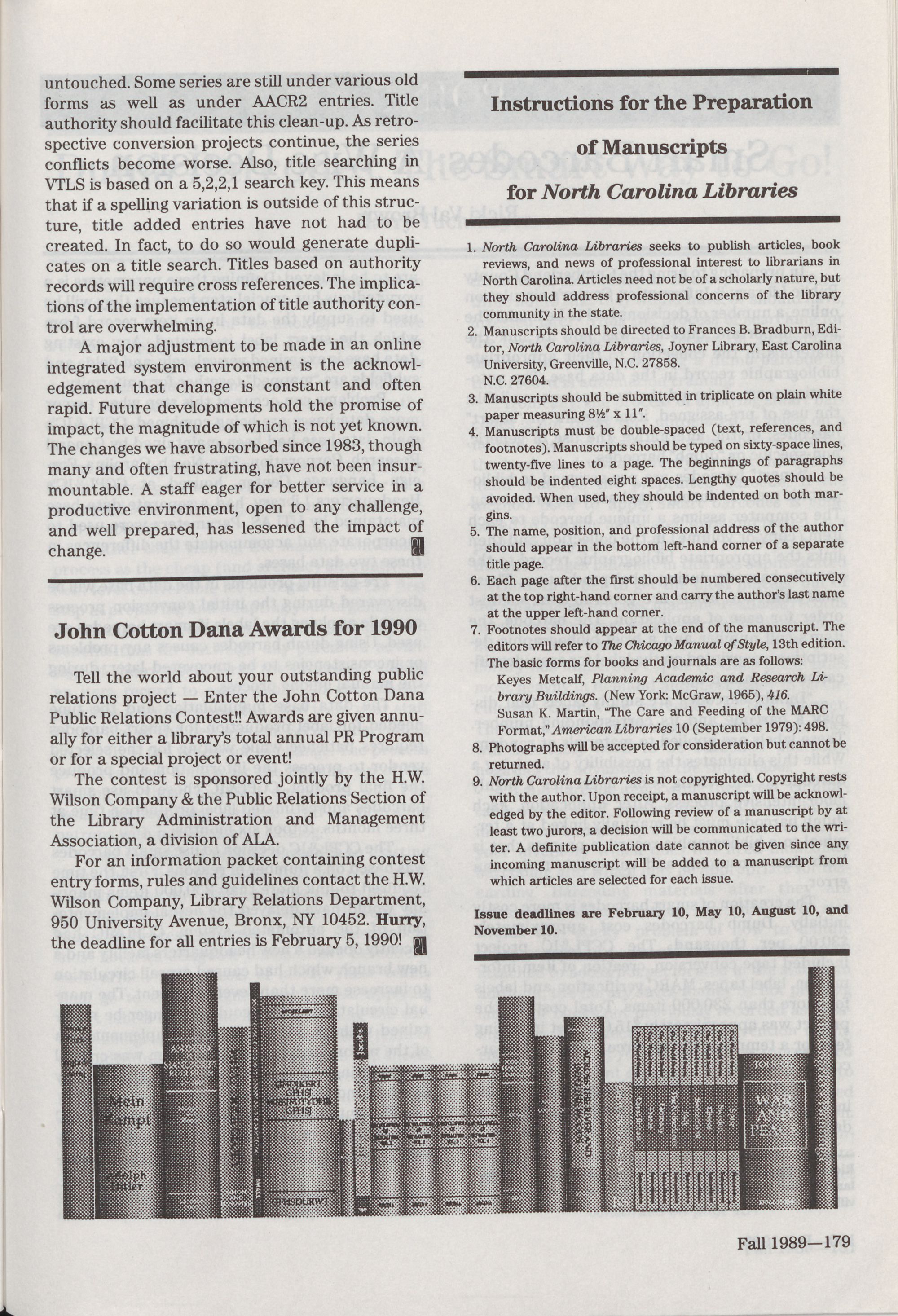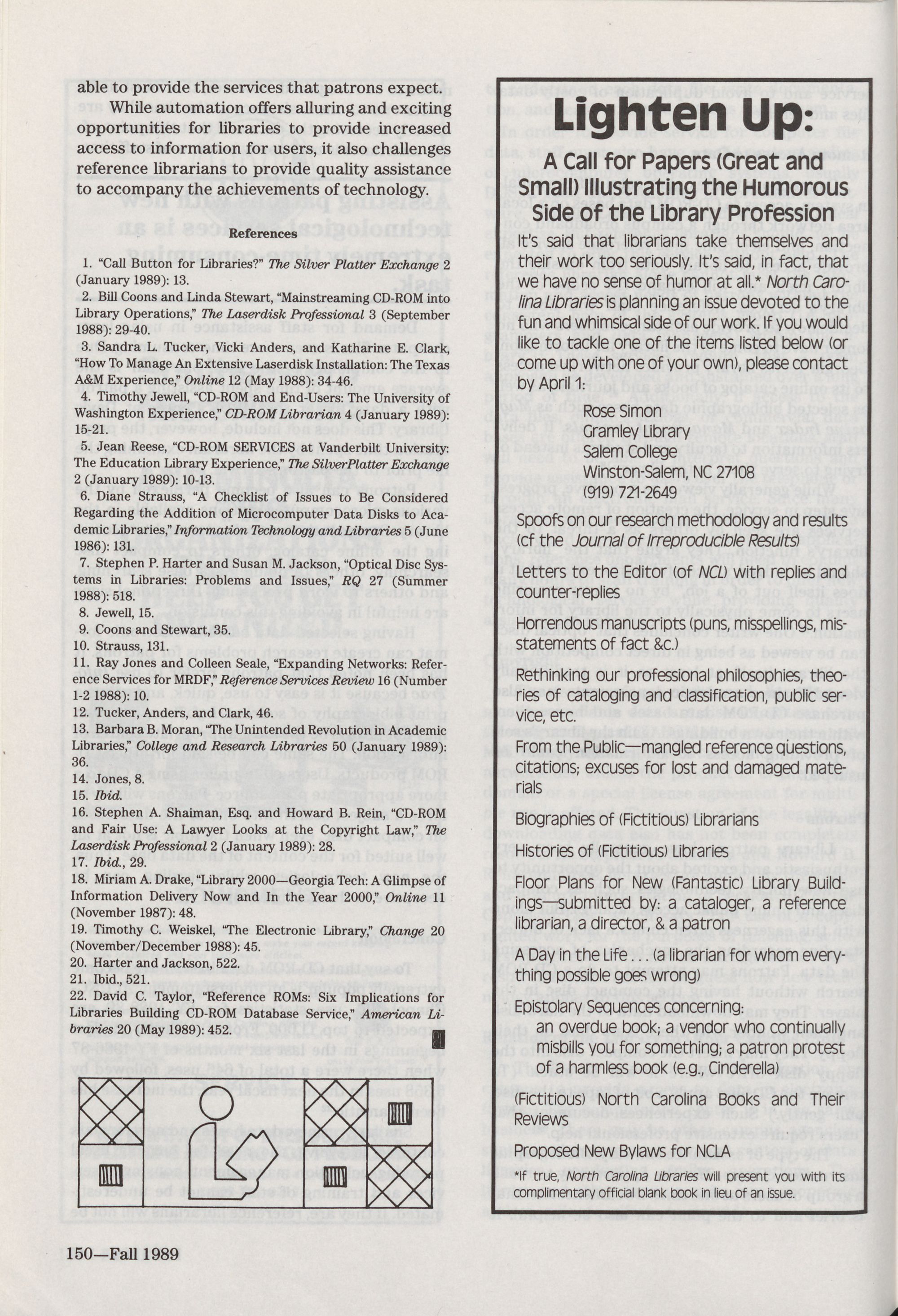 copies are available through University Microfilms. North Carolina Libraries is indexed by Library