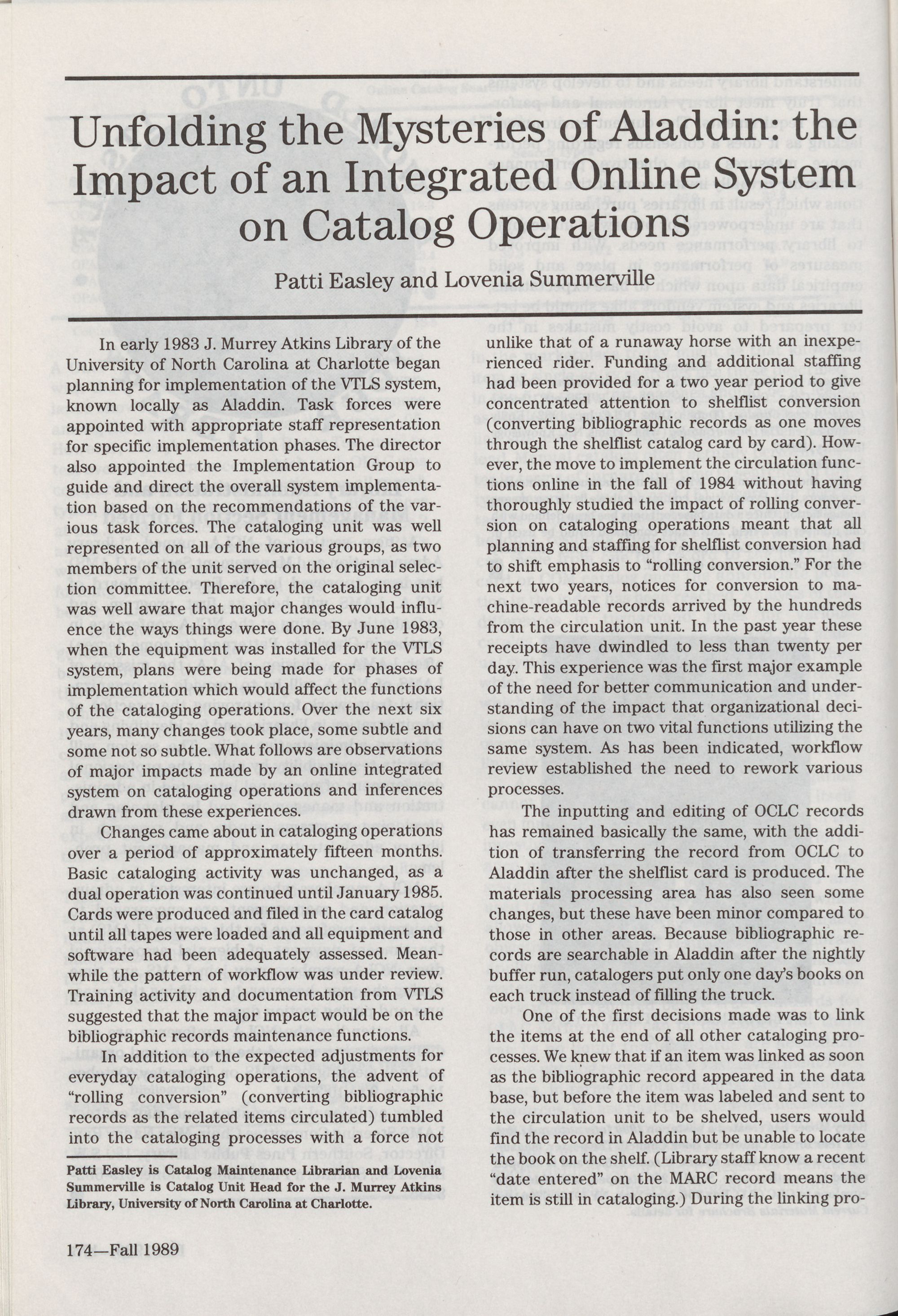 174 Unfolding the Mysteries of Aladdin: The Impact of an