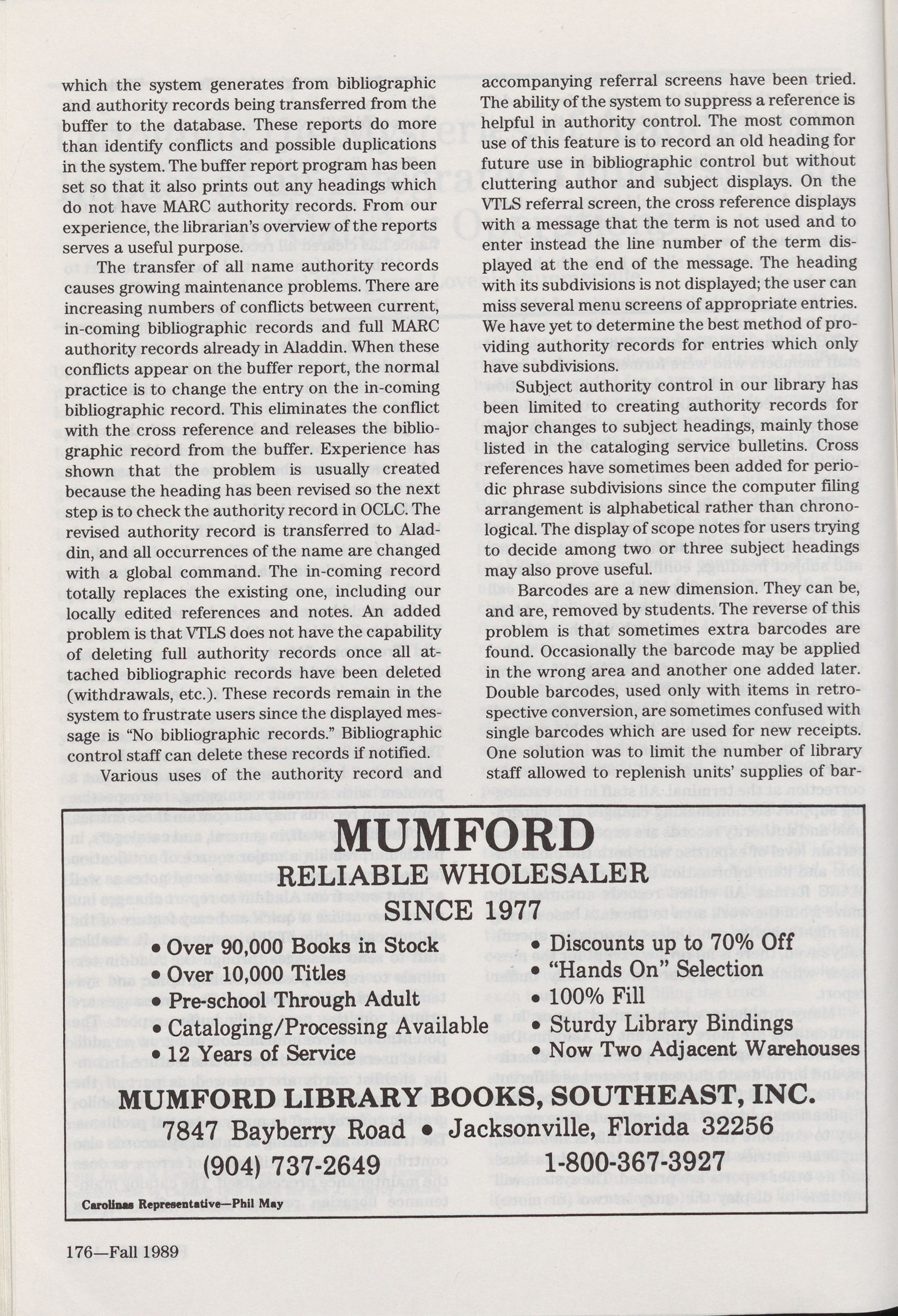 (Fall 1989): 151. 134; Mumford Books, 176; Quality Books, 157; Scarecrow Press,