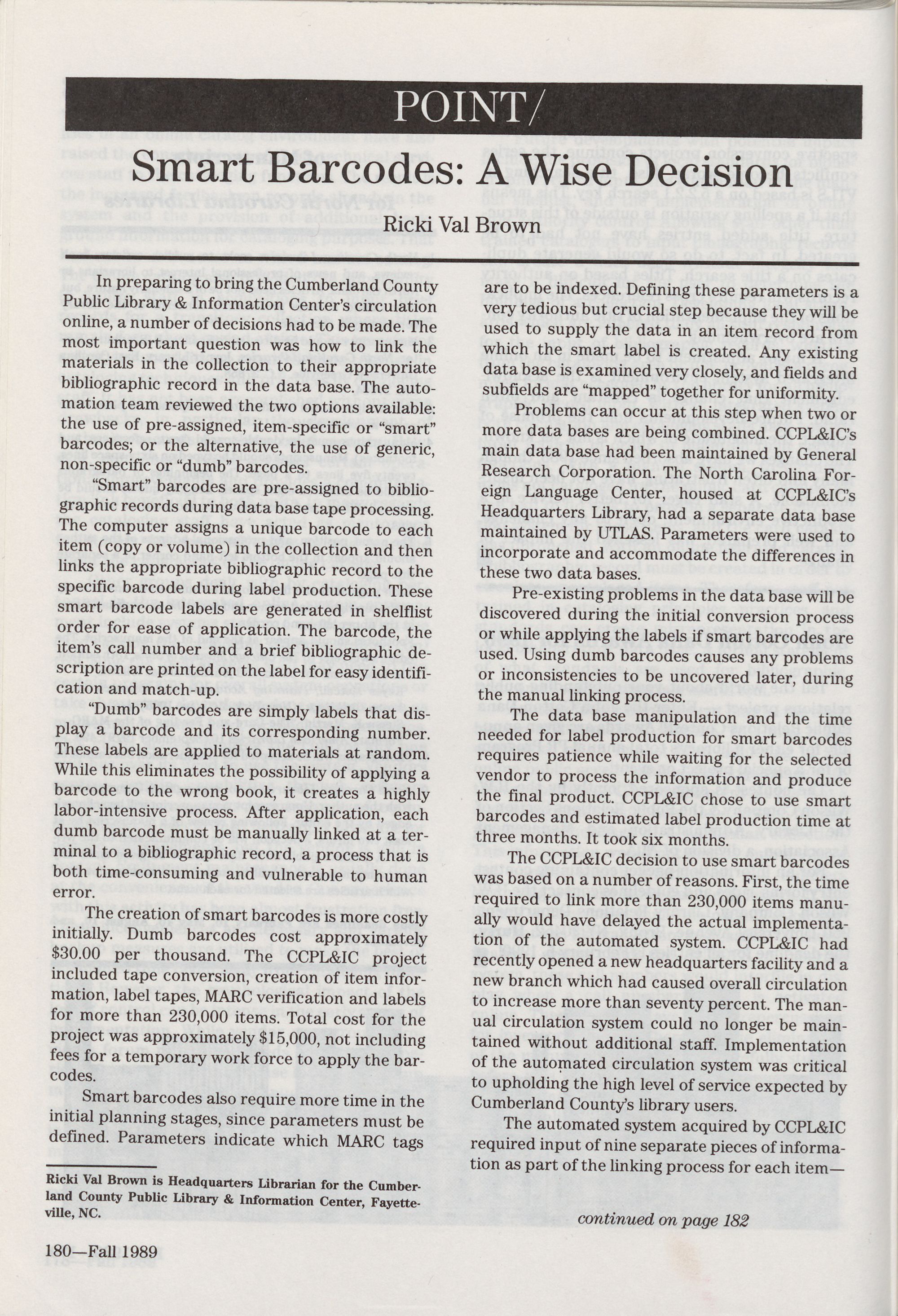 180 Smart Barcodes: A Wise Decision, Ricki Val Brown