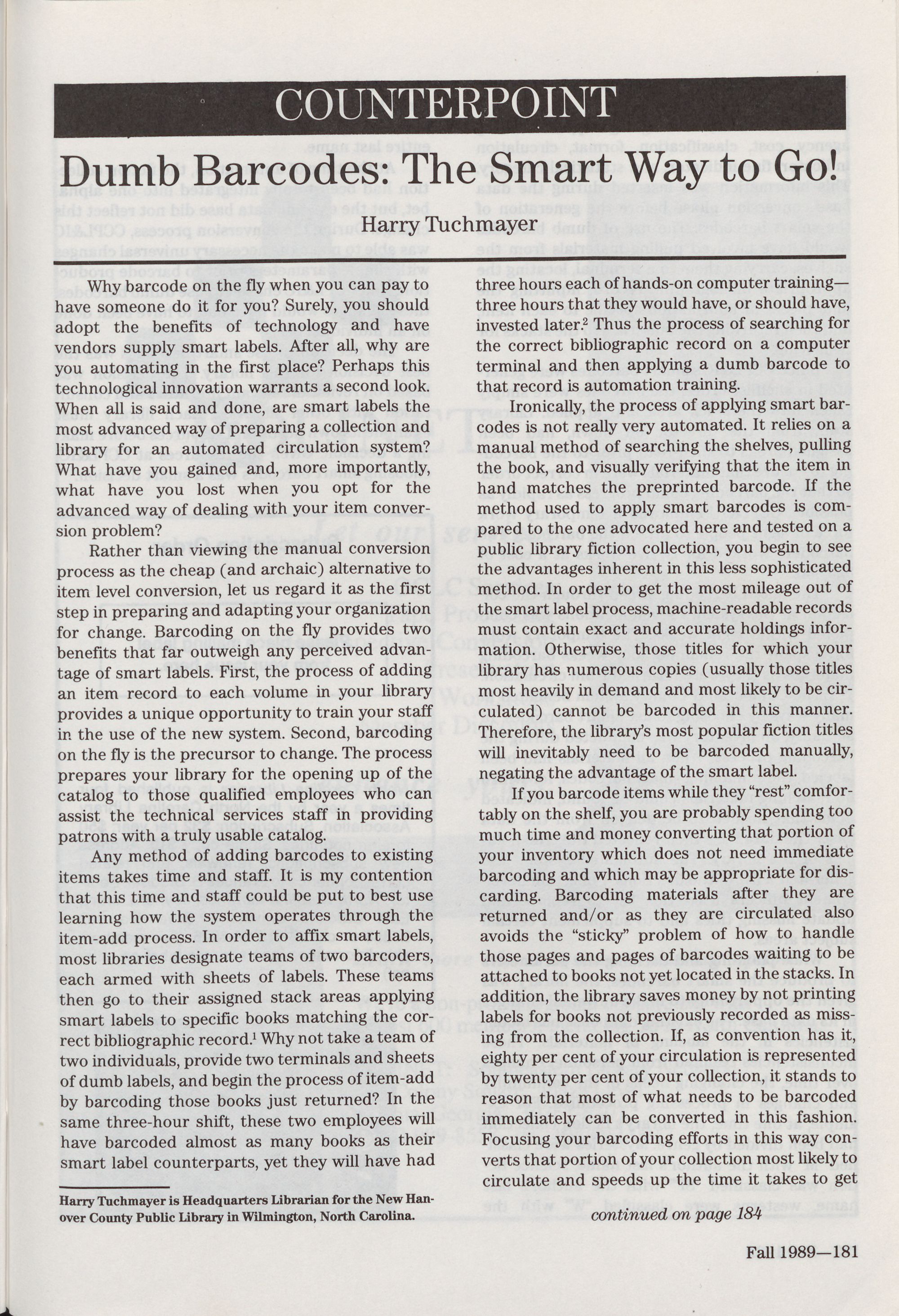 181 Dumb Barcodes: The Smart Way to Go, Harry Tuchmayer