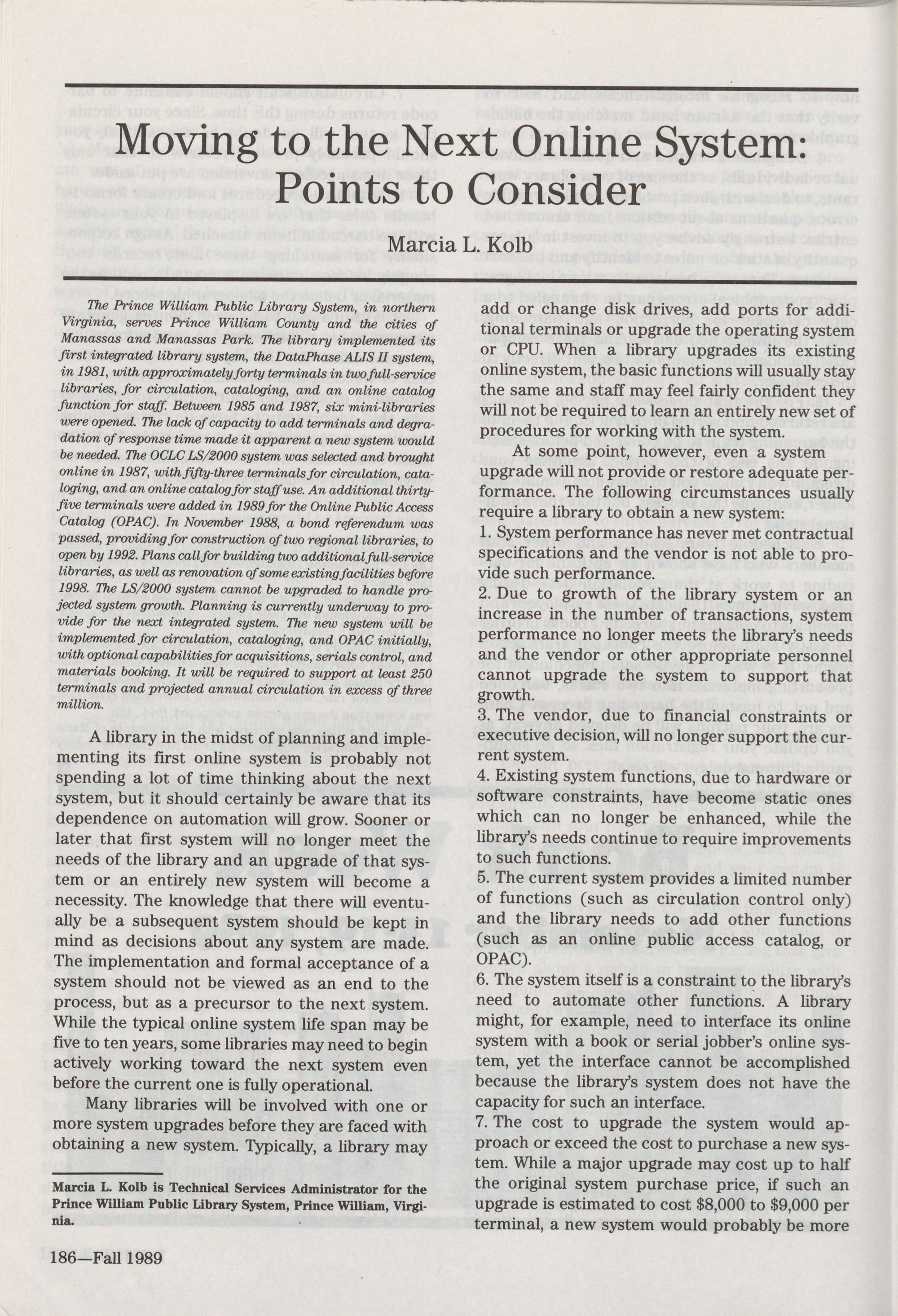 PART TWO: LIBRARY ONLINE SYSTEMS