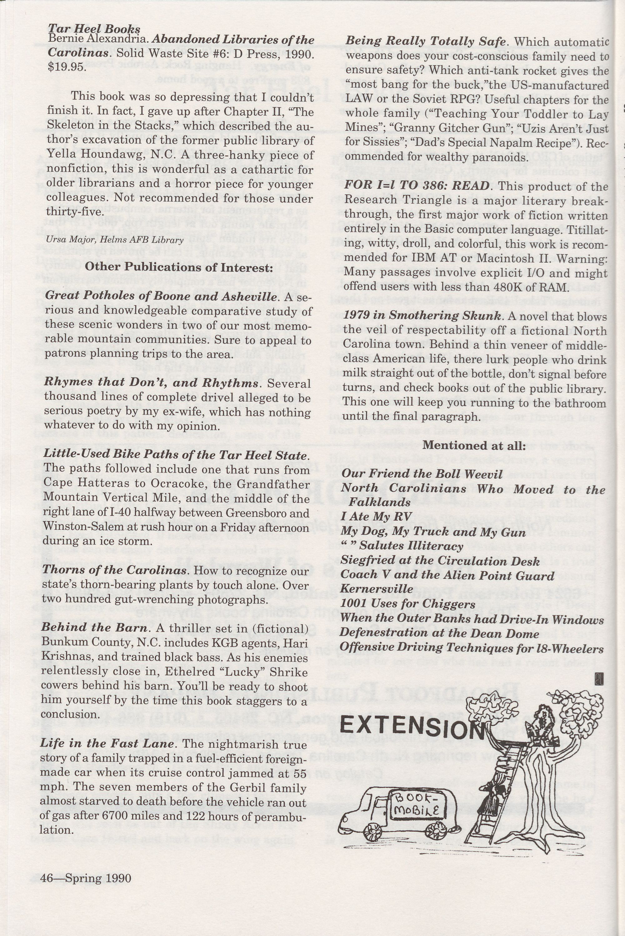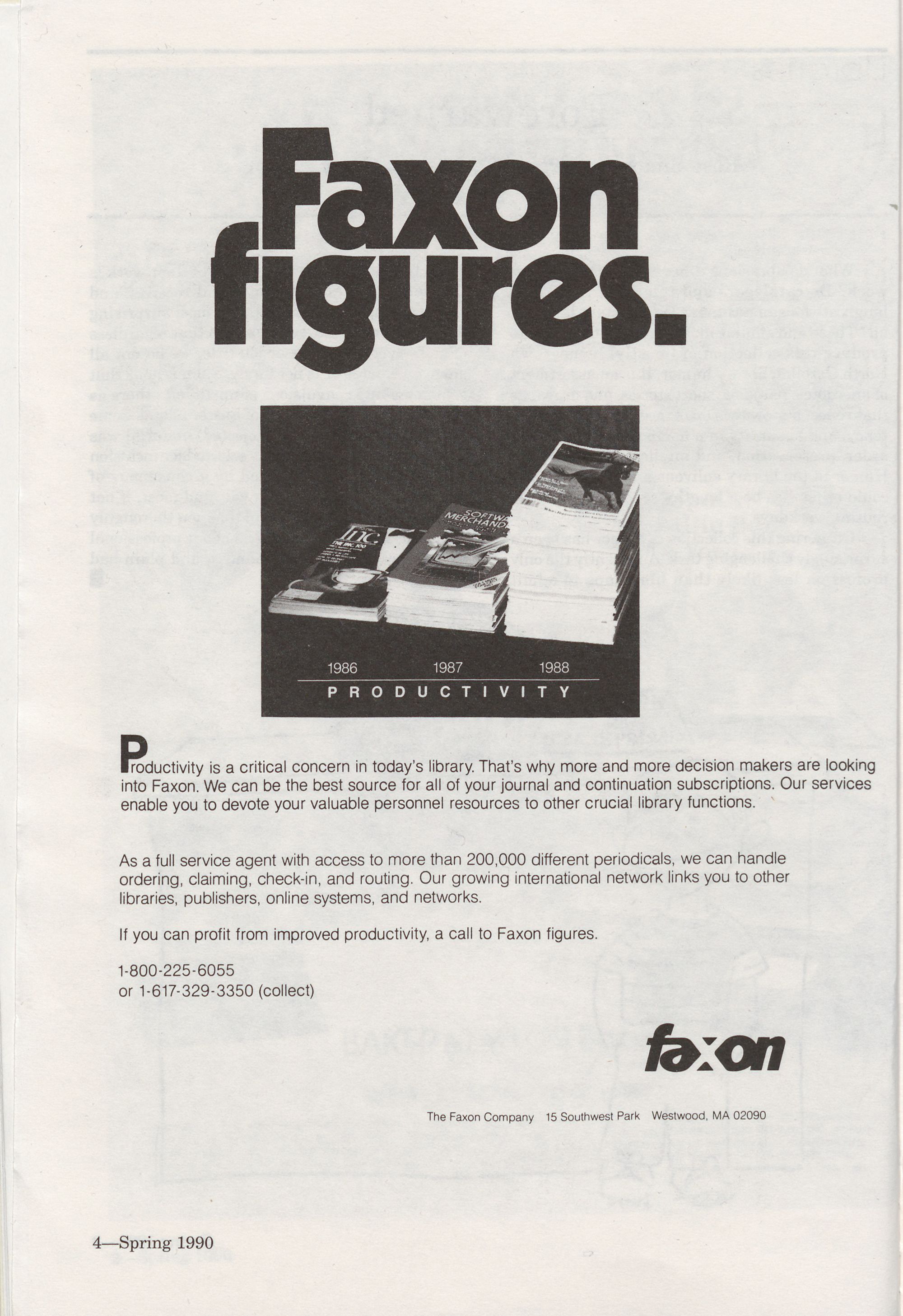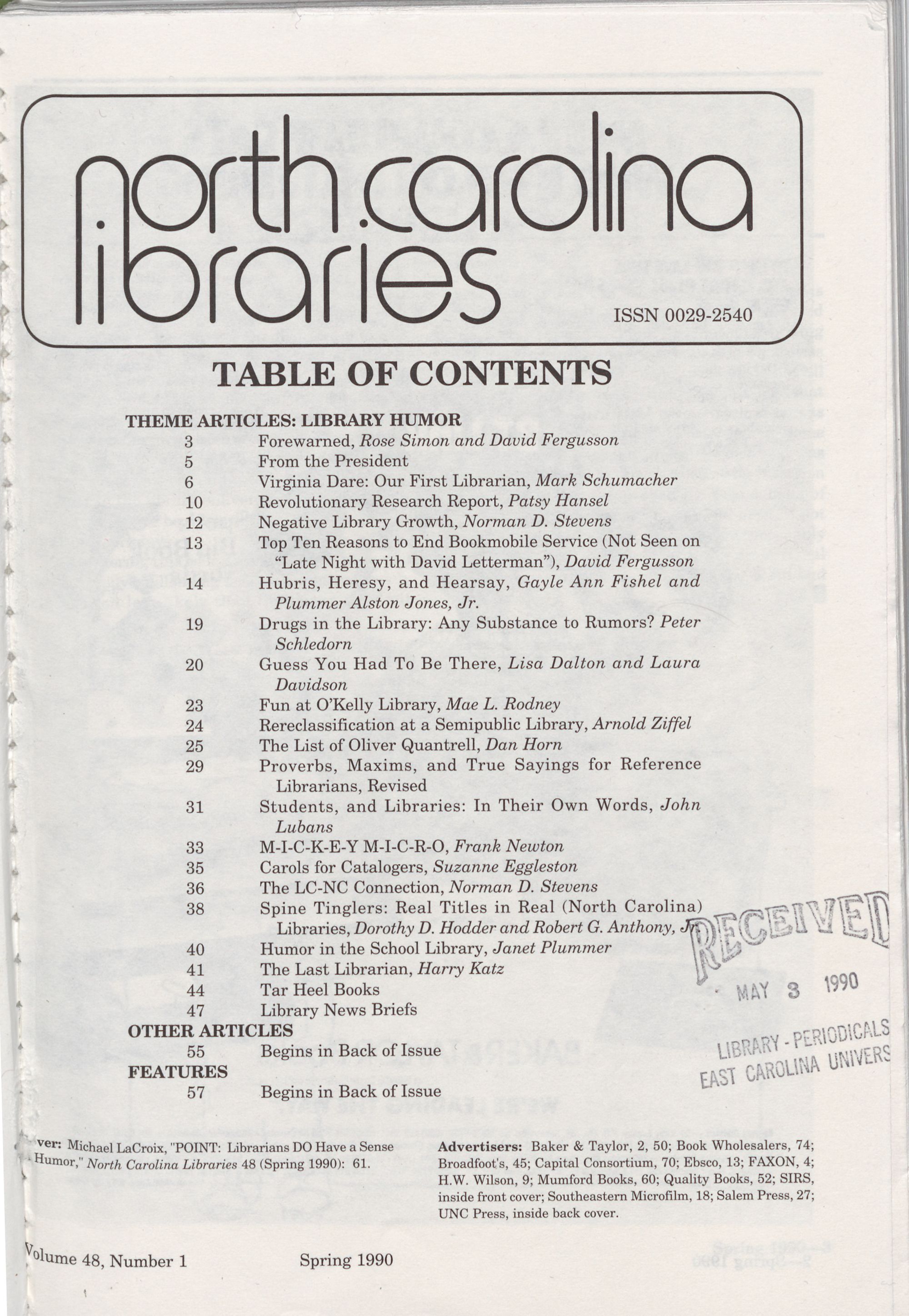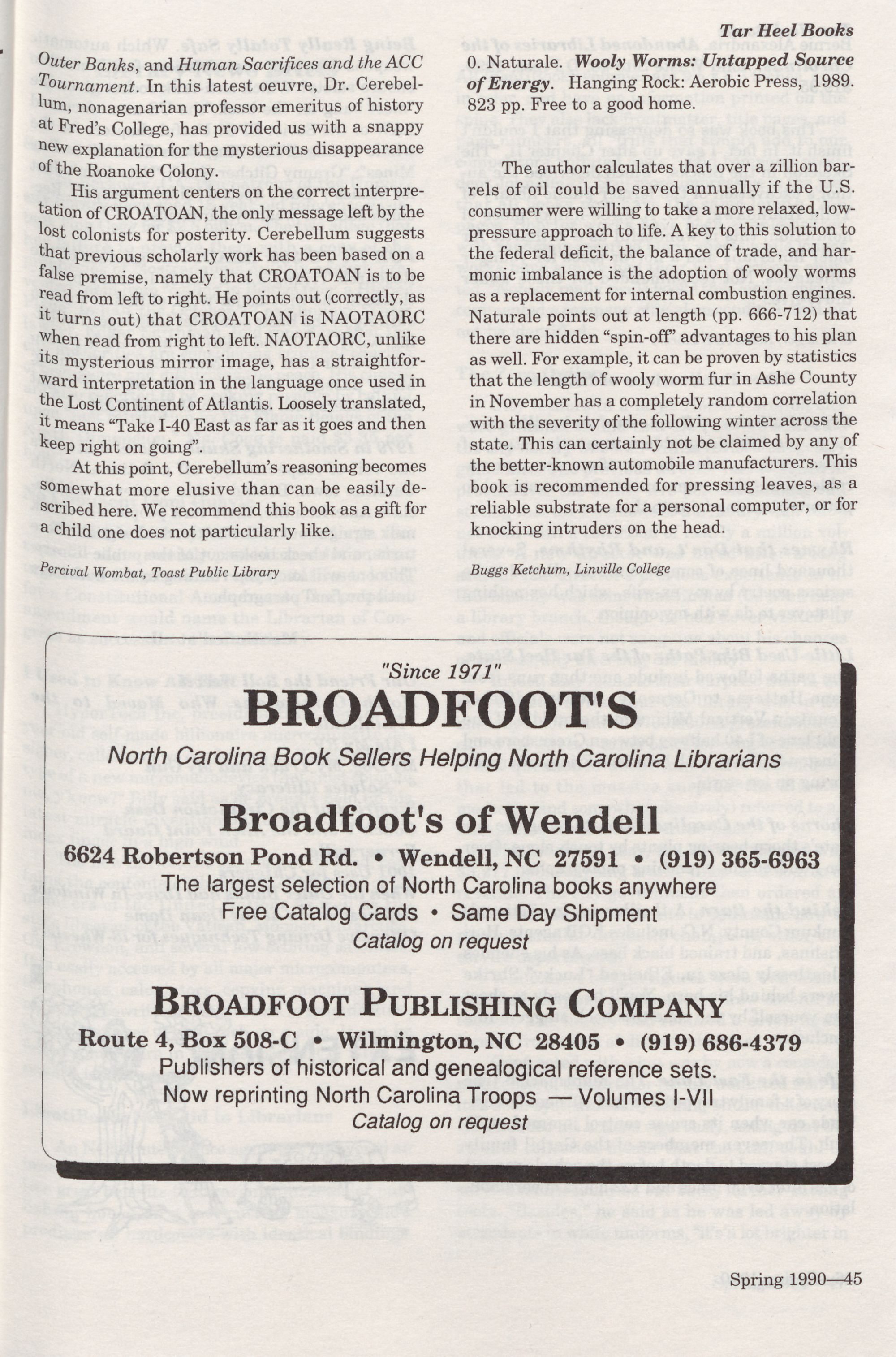 *ootumor," North Carolina Libraries 48 (Spring 1990): 61. Broadfoot's, 45; Capital Consortium, 70; Ebsco, 13; FAXON, 4;