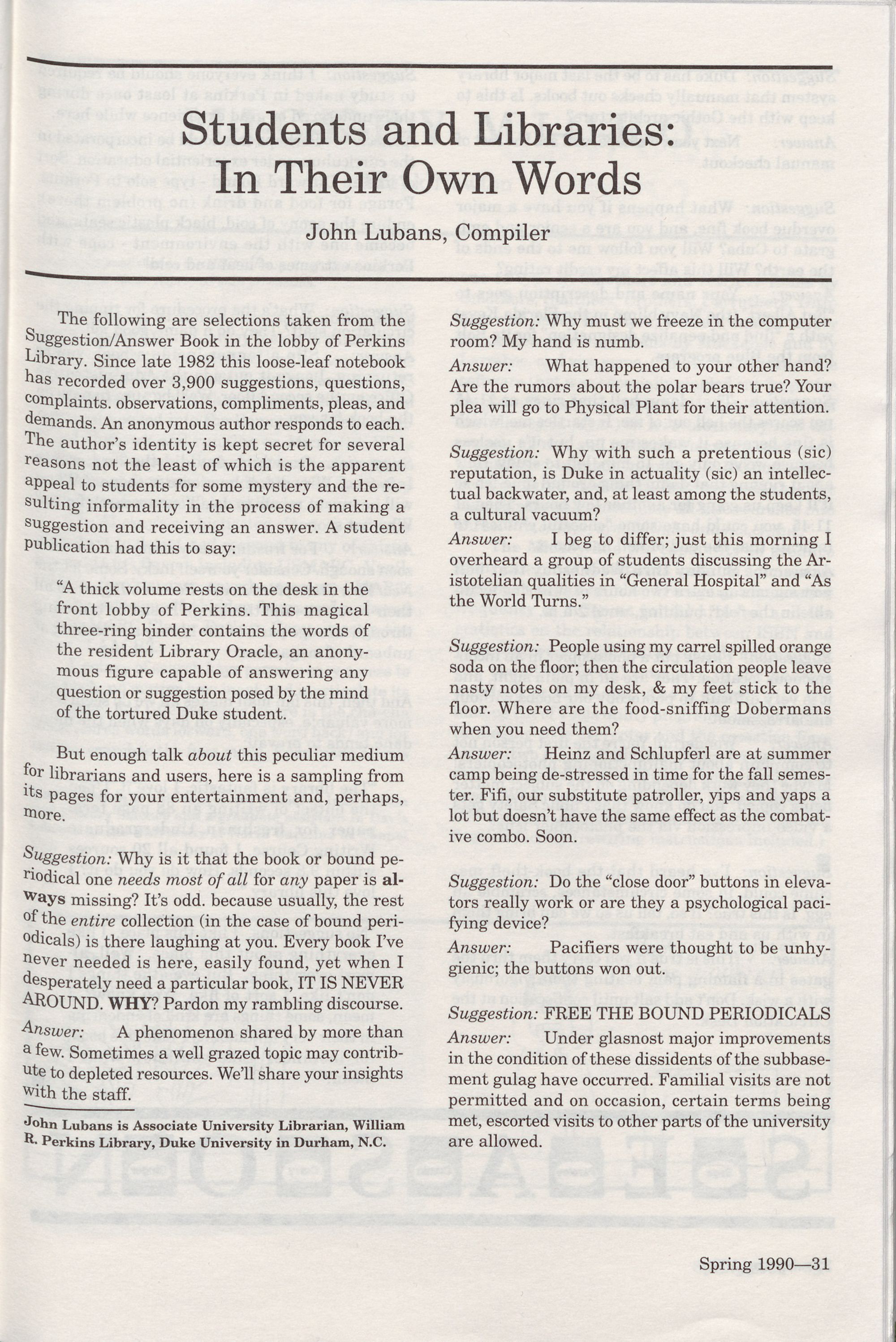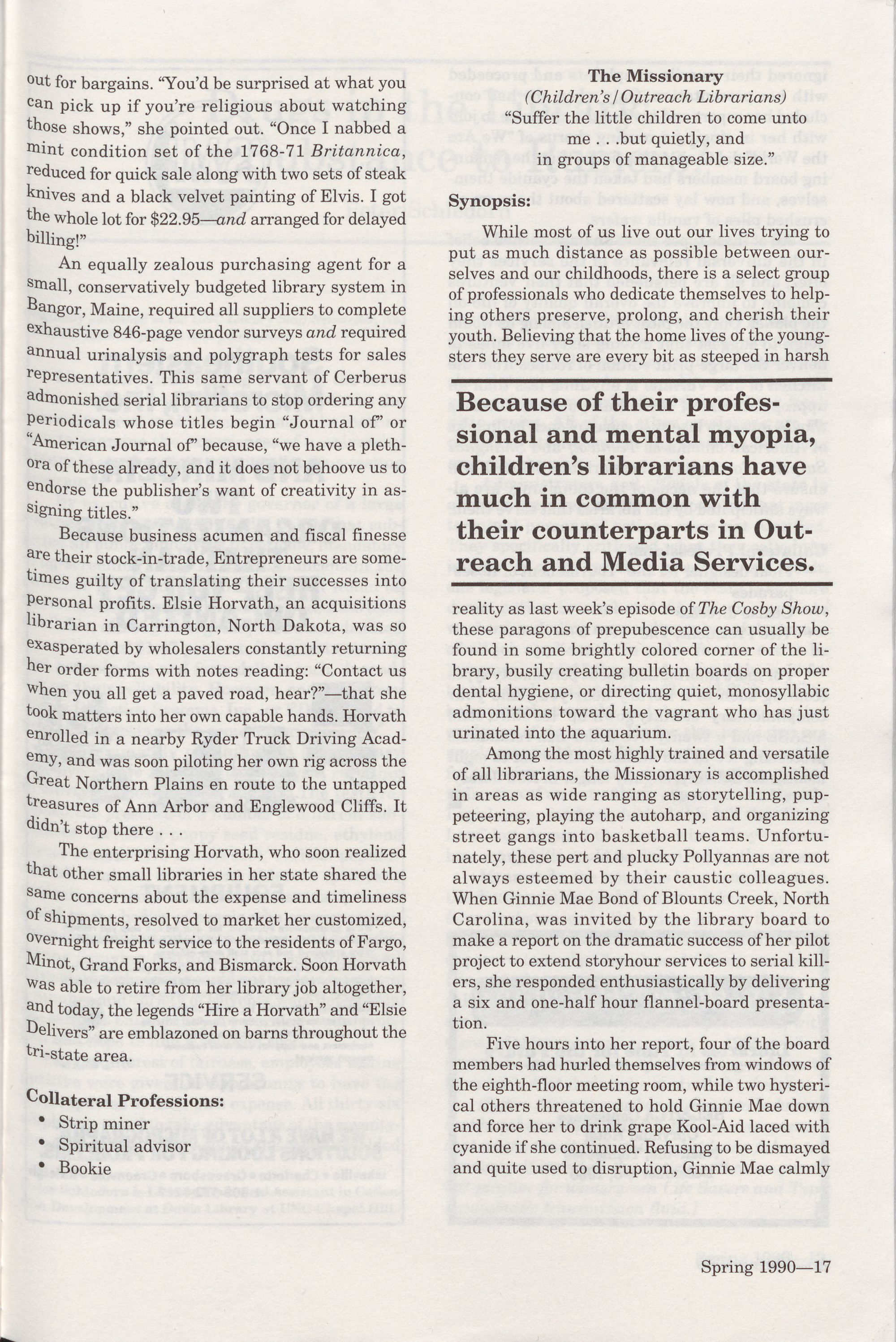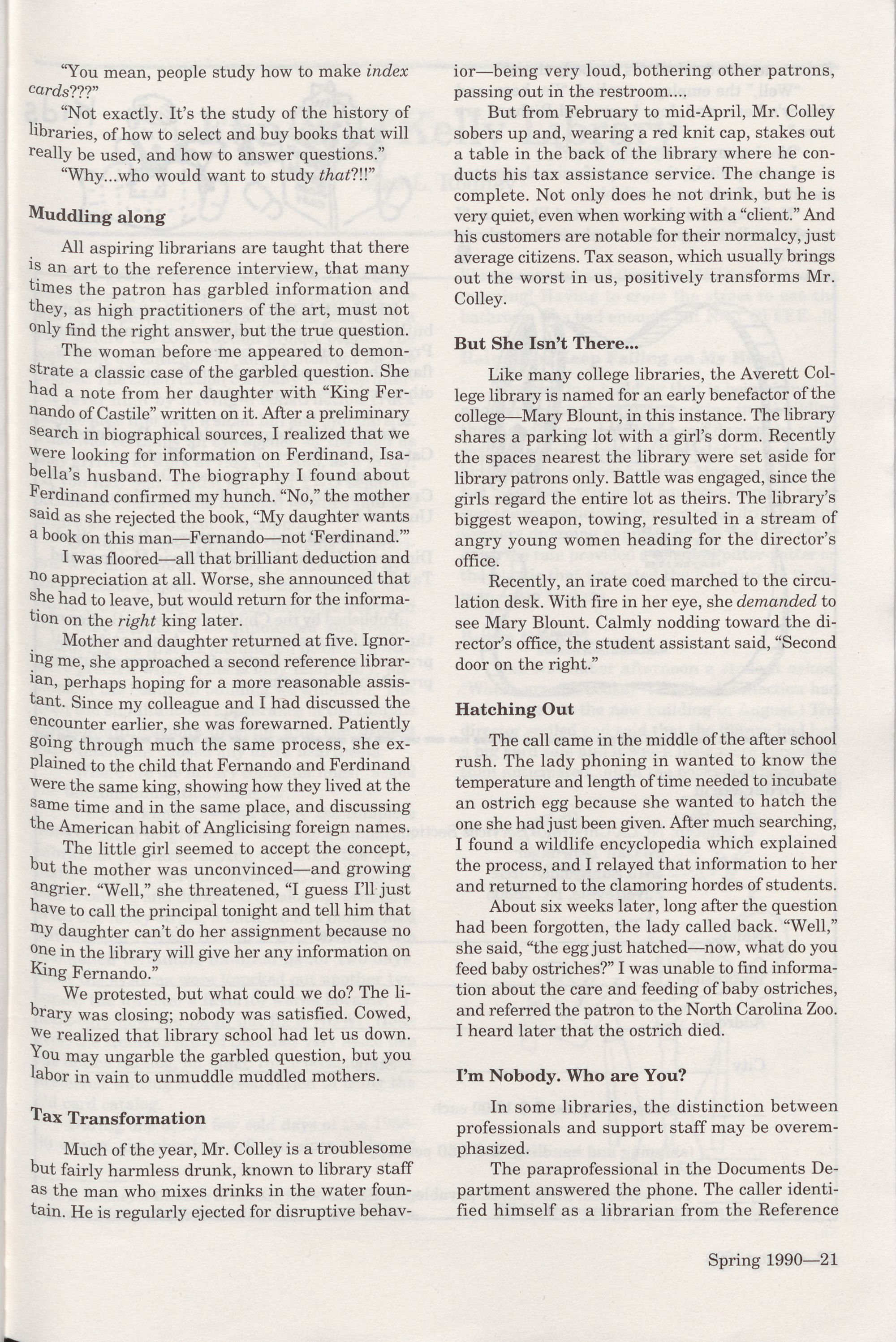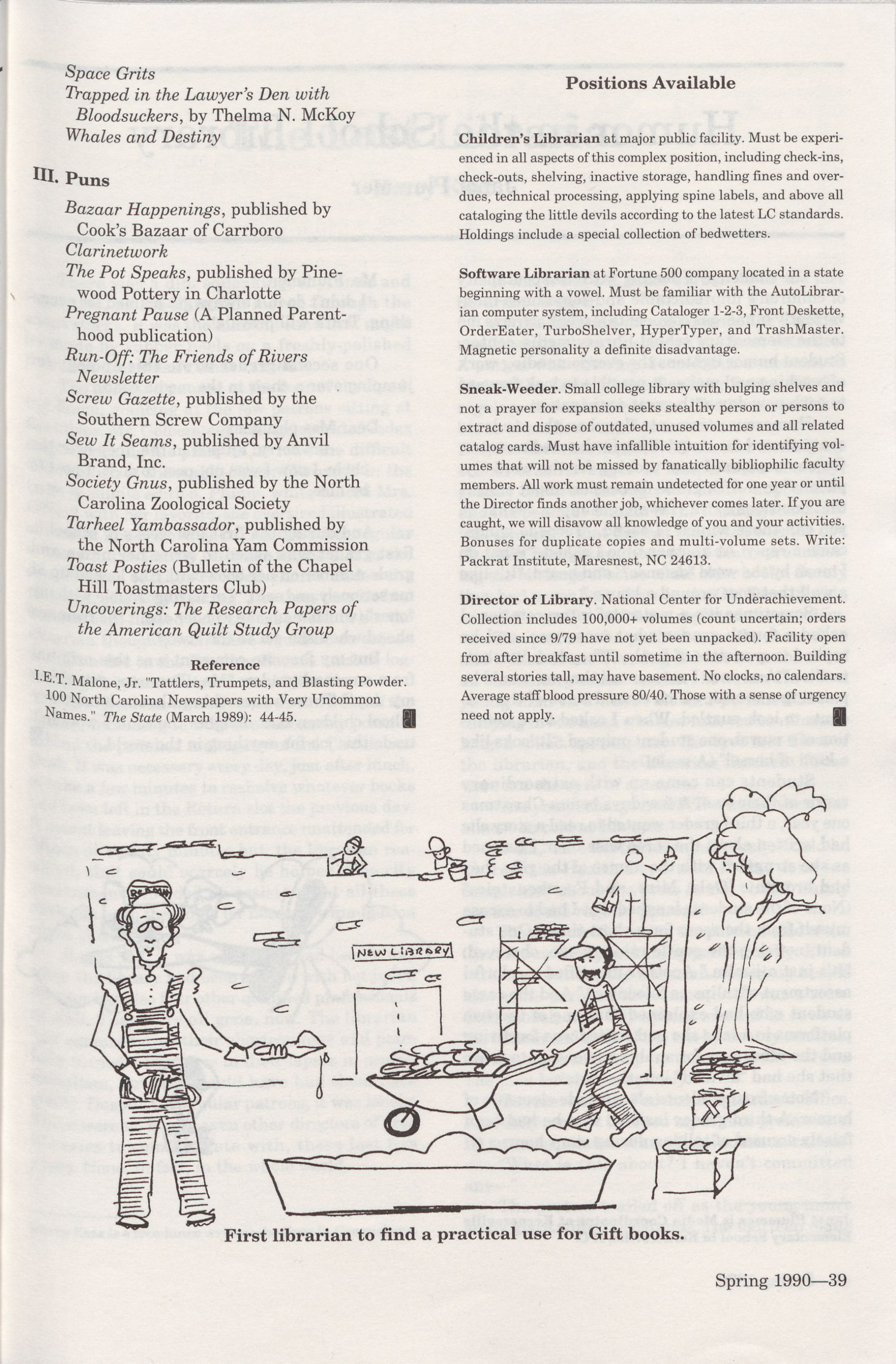 *ootumor," North Carolina Libraries 48 (Spring 1990): 61. Broadfoot's, 45; Capital Consortium, 70; Ebsco, 13; FAXON, 4;