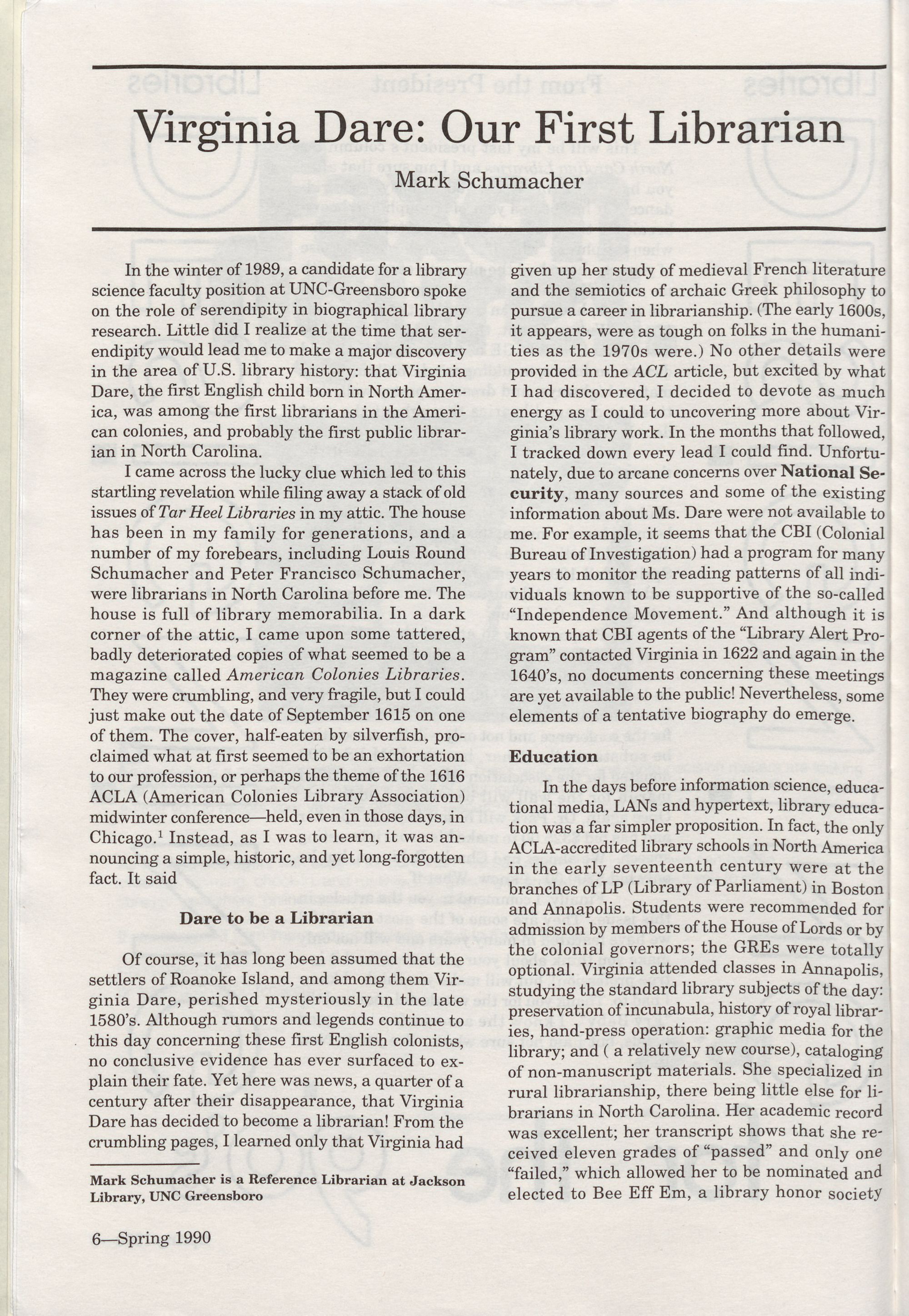 6 Virginia Dare: Our First Librarian, Mark Schumacher