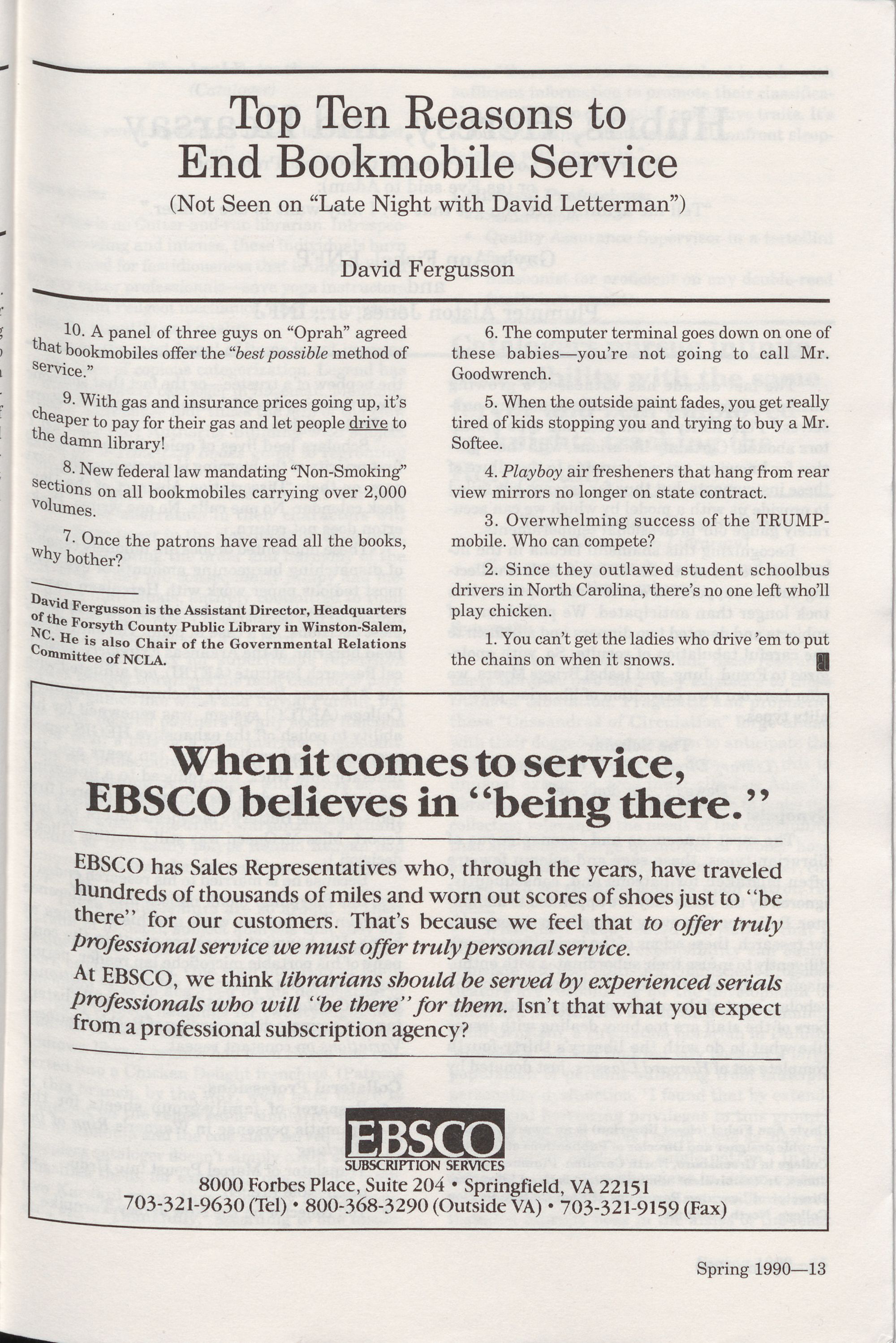 13 Top Ten Reasons to End Bookmobile Service (Not Seen on