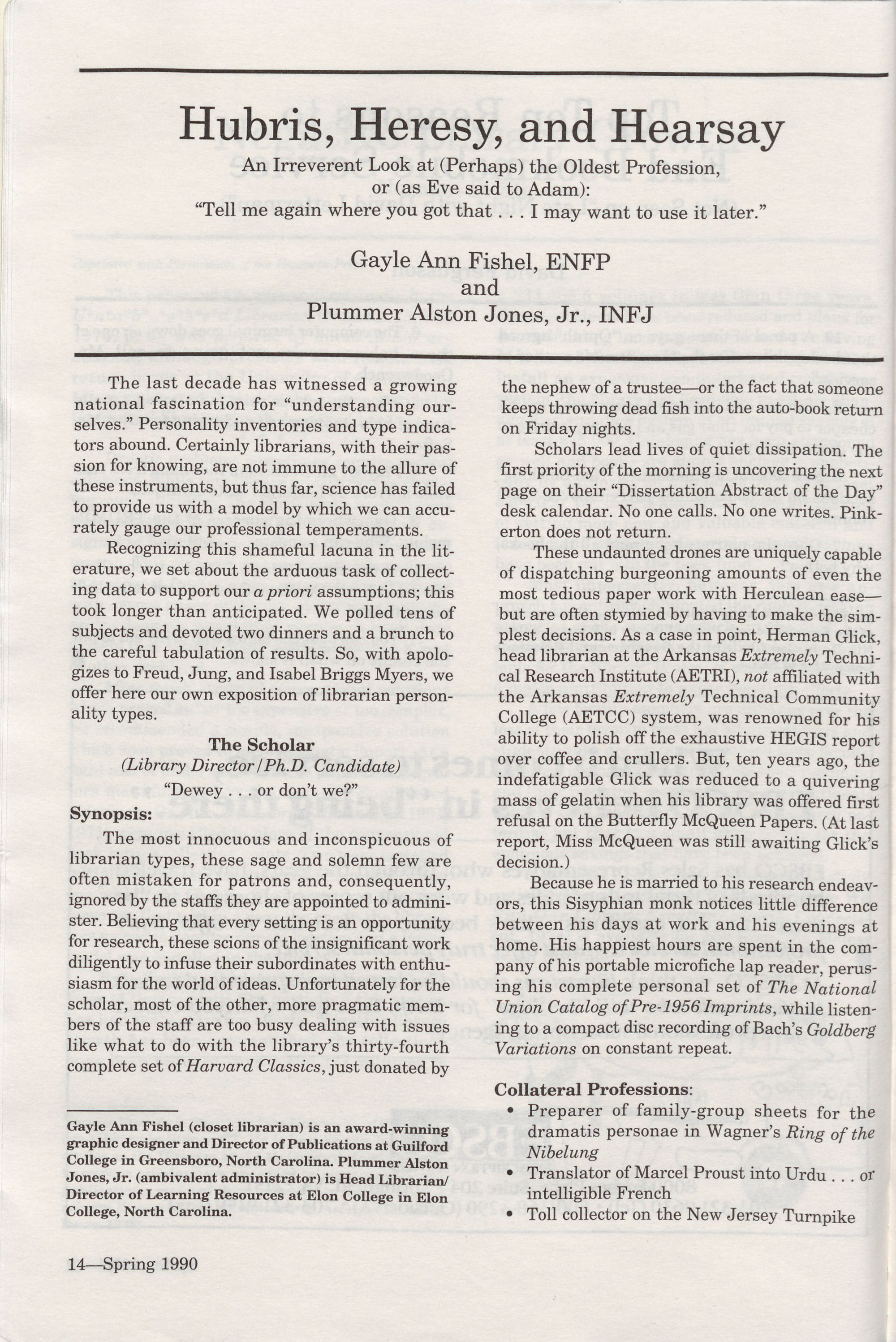 14 Hubris, Heresy, and Hearsay, Gayle Ann Fishel and