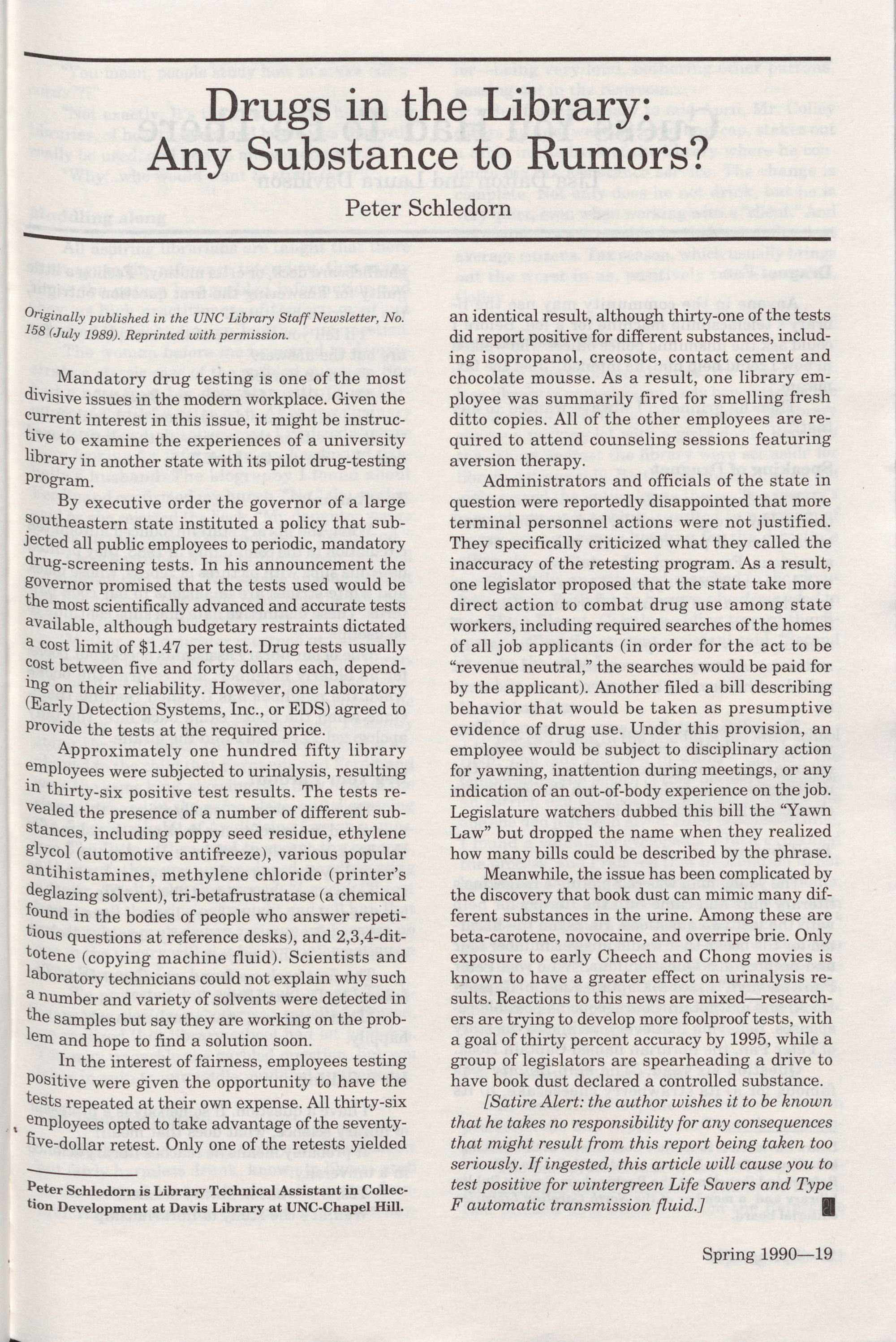 tS) Drugs in the Library: Any Substance to Rumors? Peter
