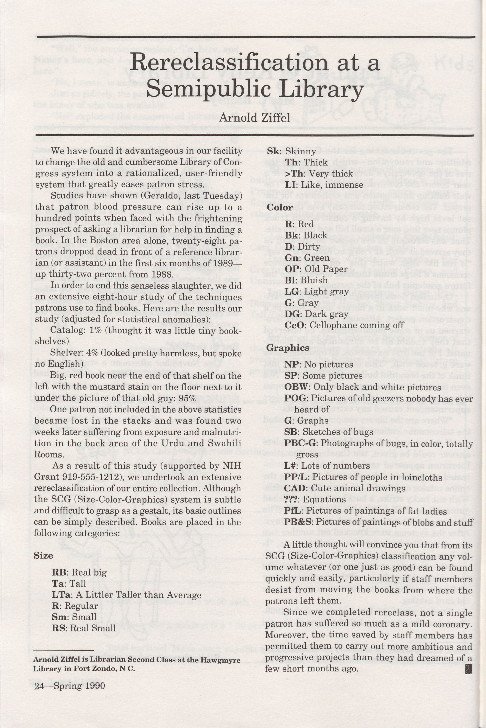 24 Rereclassification at a Semipublic Library, Arnold Ziffel