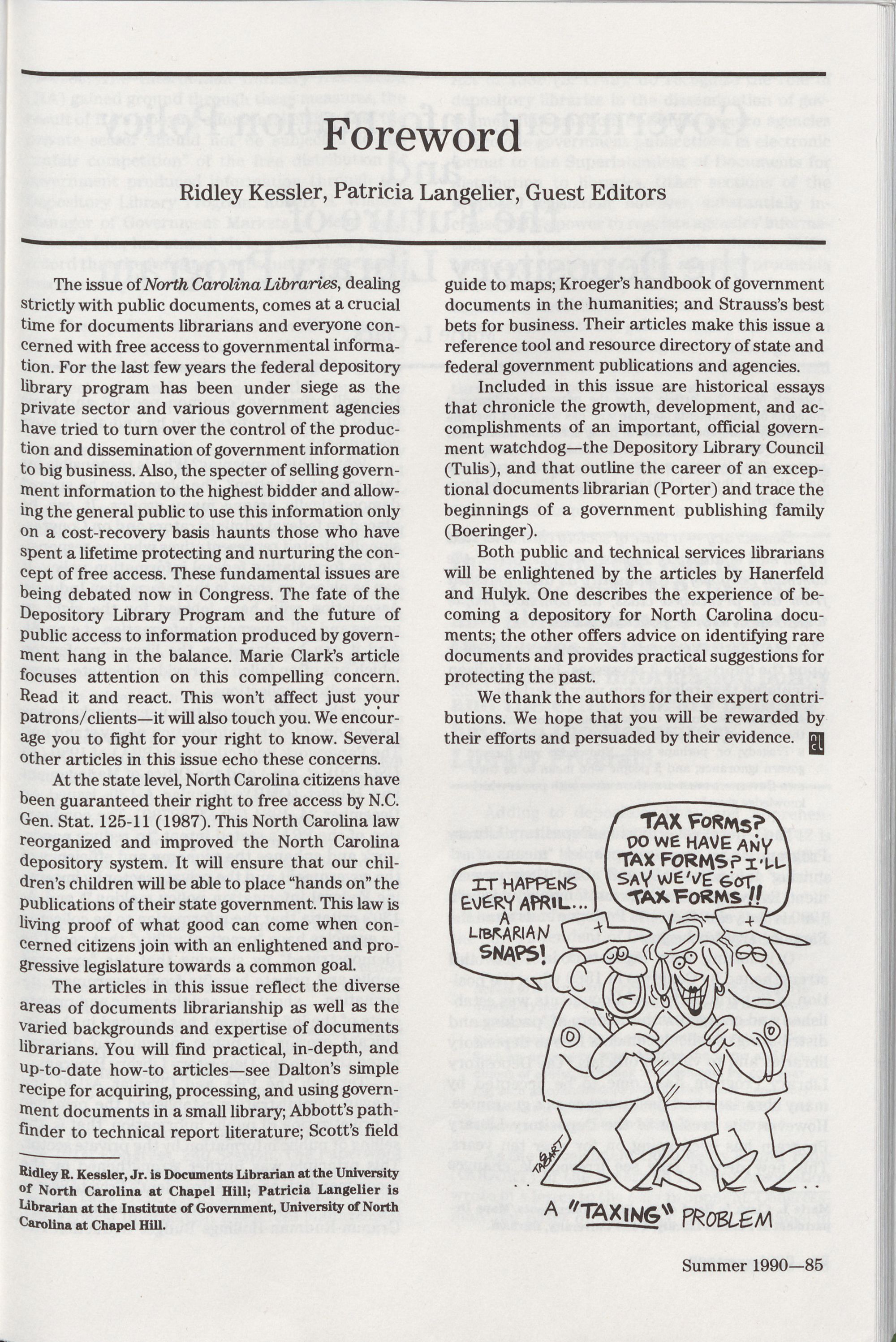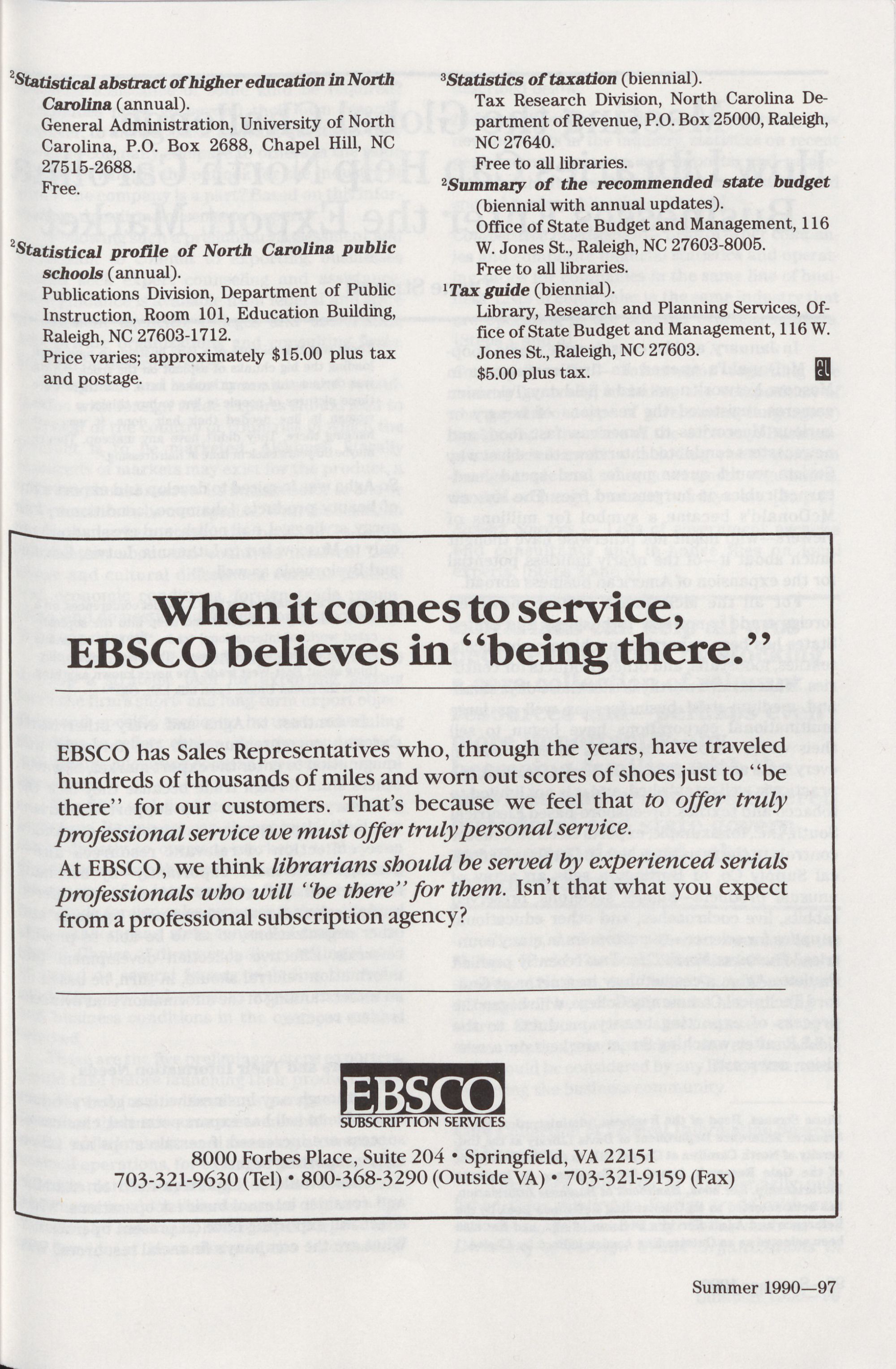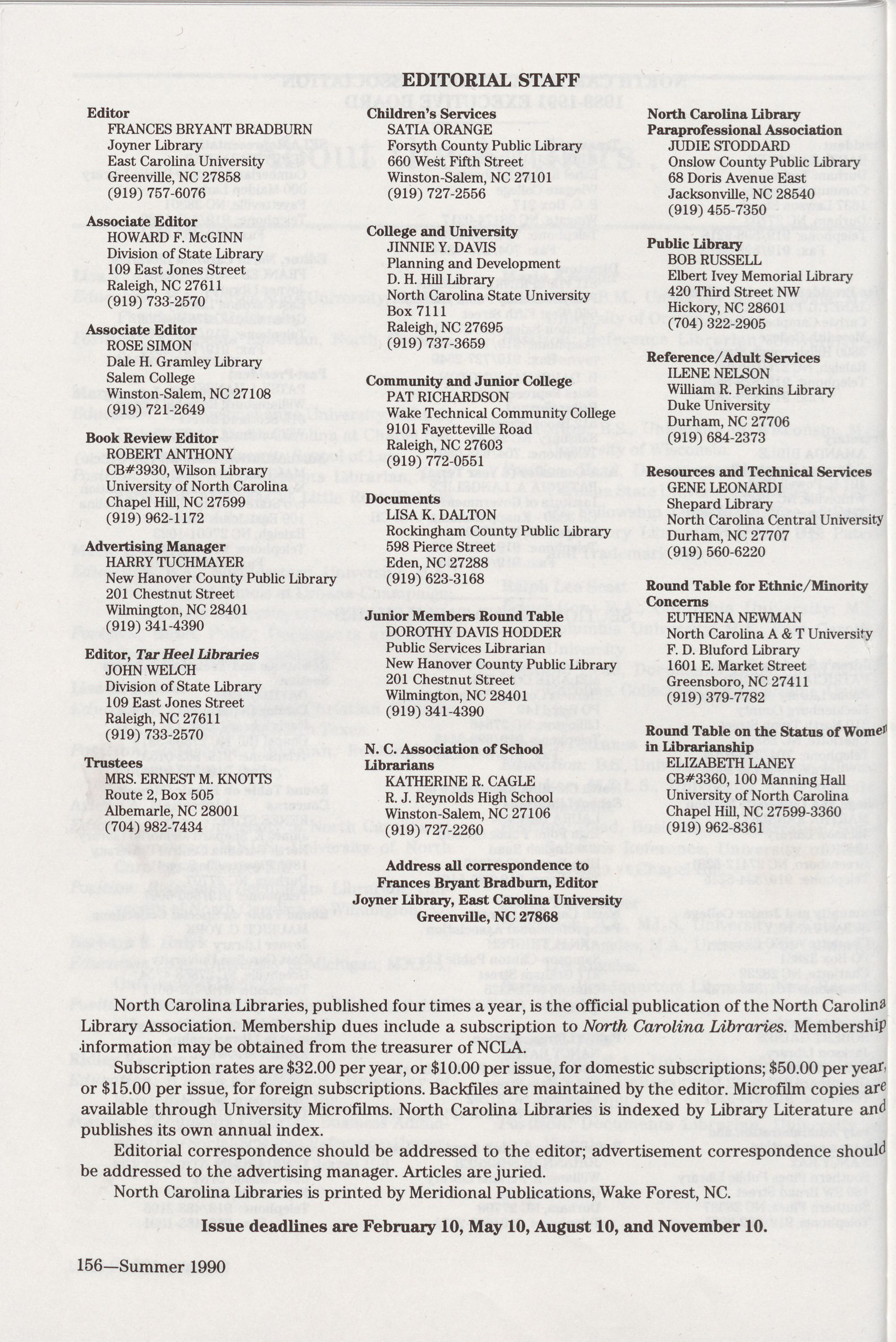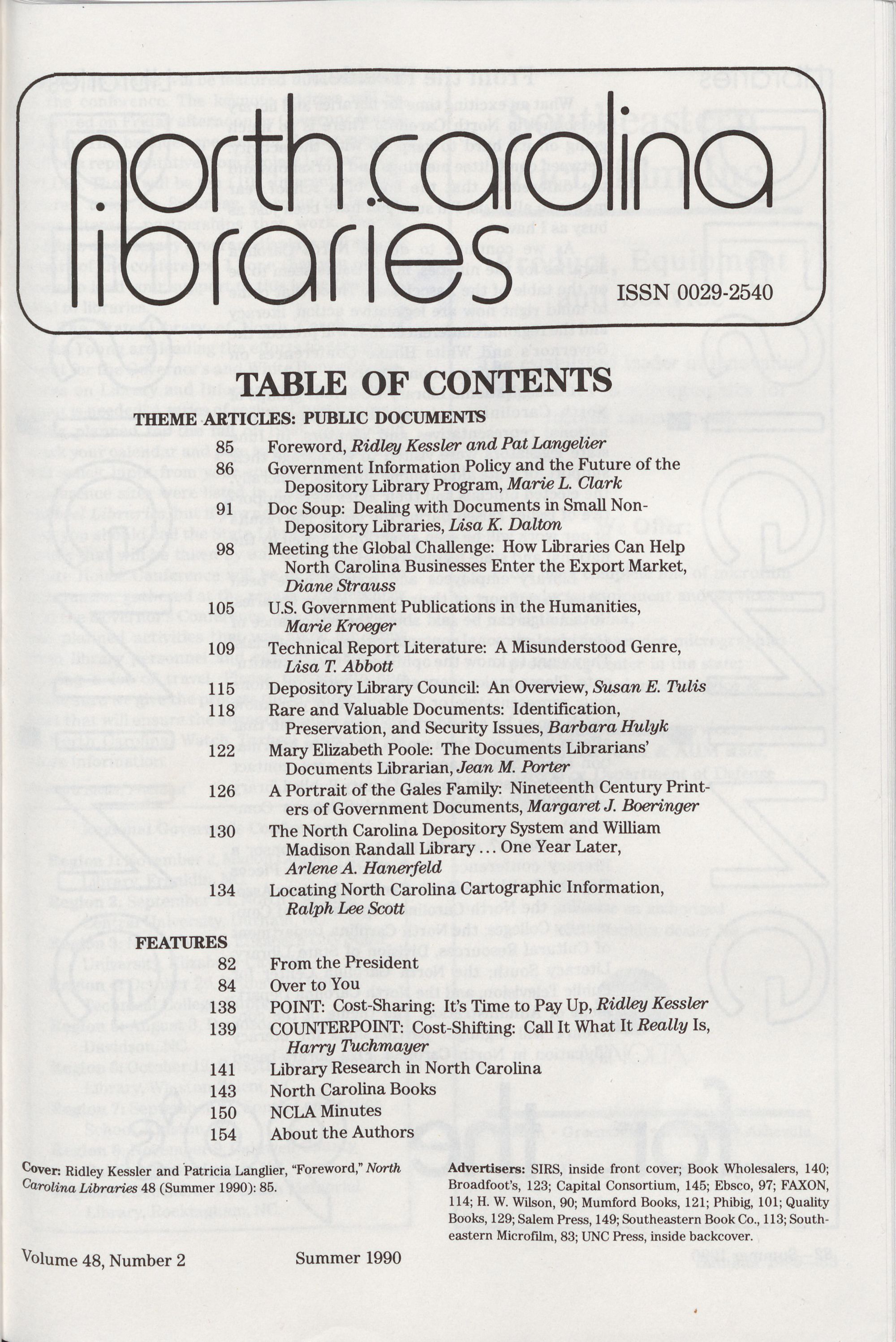 available through University Microfilms. North Carolina Libraries is indexed by Library Literature and