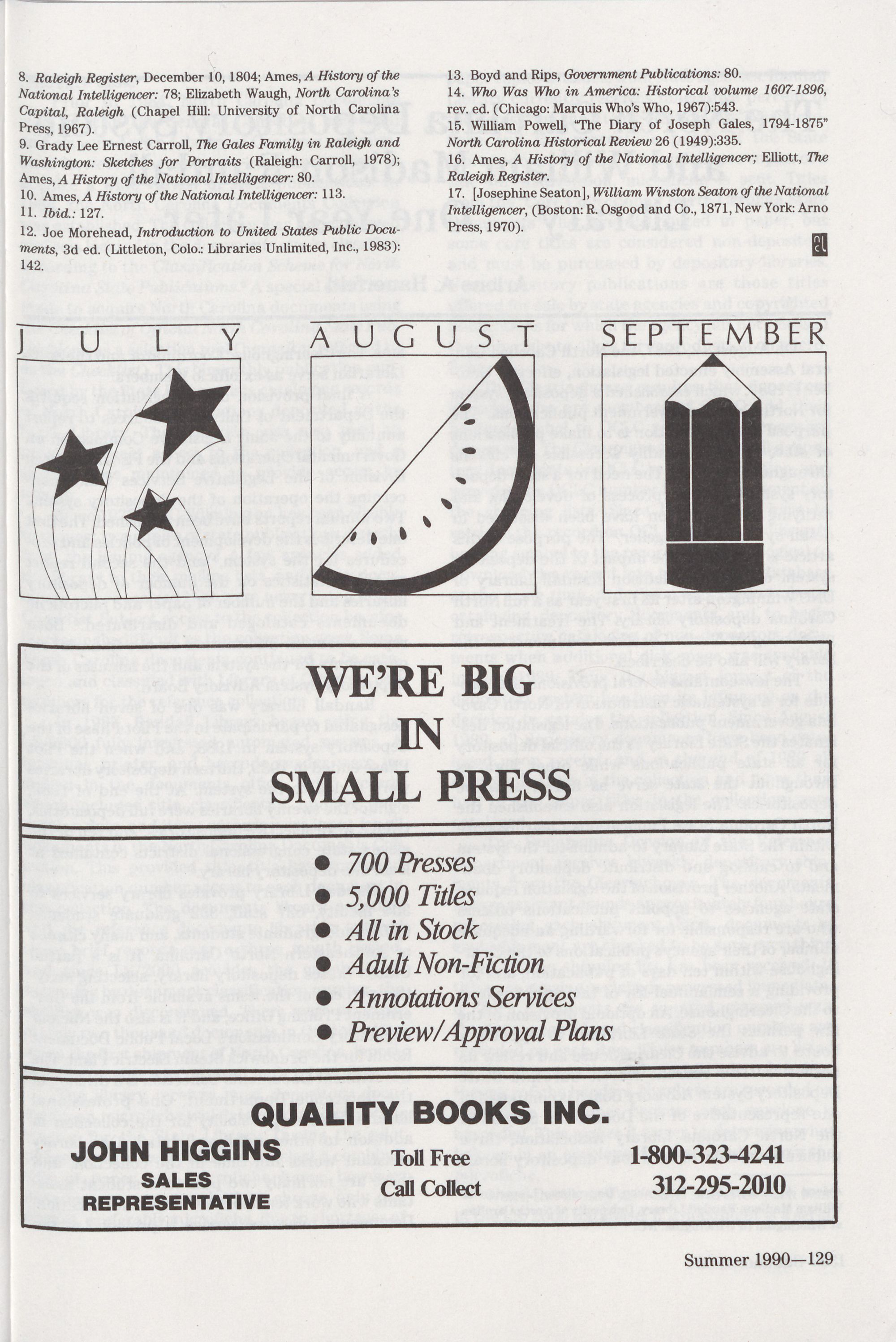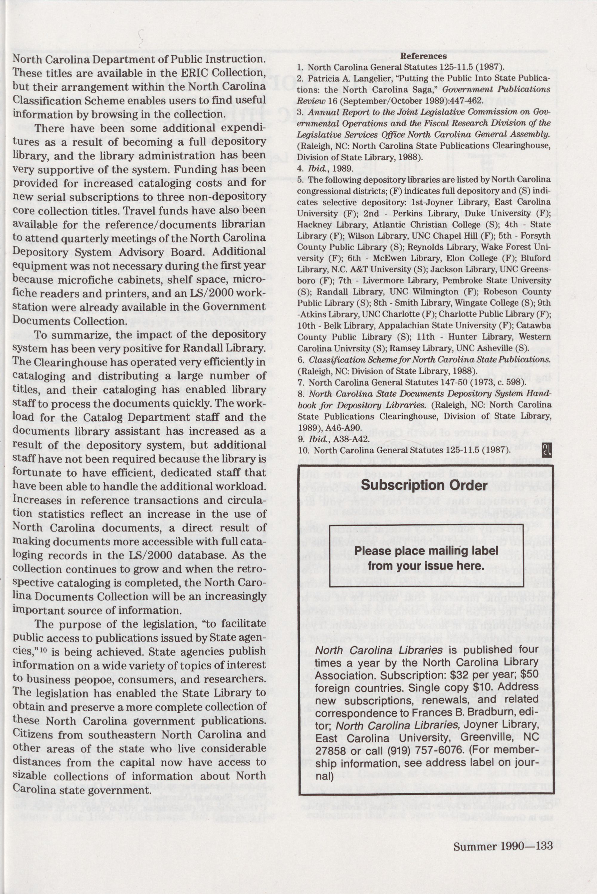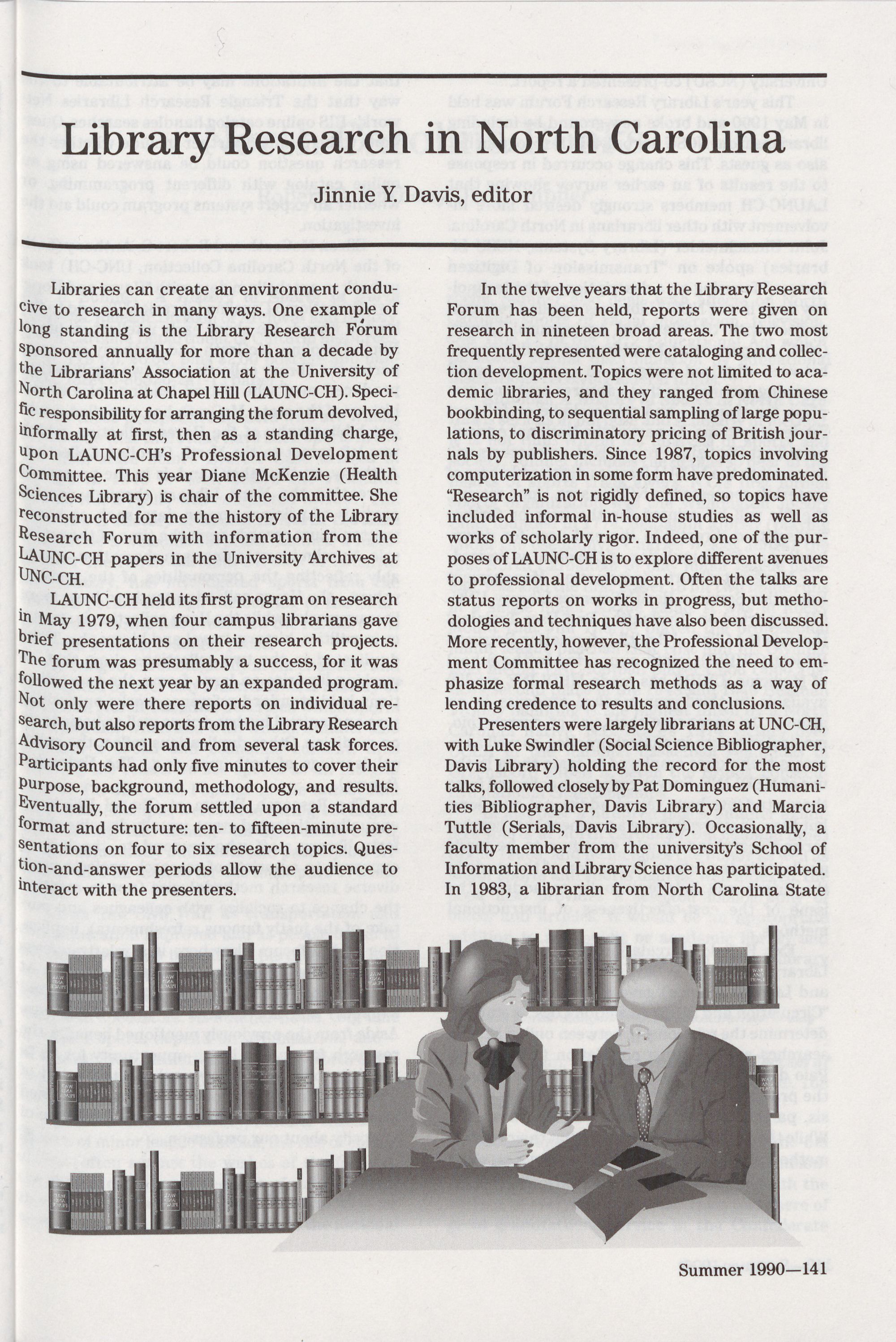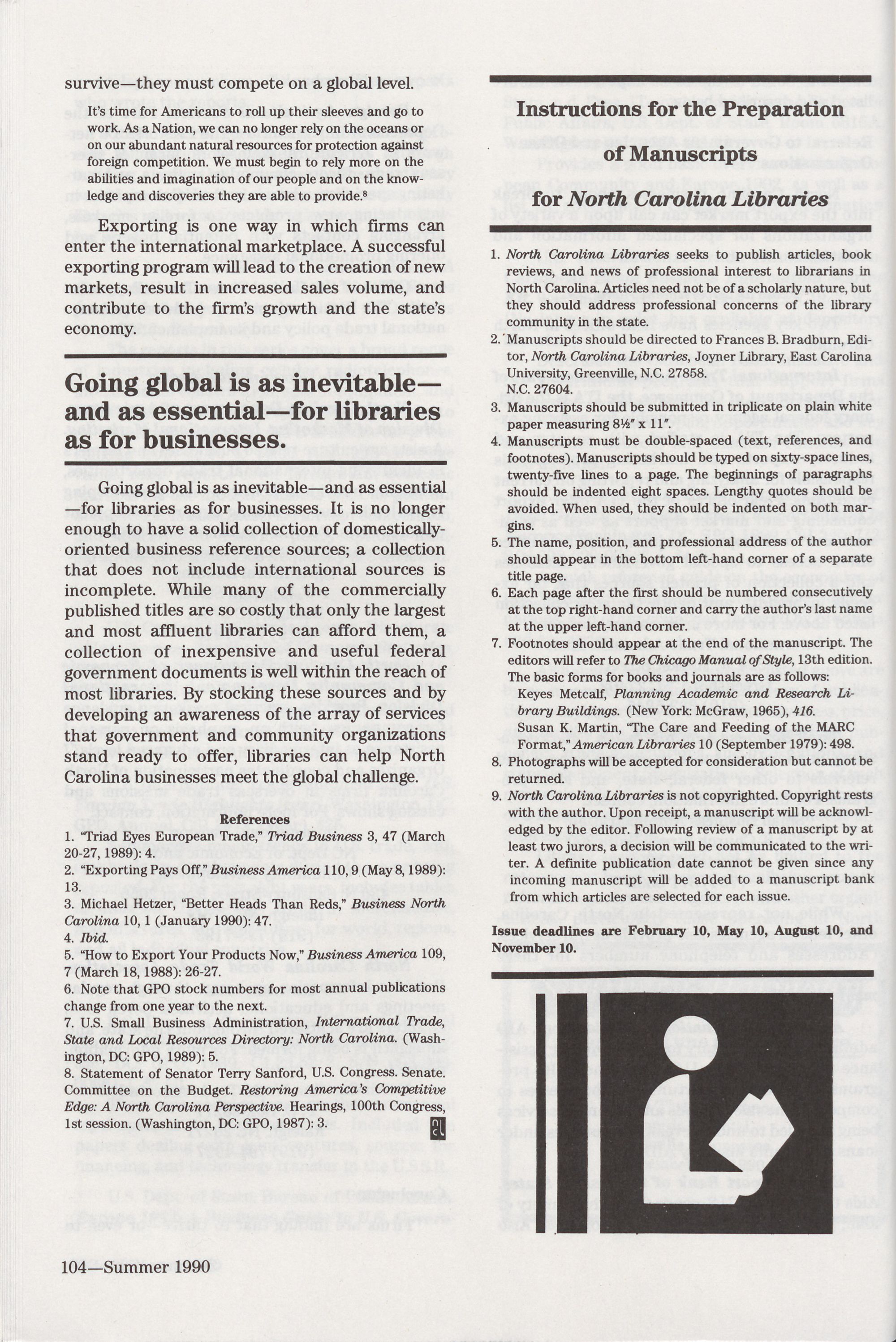 available through University Microfilms. North Carolina Libraries is indexed by Library Literature and