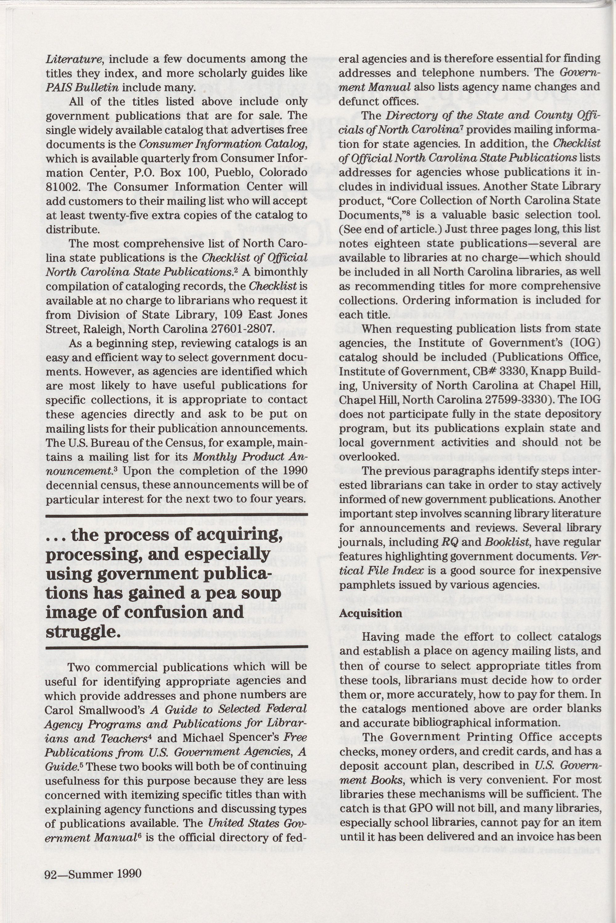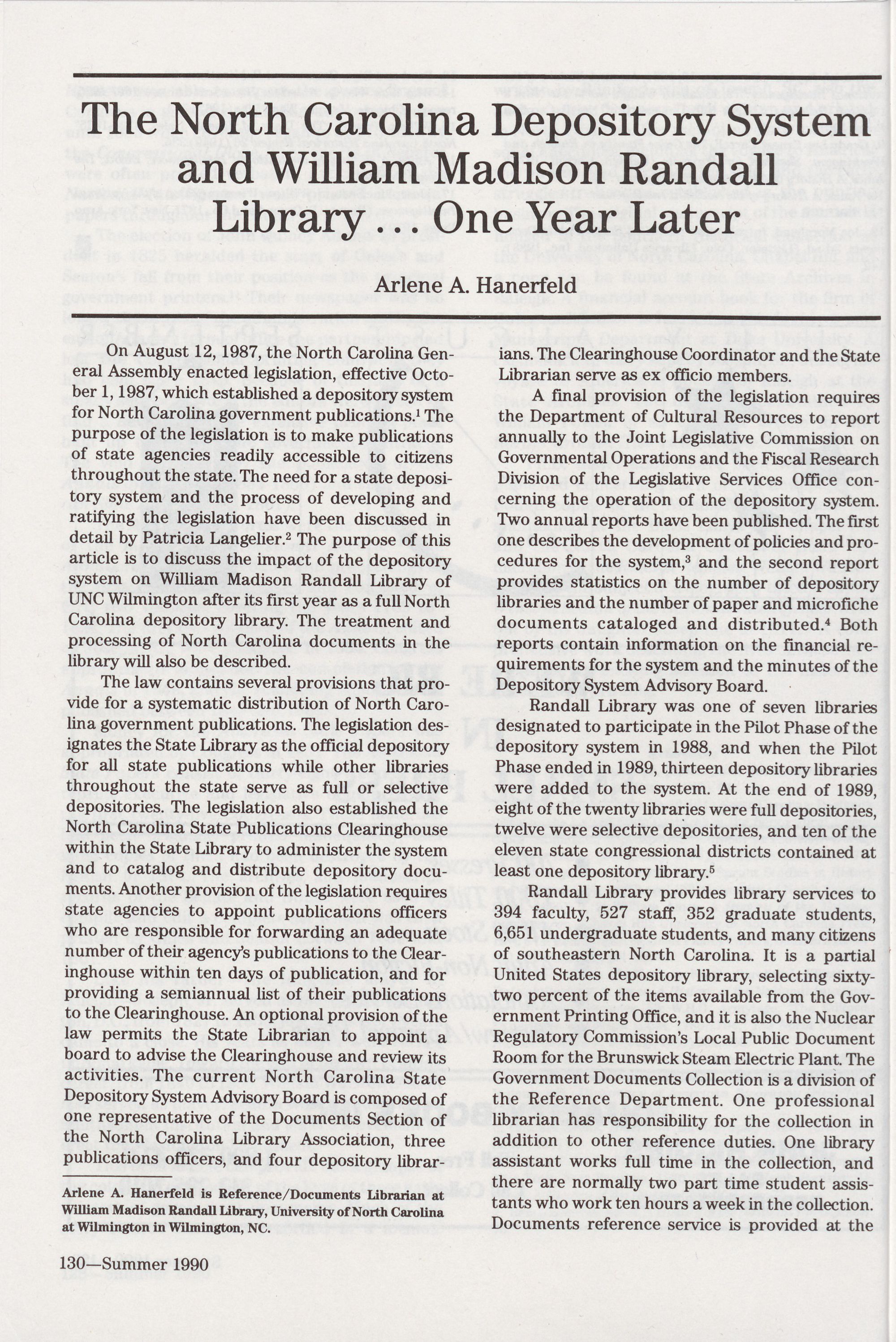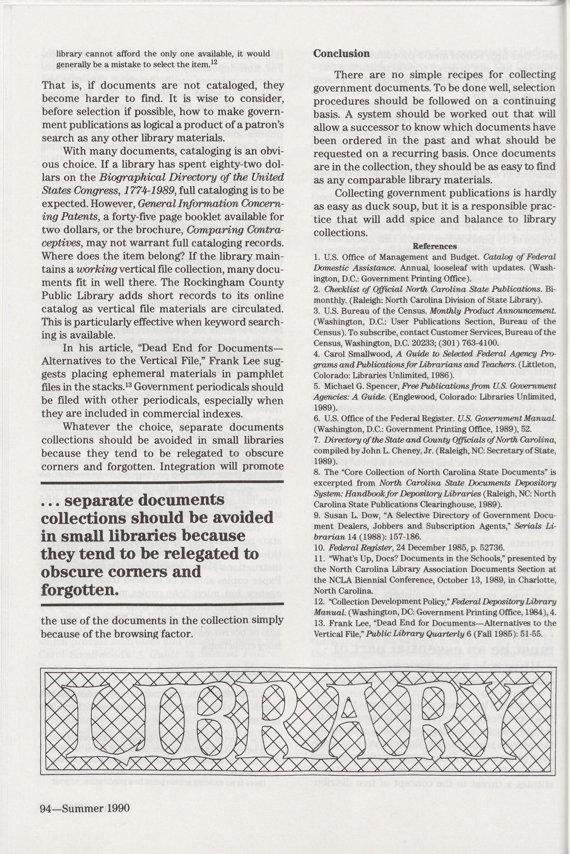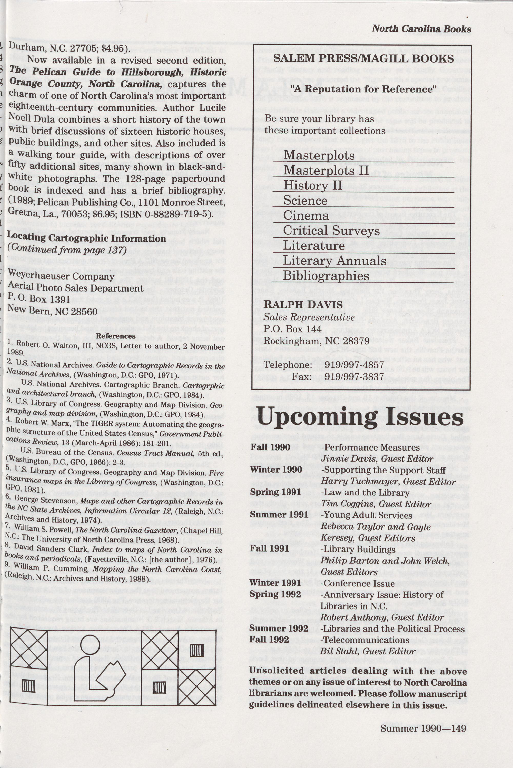 available through University Microfilms. North Carolina Libraries is indexed by Library Literature and