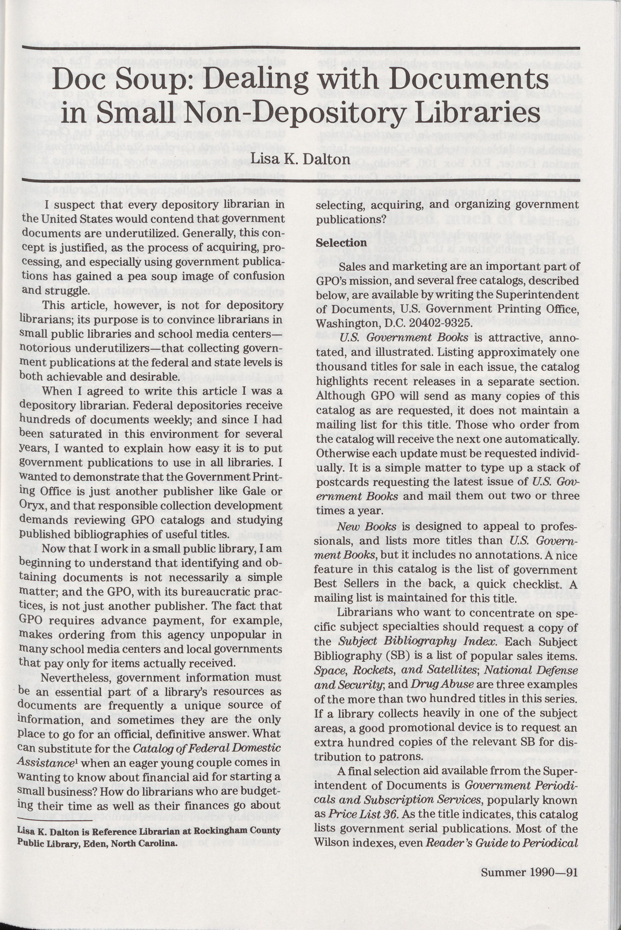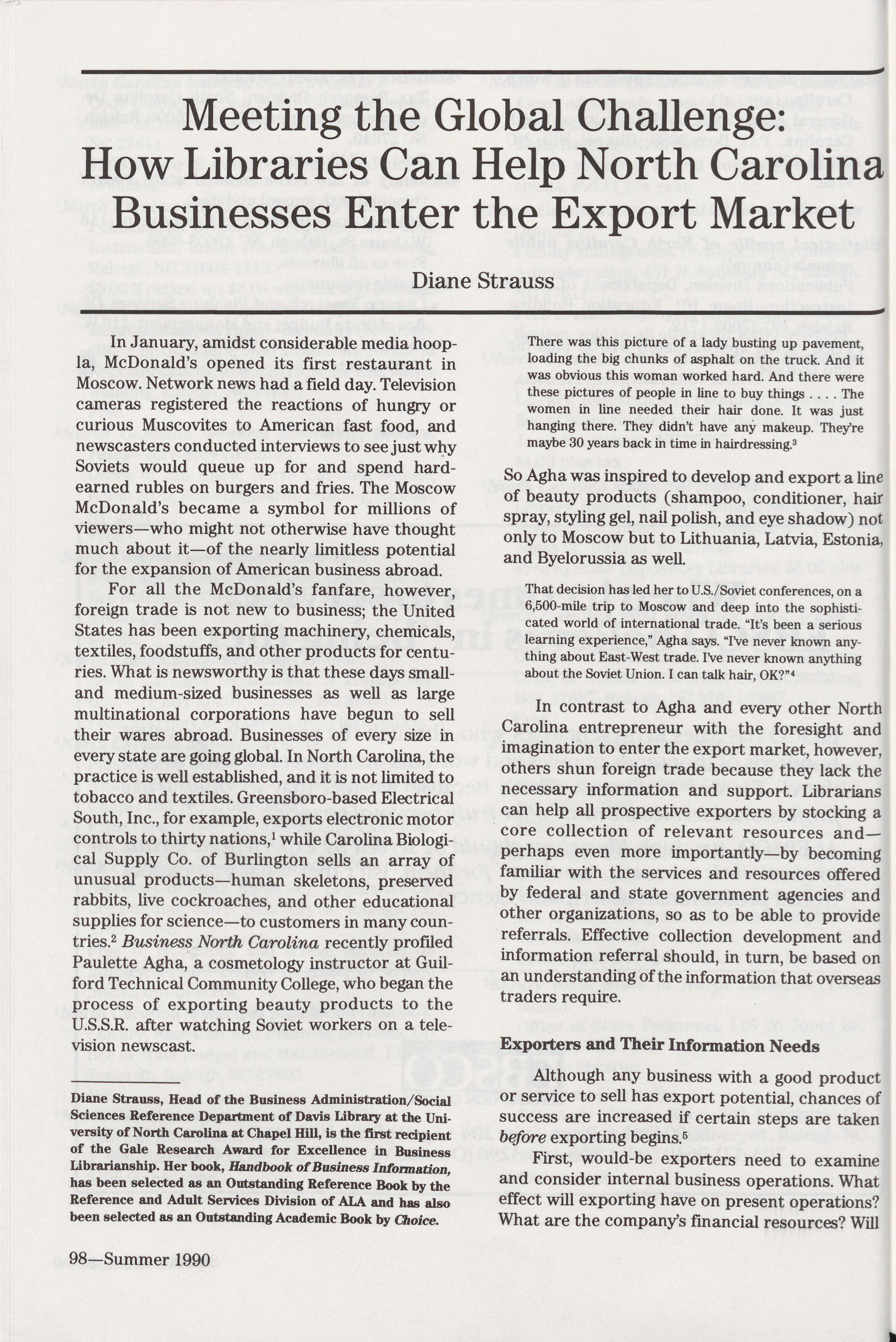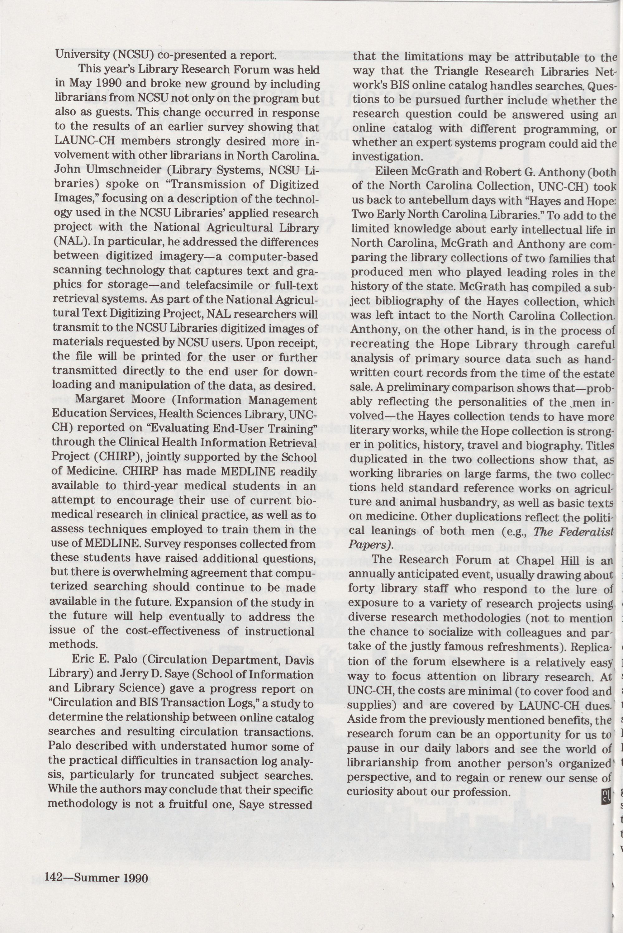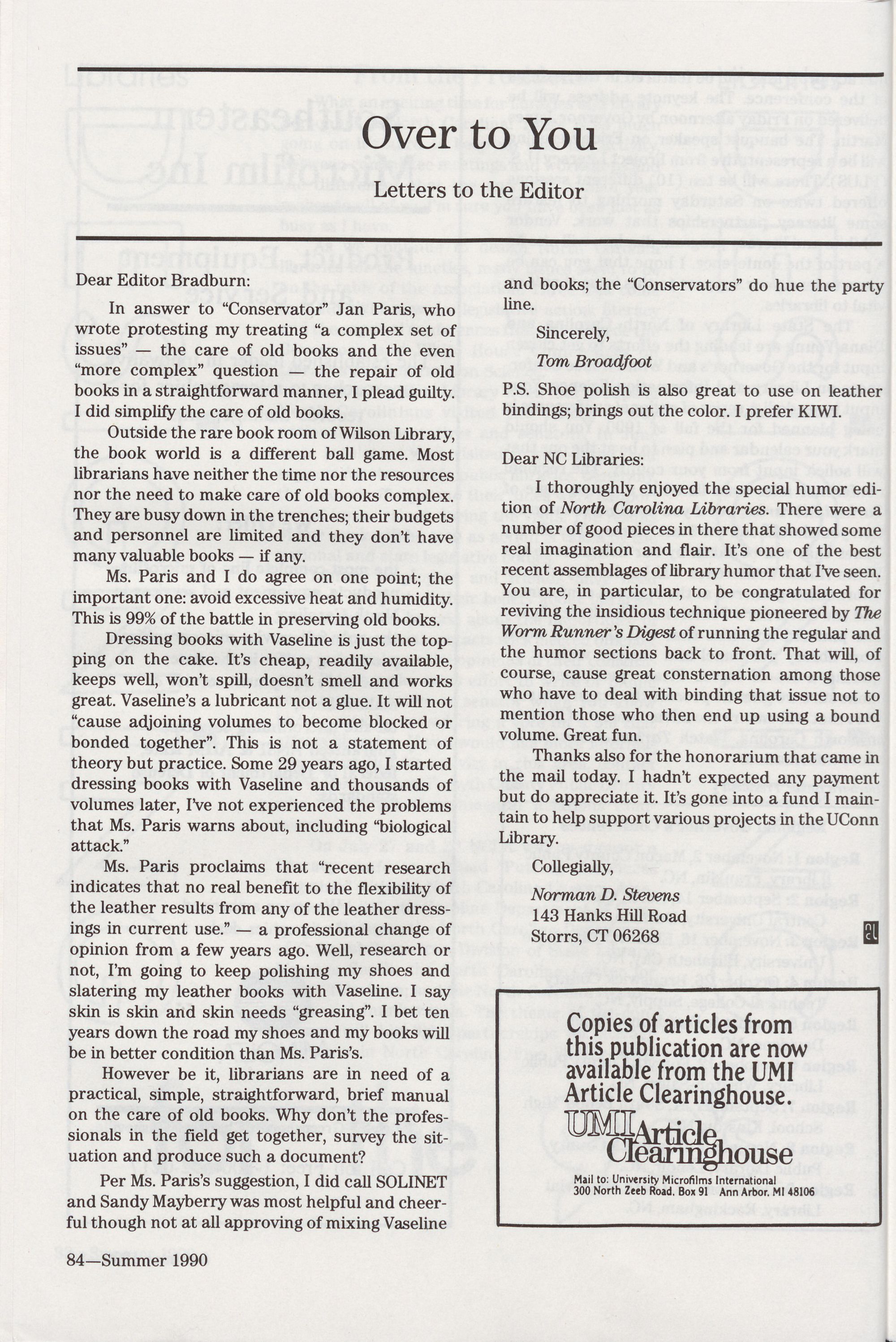 available through University Microfilms. North Carolina Libraries is indexed by Library Literature and