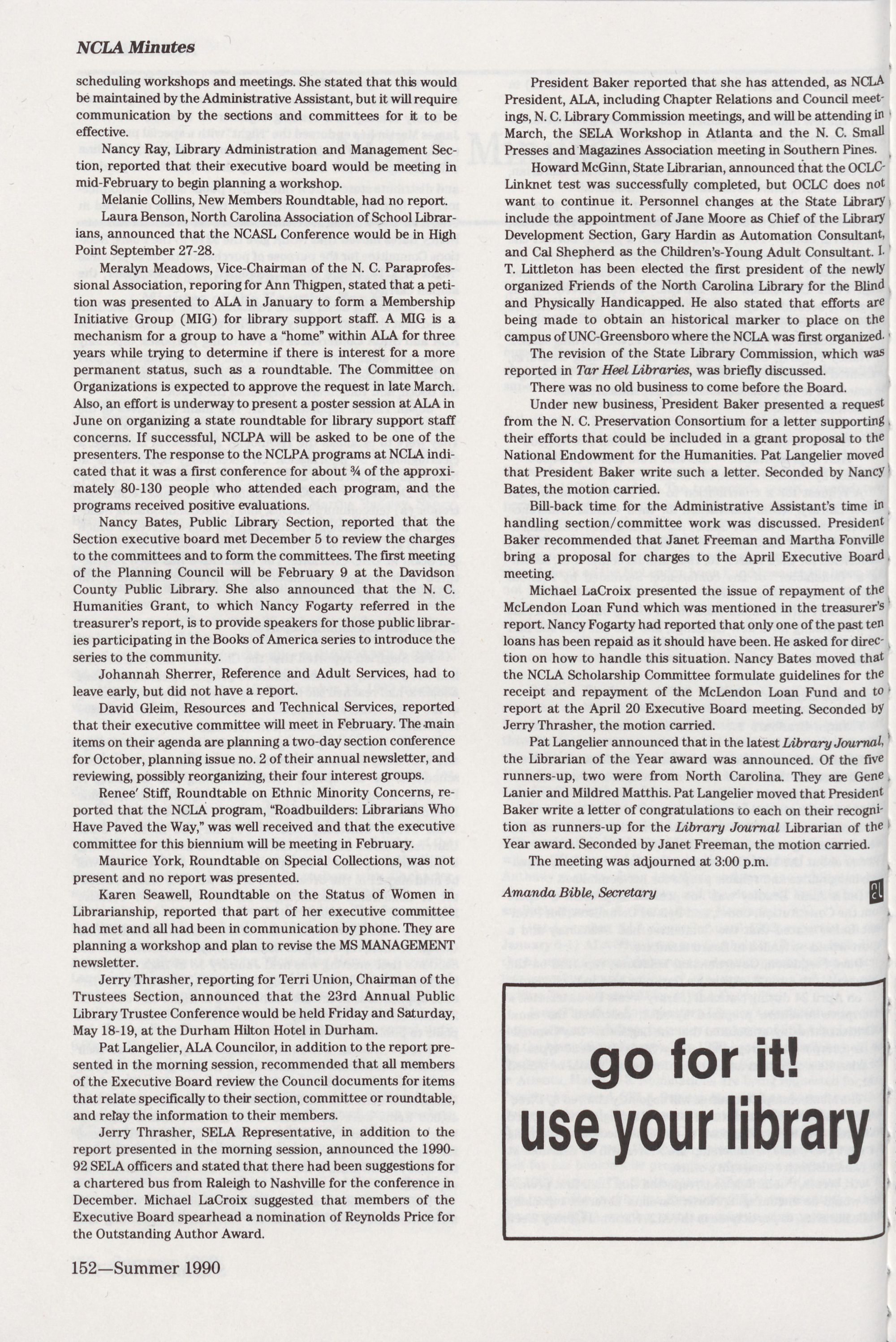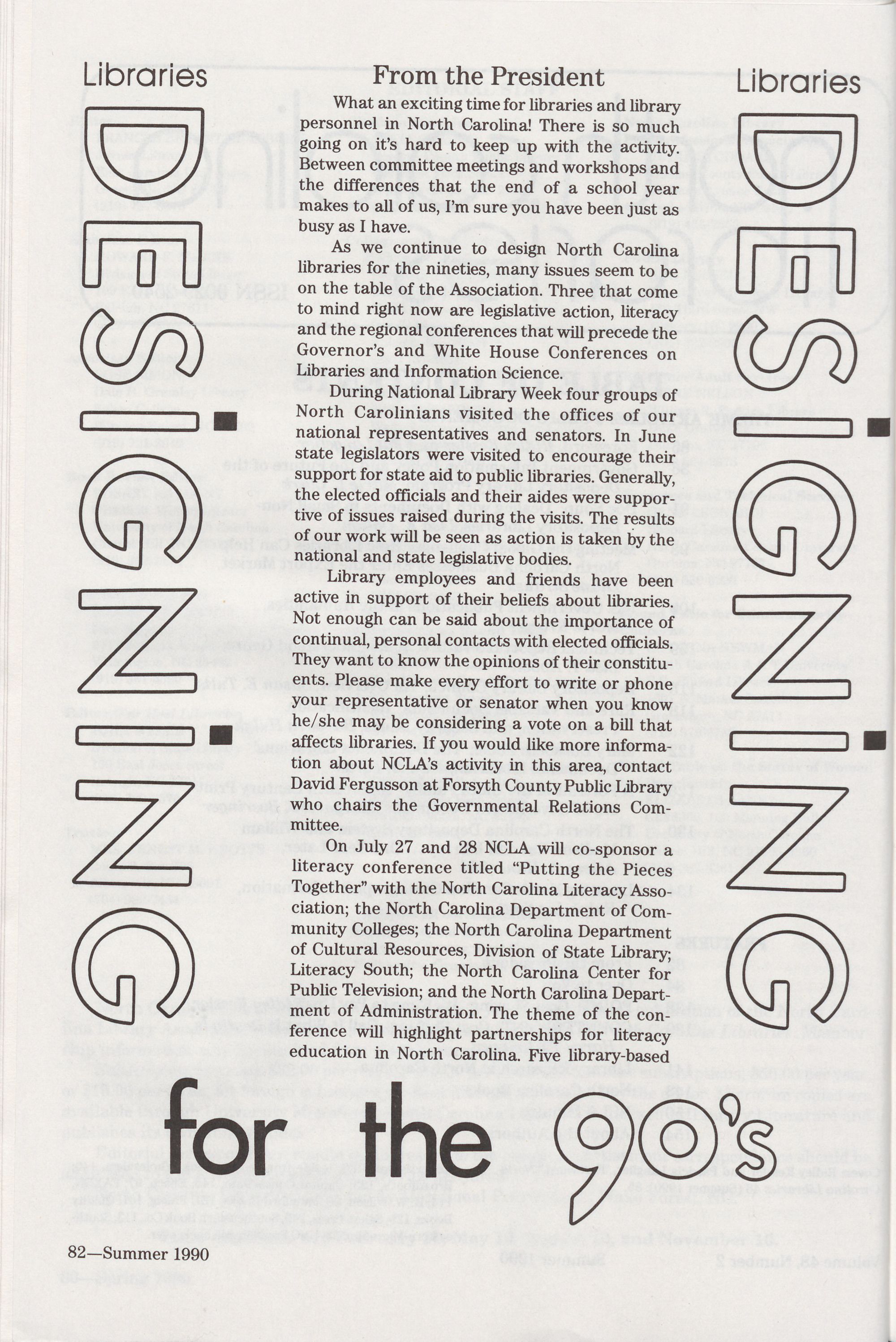 North Carolina Libraries, published four times a year, is the official publication of the North Carolin@