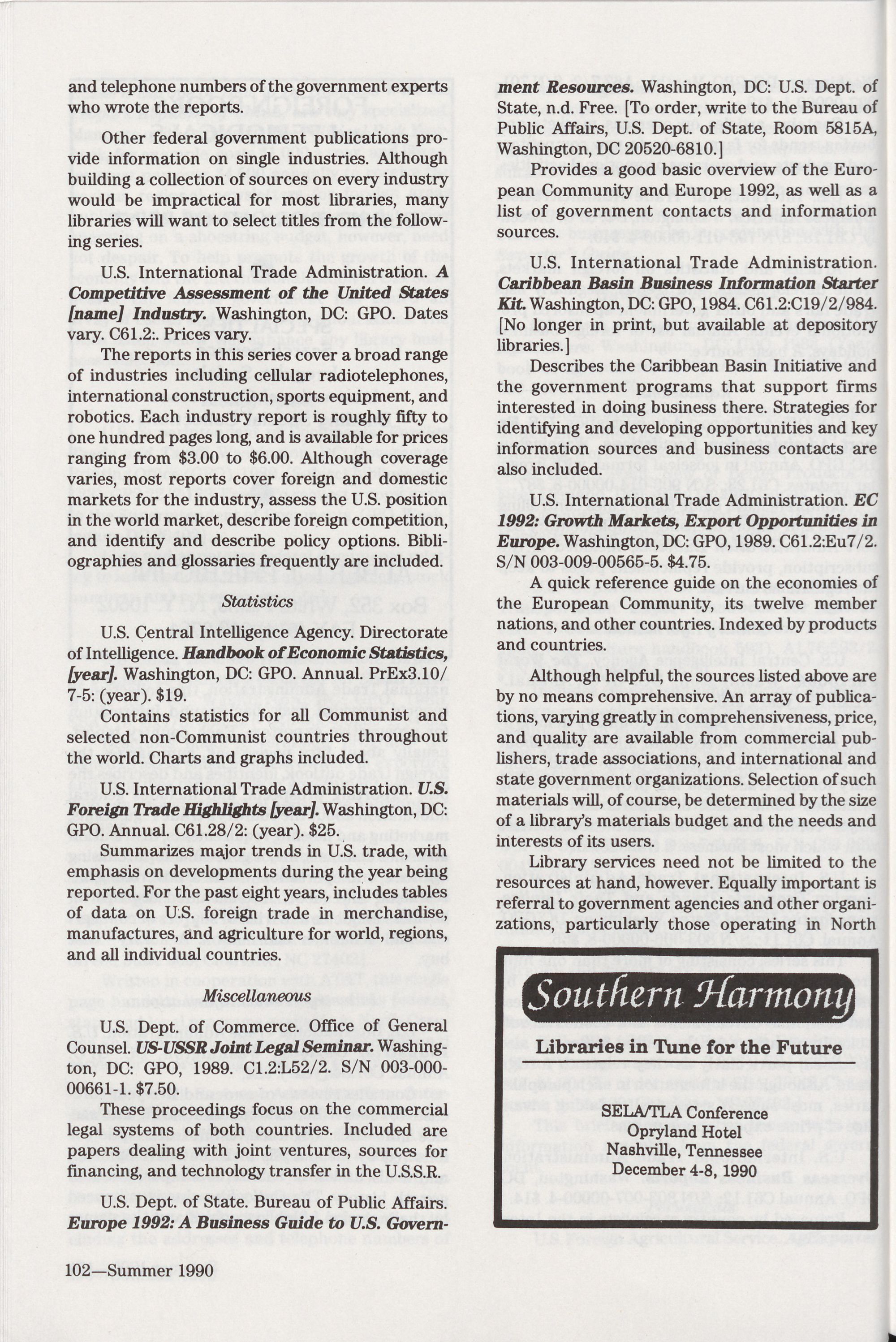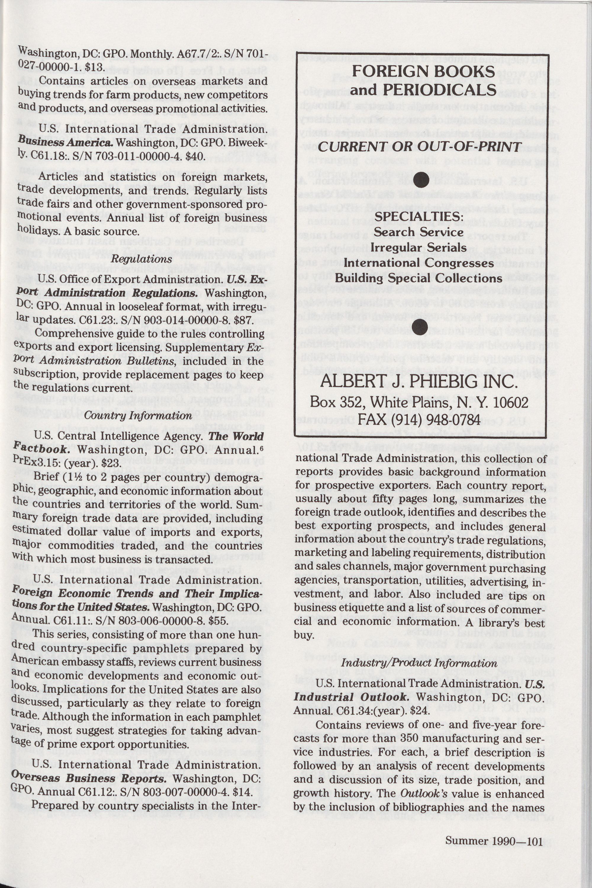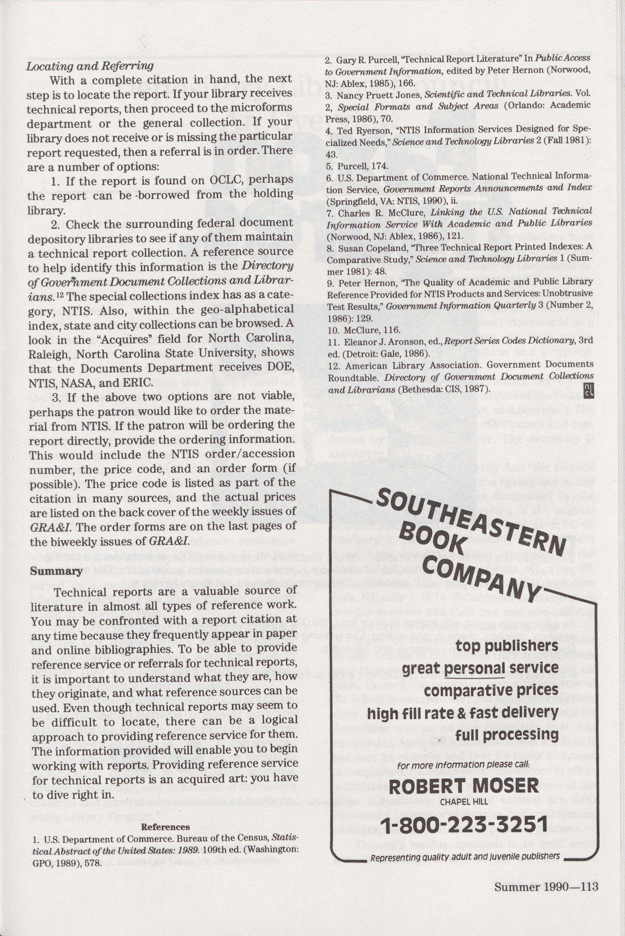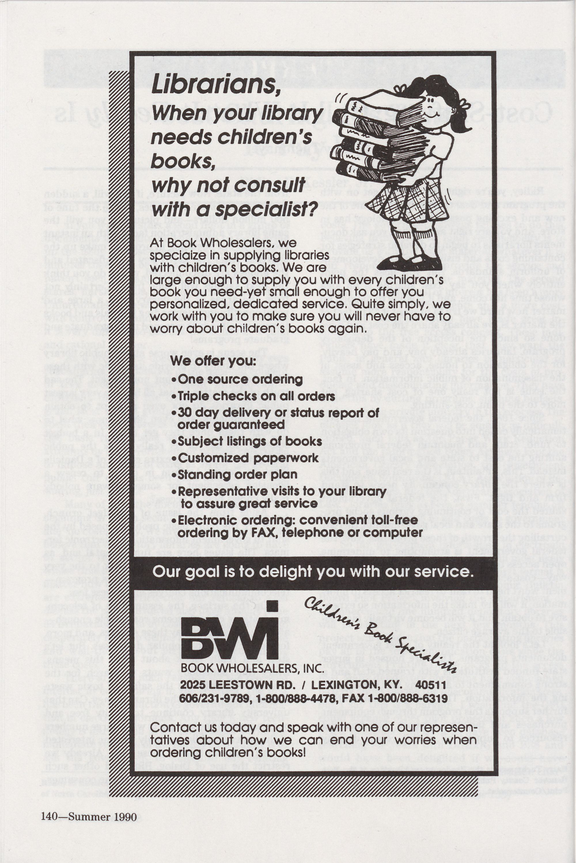 Cover; Ridley Kessler and Patricia Langlier, oForeword,� North Advertisers: SIRS, inside front cover; Book Wholesalers, 140;