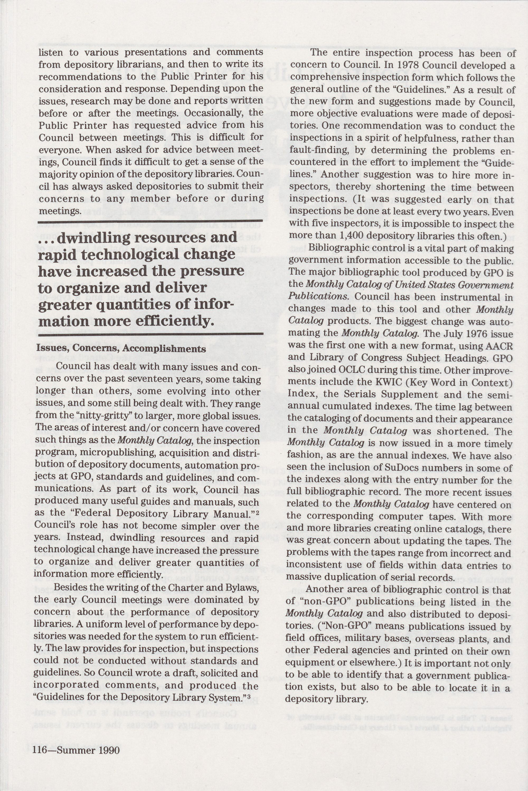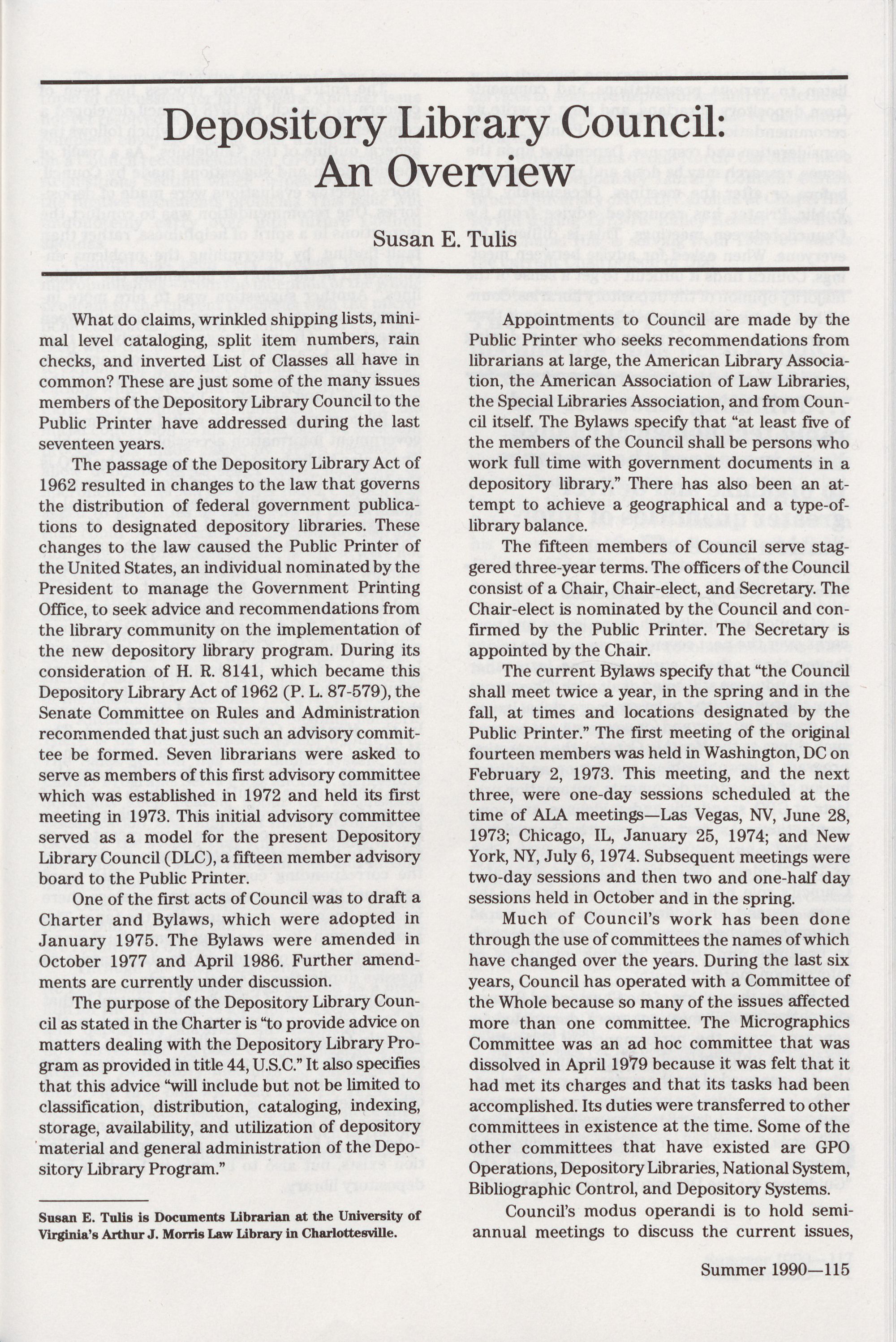 115 Depository Library Council: An Overview, Susan E. Tulis