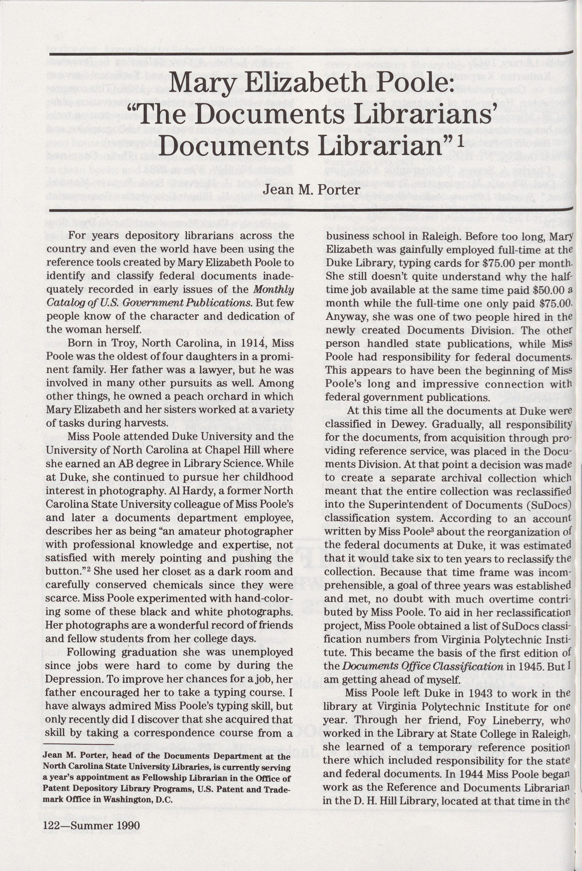 122 Mary Elizabeth Poole: The Documents LibrariansT