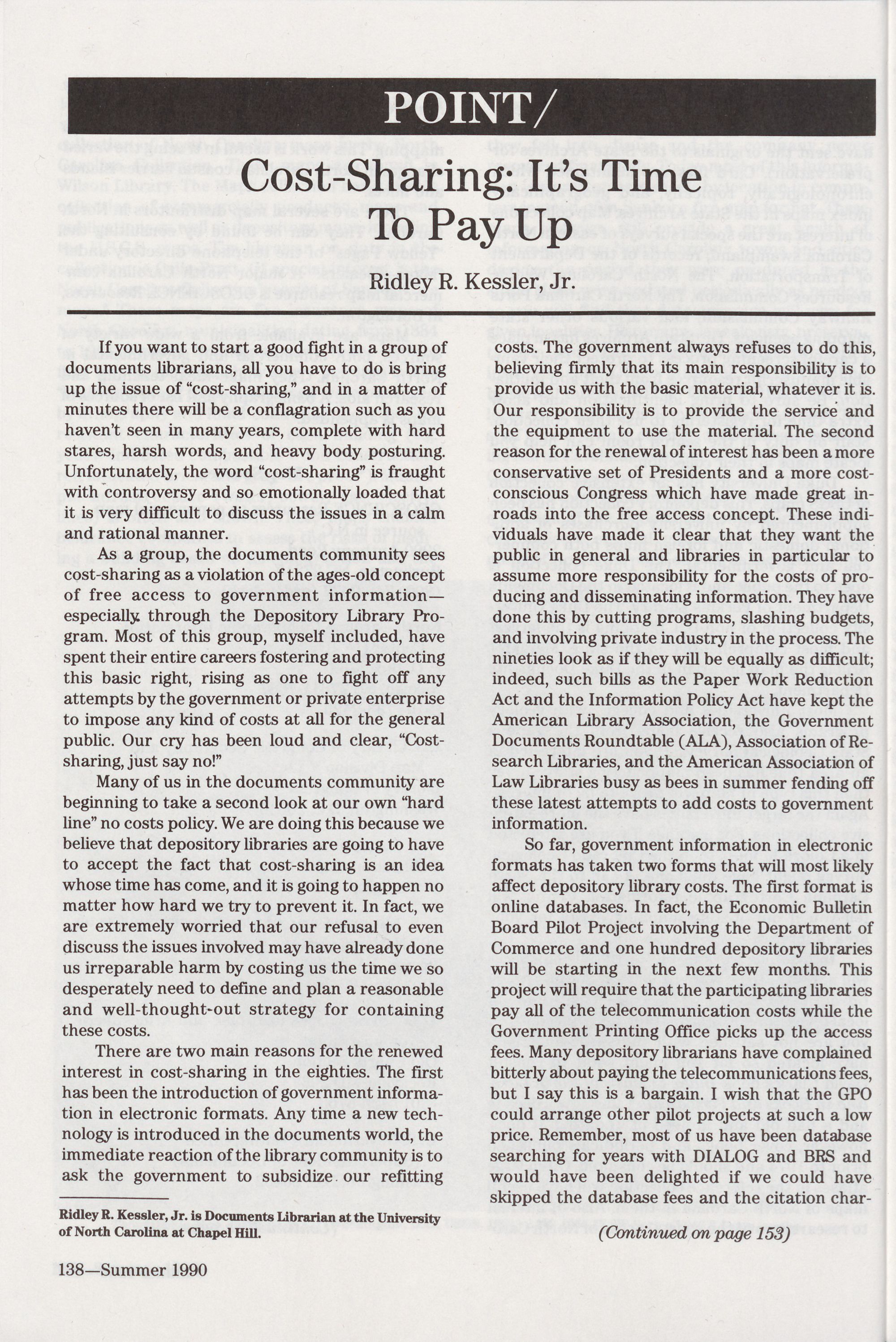 138 POINT: Cost-Sharing: ItTs Time to Pay Up, Ridley Kessler